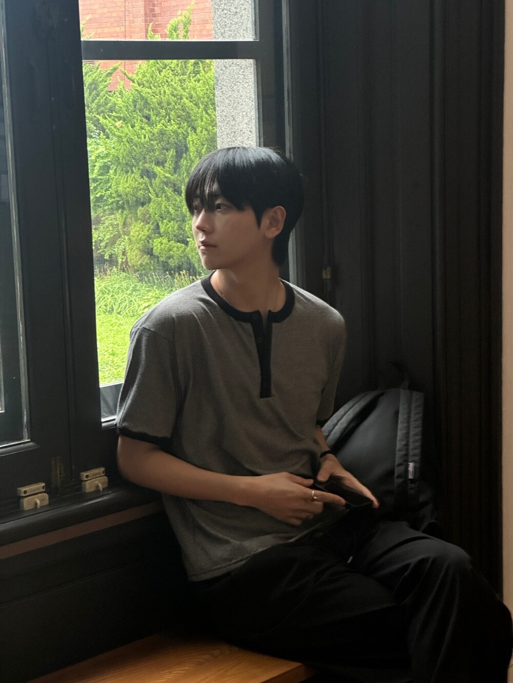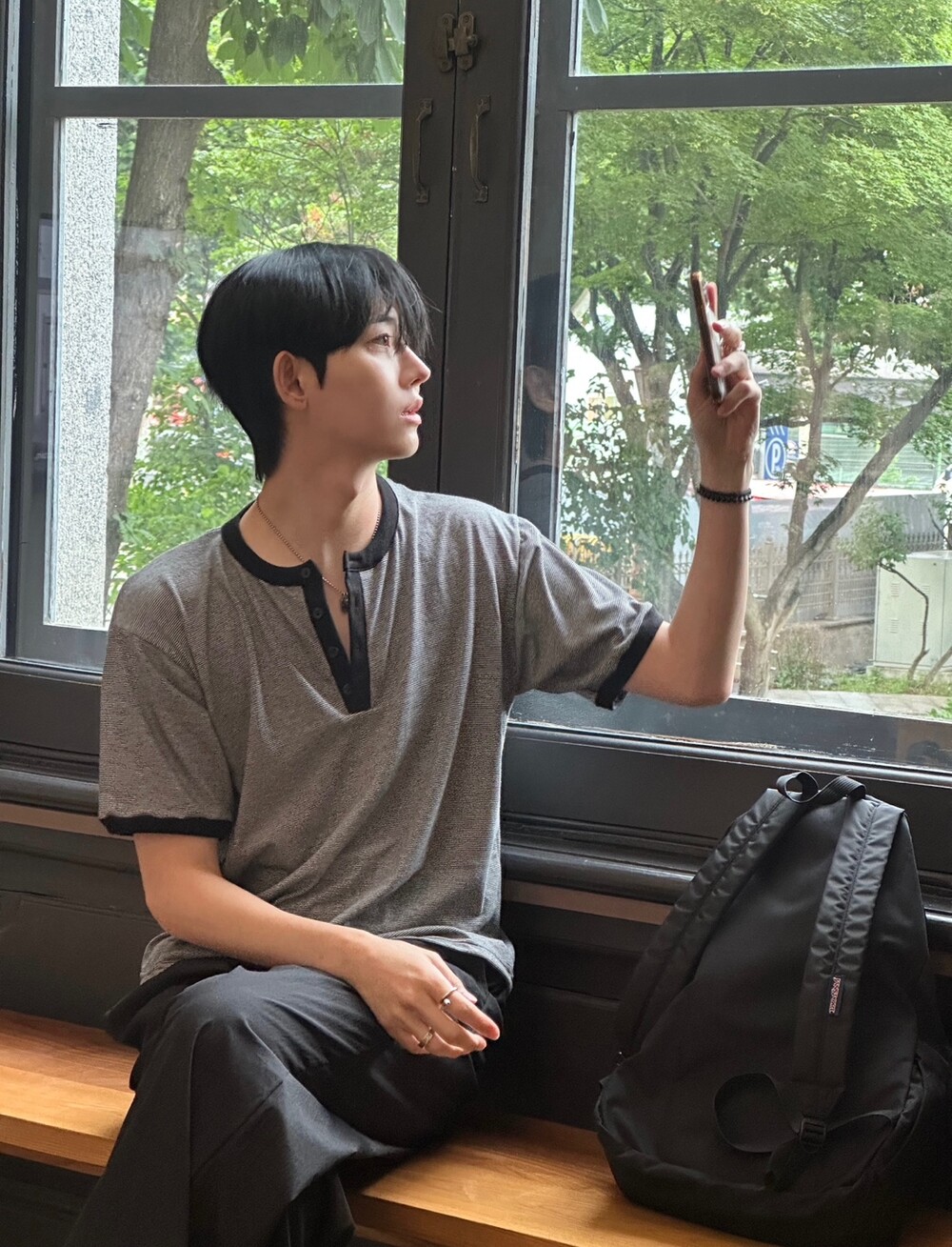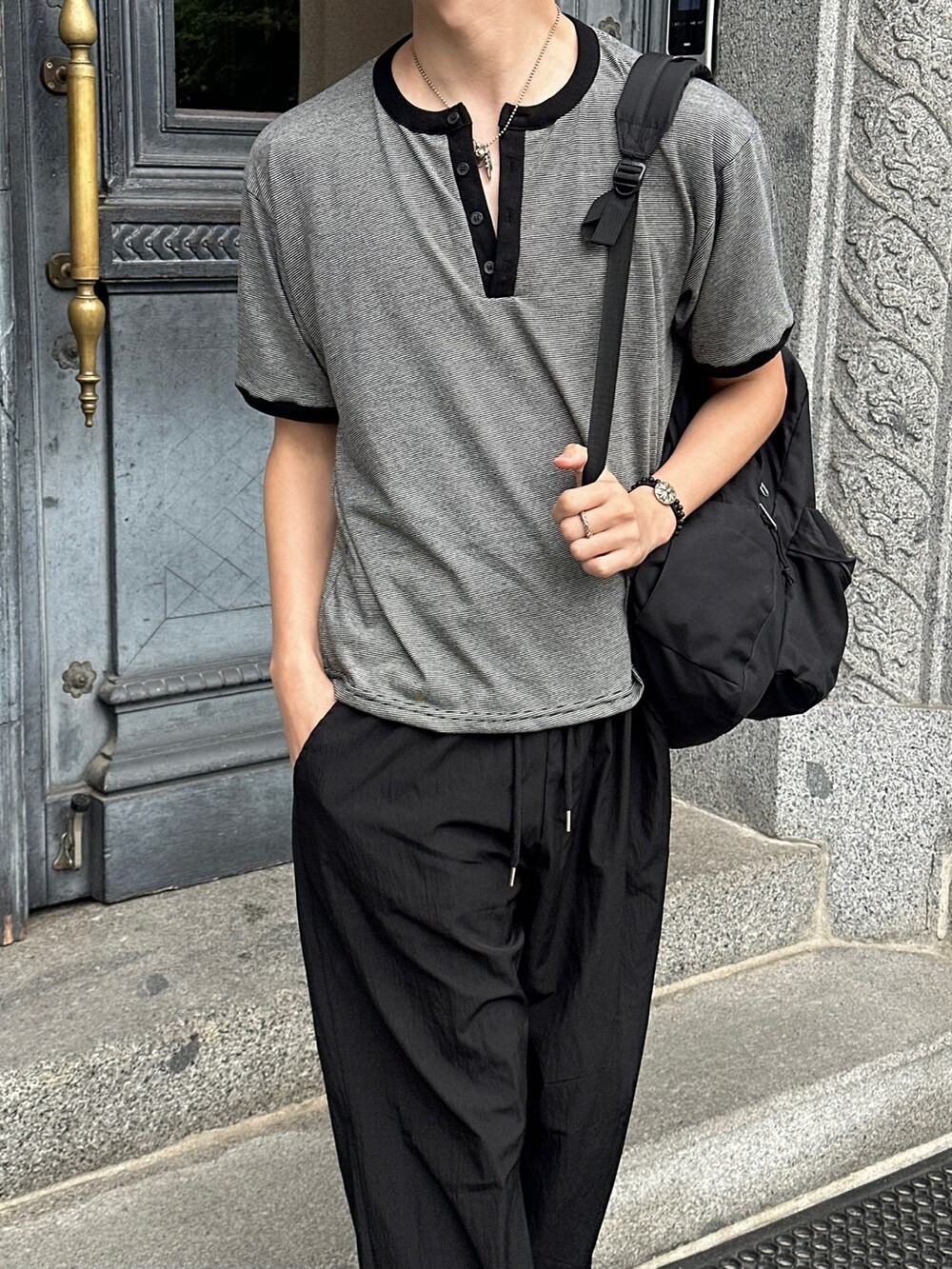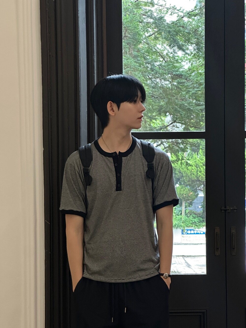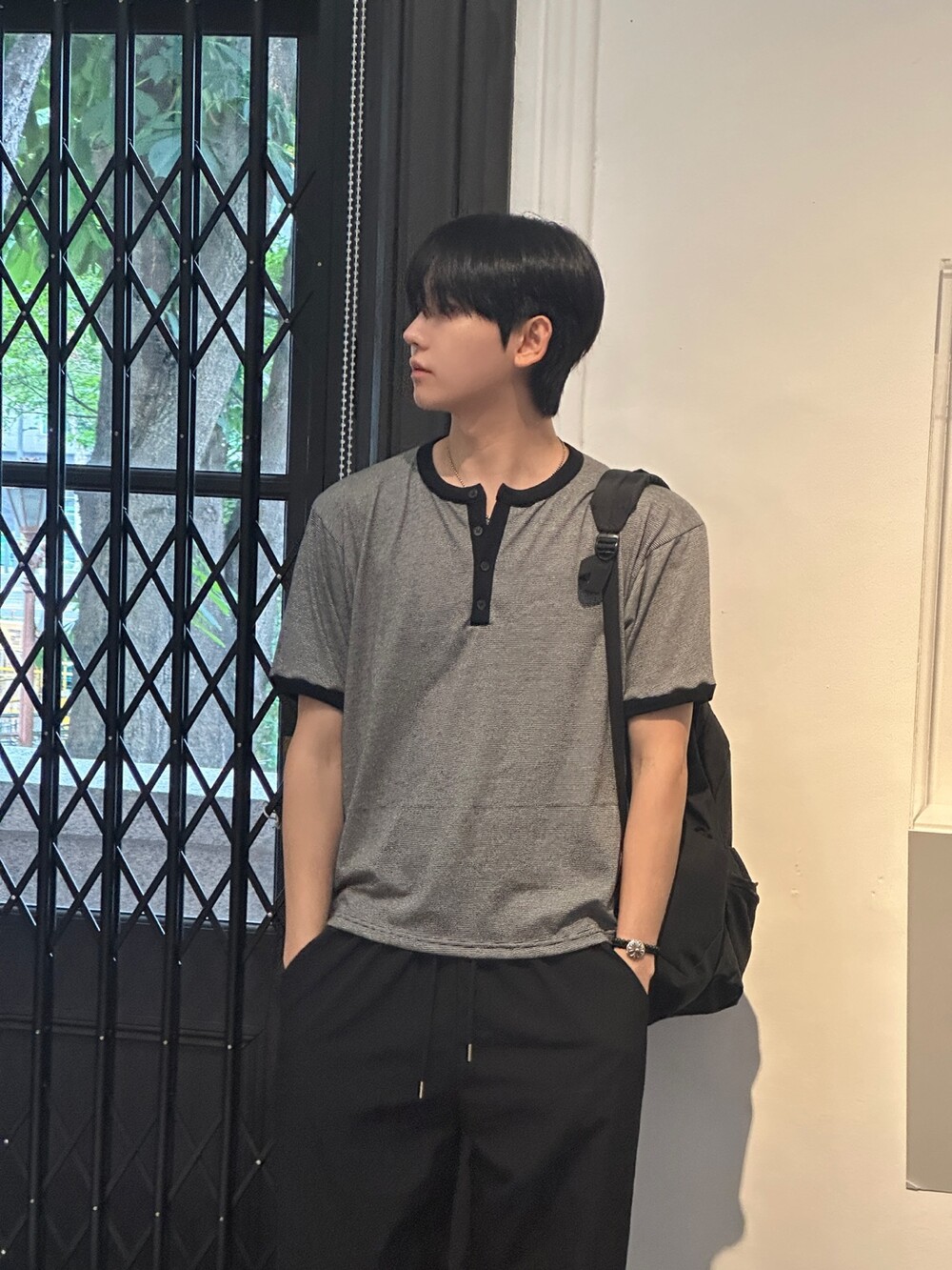 크롭 기장감으로 키에 상관없이 착용하기 좋고 헨리넥 디테일과 링거 디테일을 합쳐