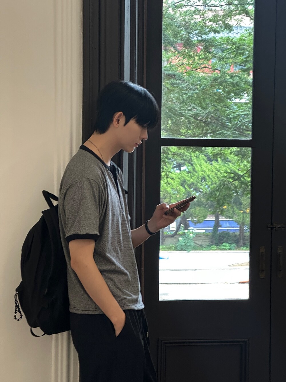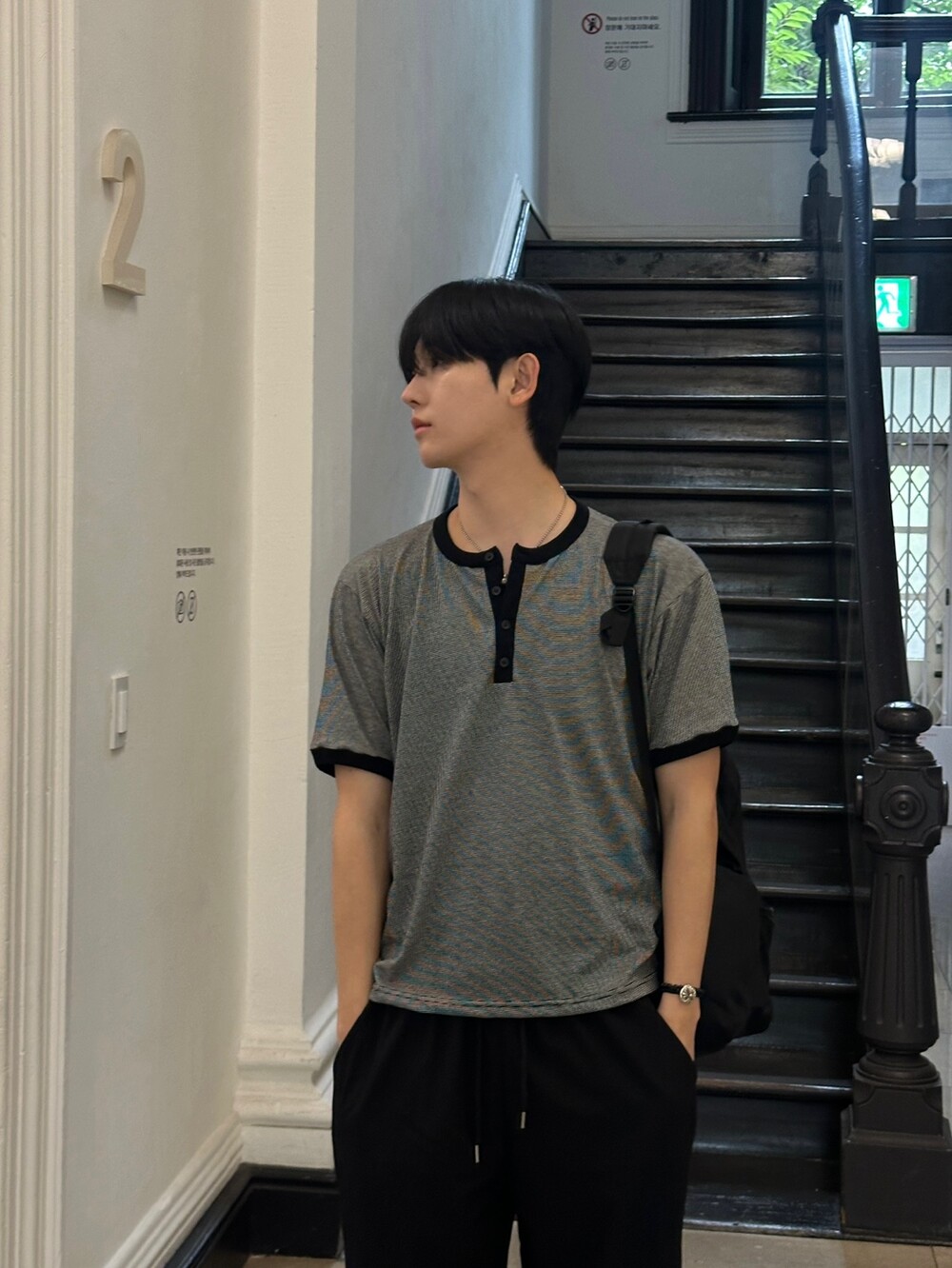 은은하고 잔잔한 스트라이프로 무드있는 반팔티입니다