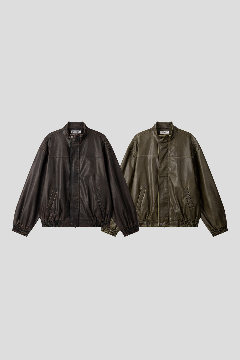 절개 워싱 레더자켓 (2color)