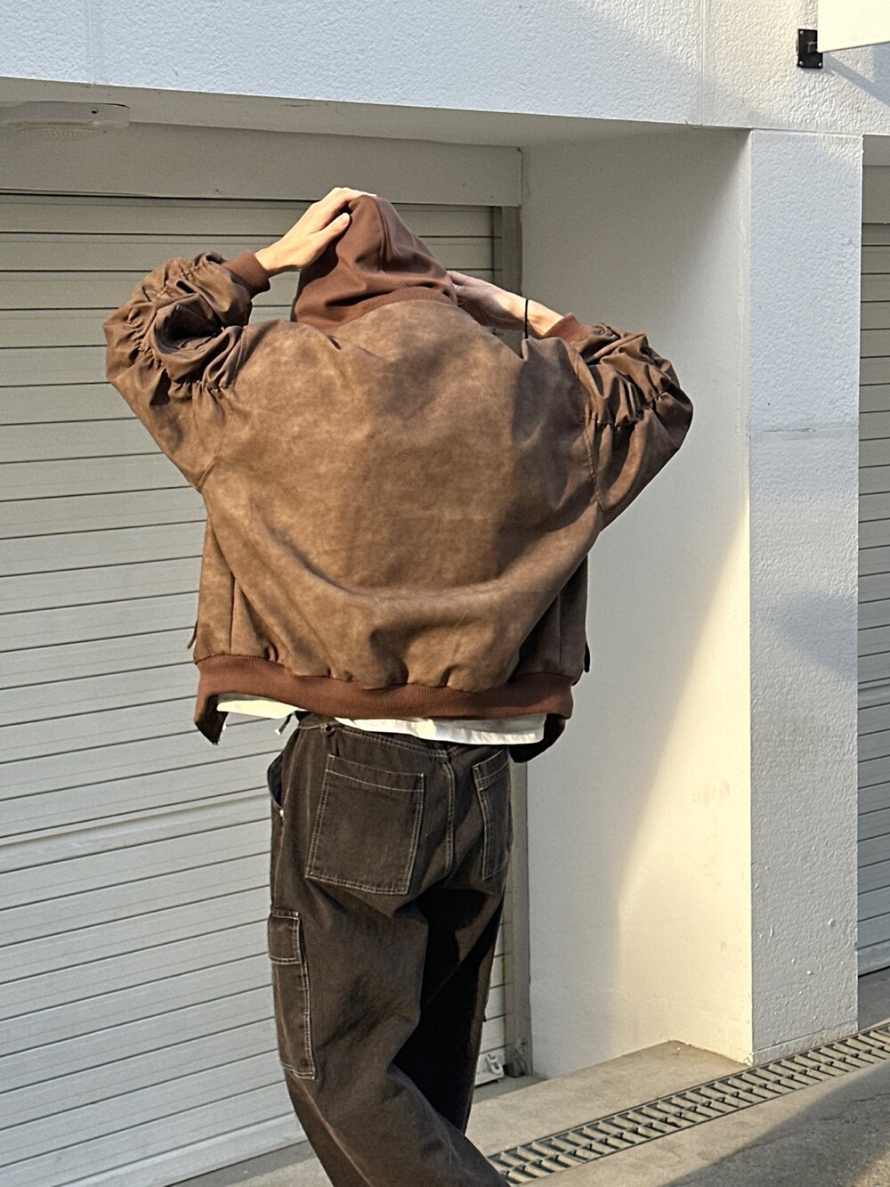 MA-1 항공점퍼 실루엣에 팔 부분 셔링 디테일까지 넣었고