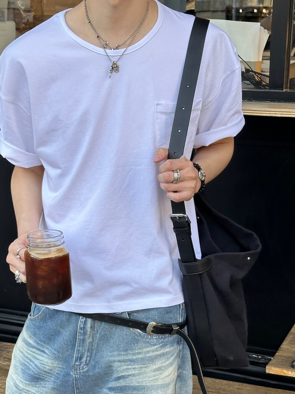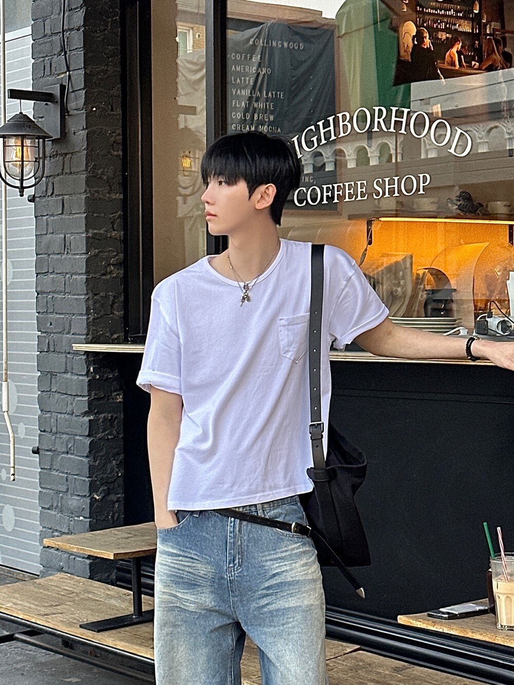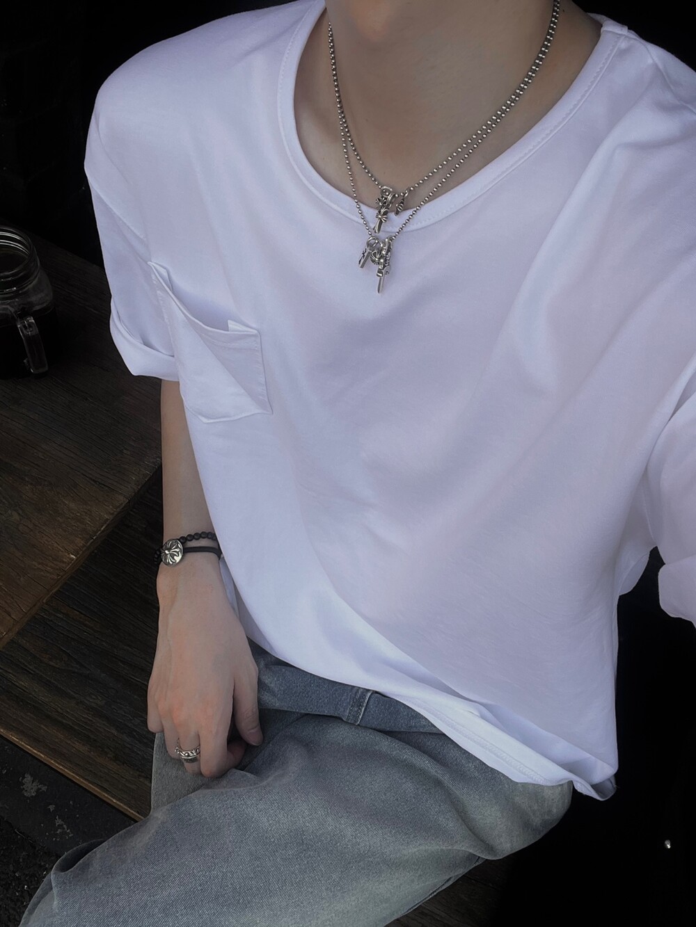 포켓 디테일이 포인트로 들어간 크롭 티셔츠입니다 :)