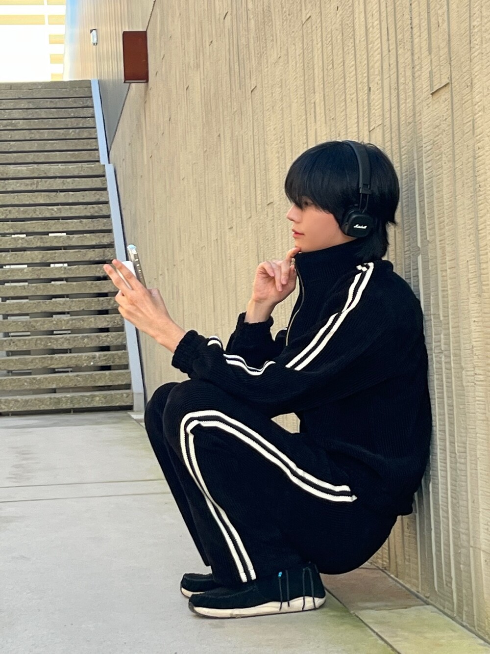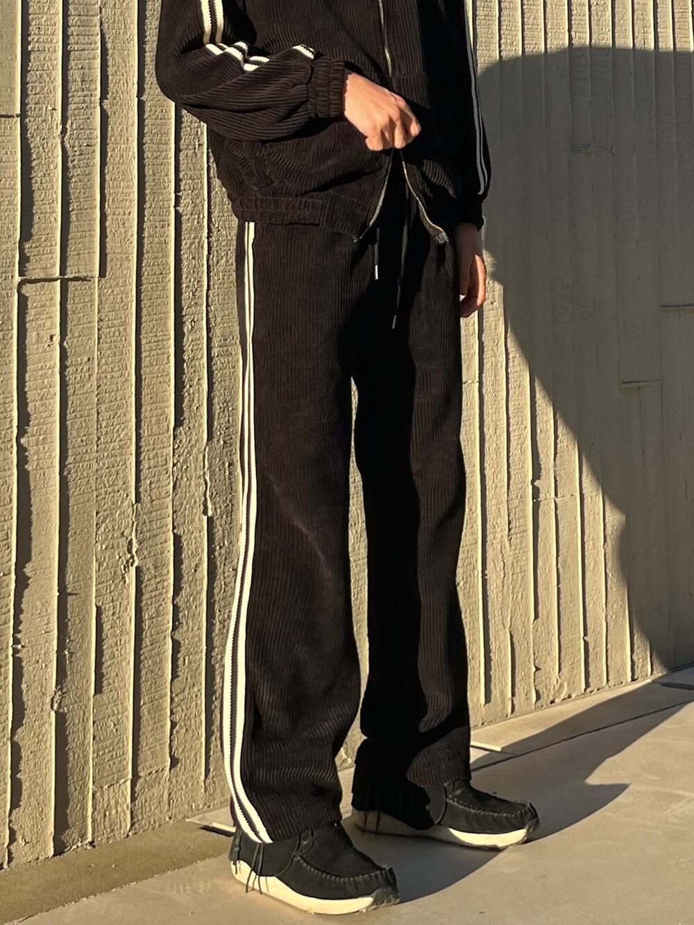 꾸민 듯 안 꾸민 듯 편하게 착용하기 좋은 벨로아 니트 재질의 트랙팬츠 입니다 :)