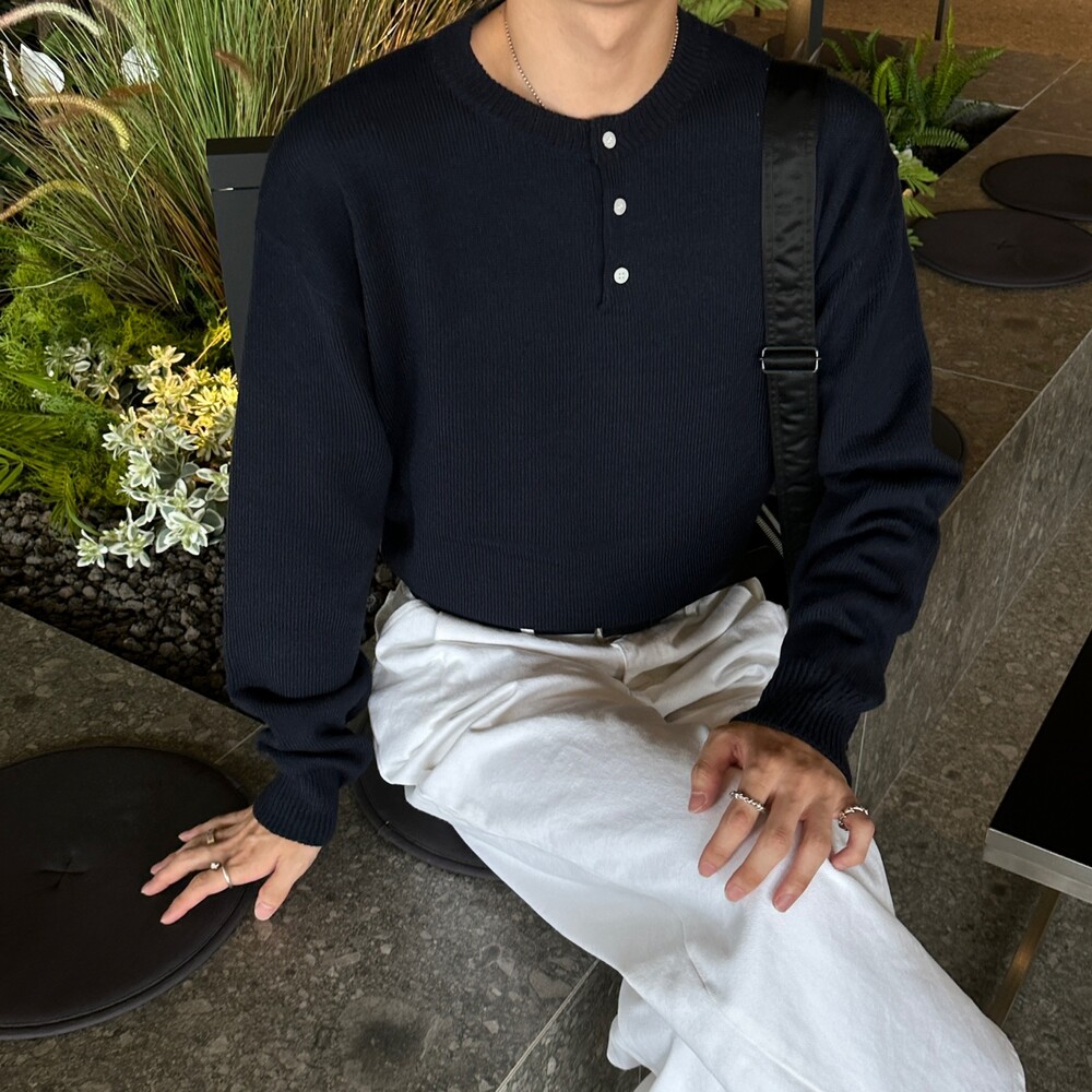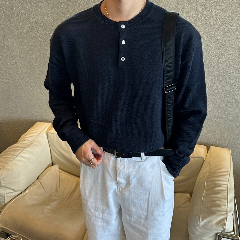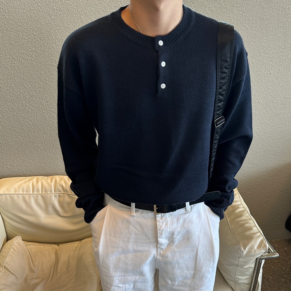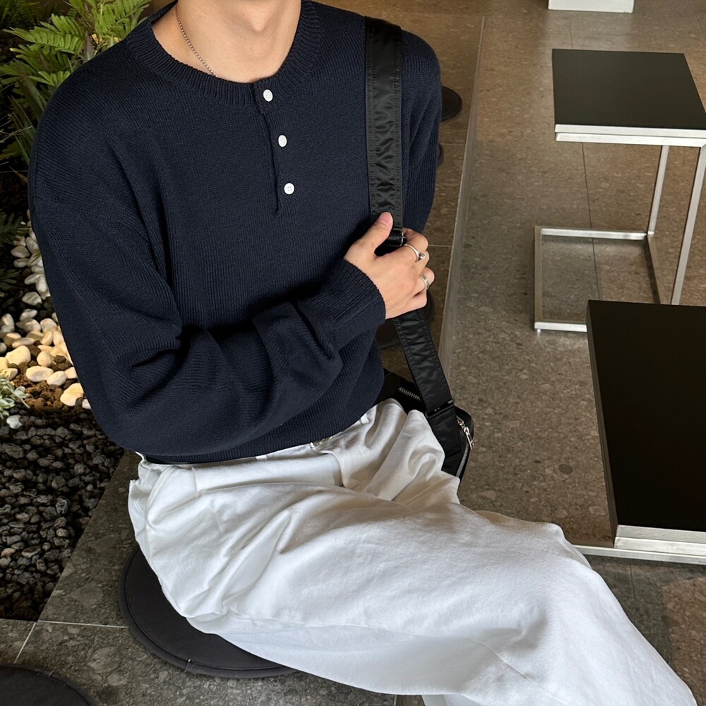 오버 핏 헨리넥 니트 (6color)