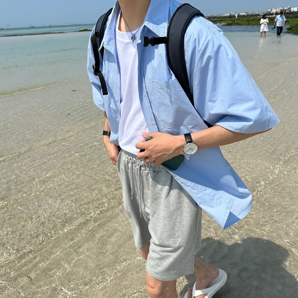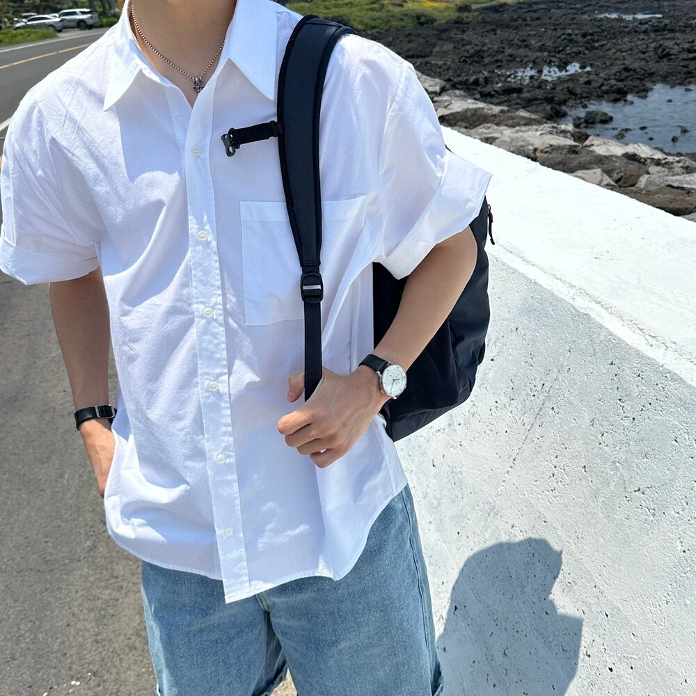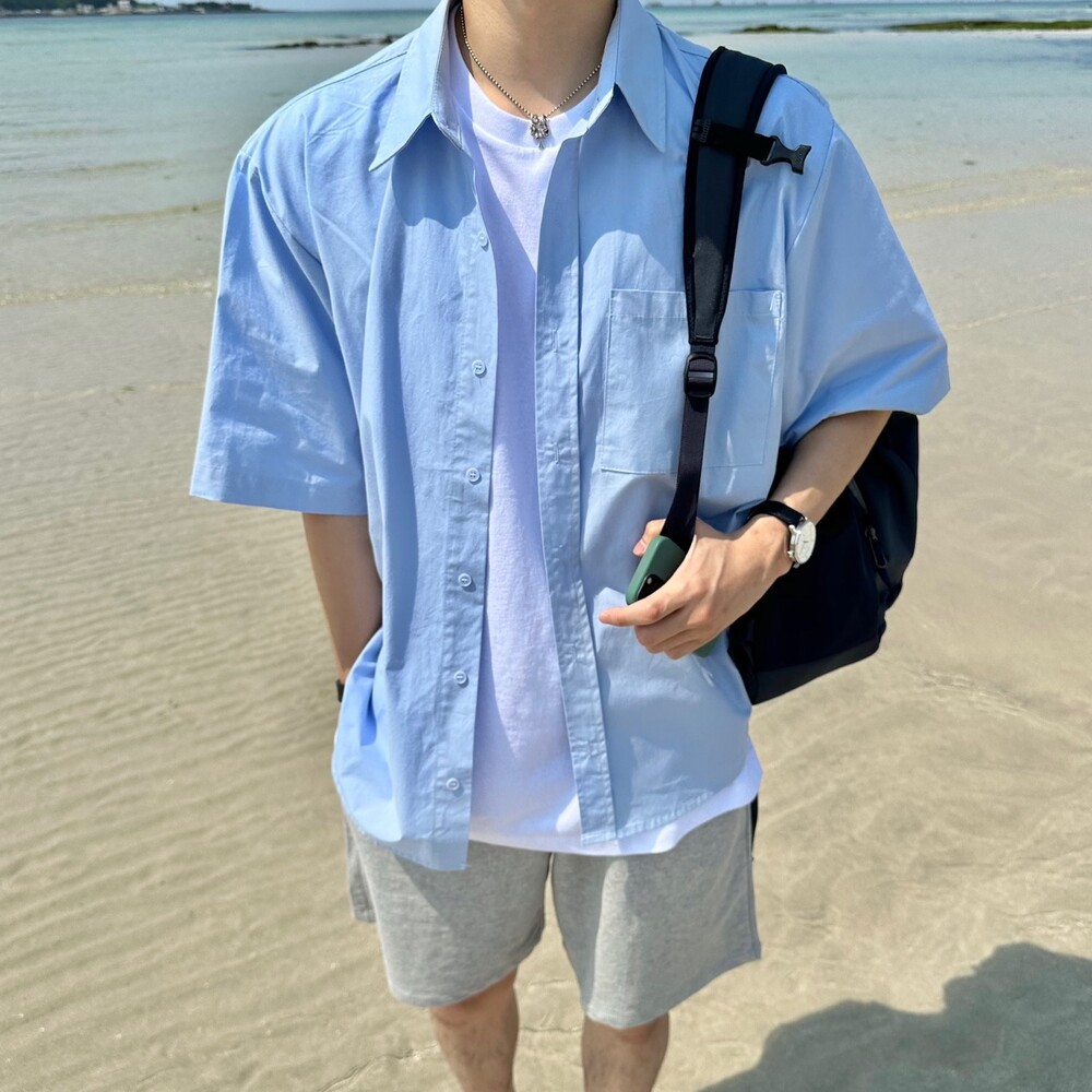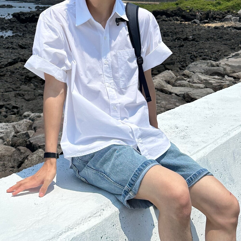 고밀도 오버 반팔 셔츠 (2color)