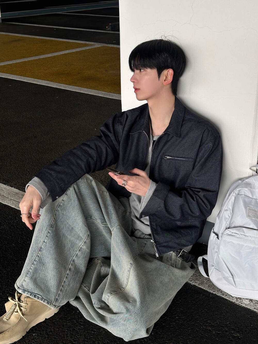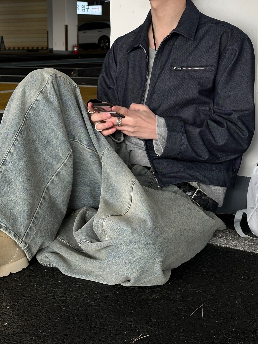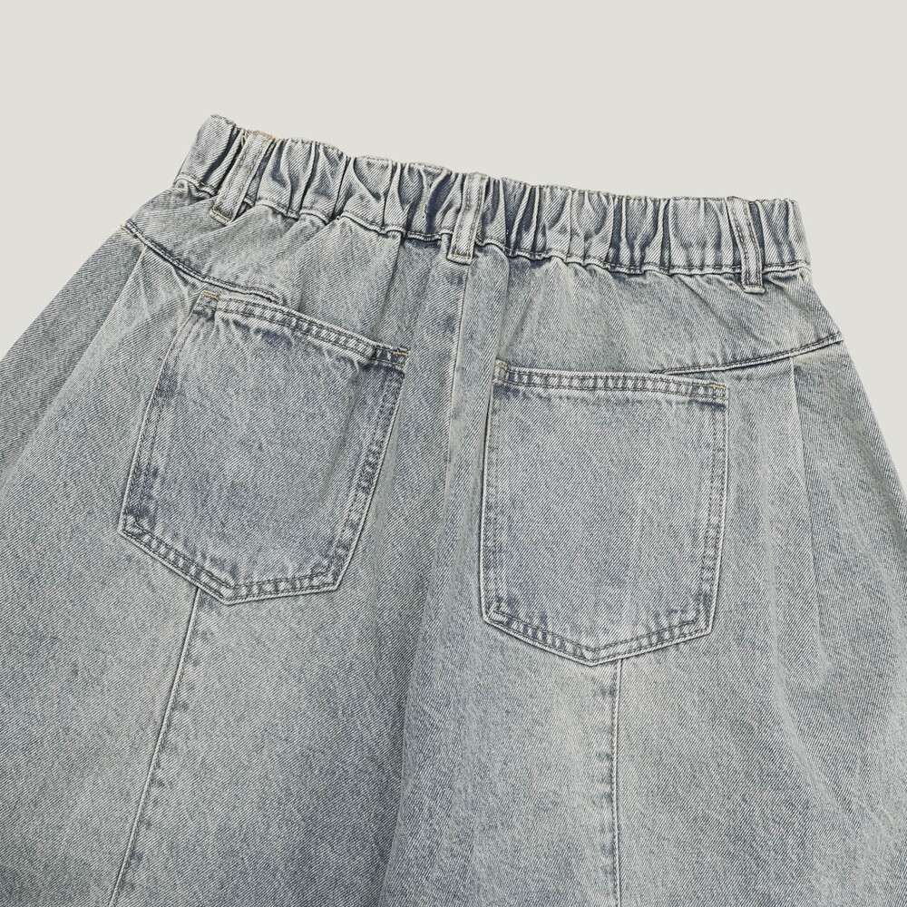 허리 쪽 시접 디테일이 잡아줘서 내려갈 수록 퍼지는 실루엣과