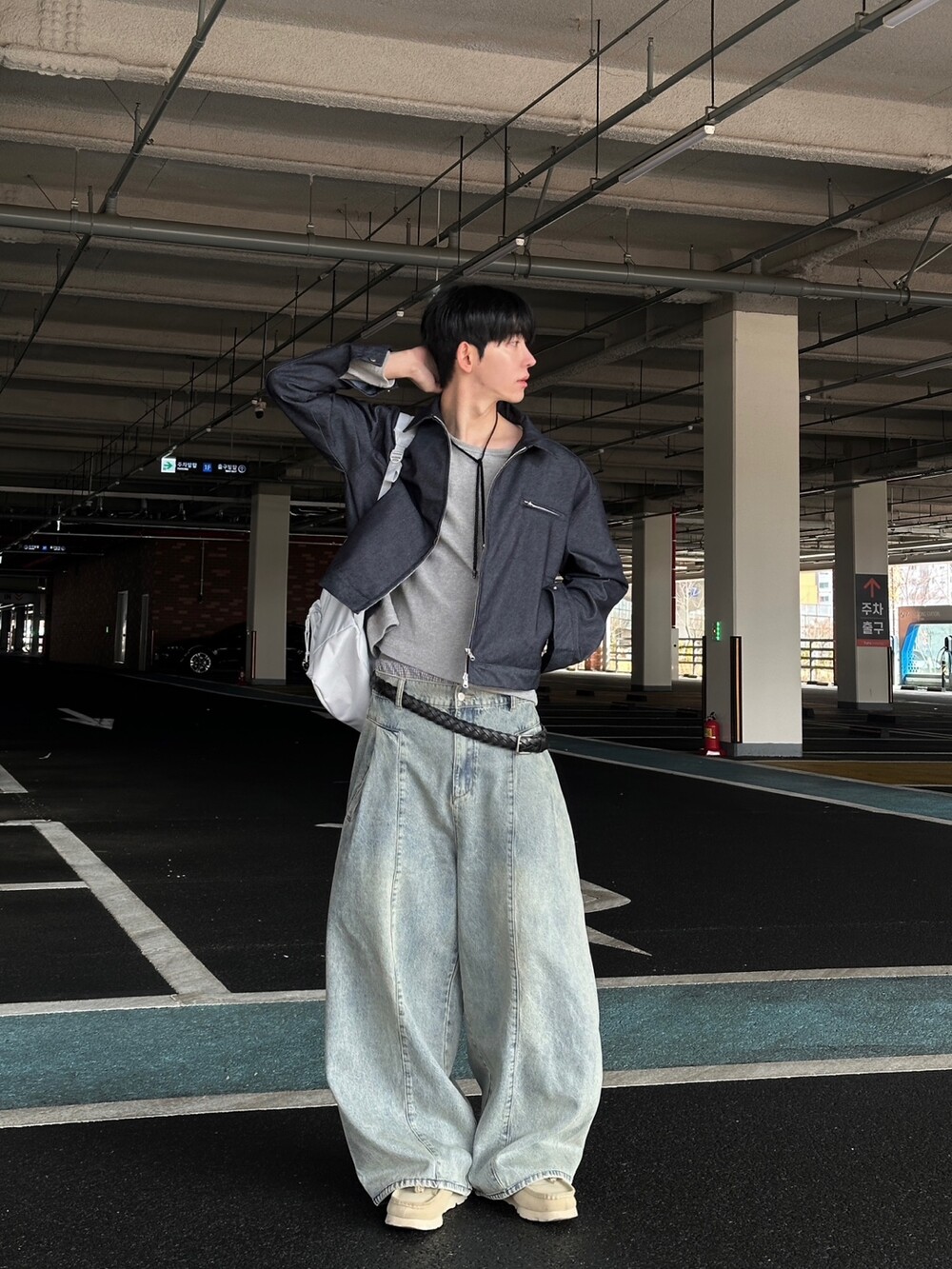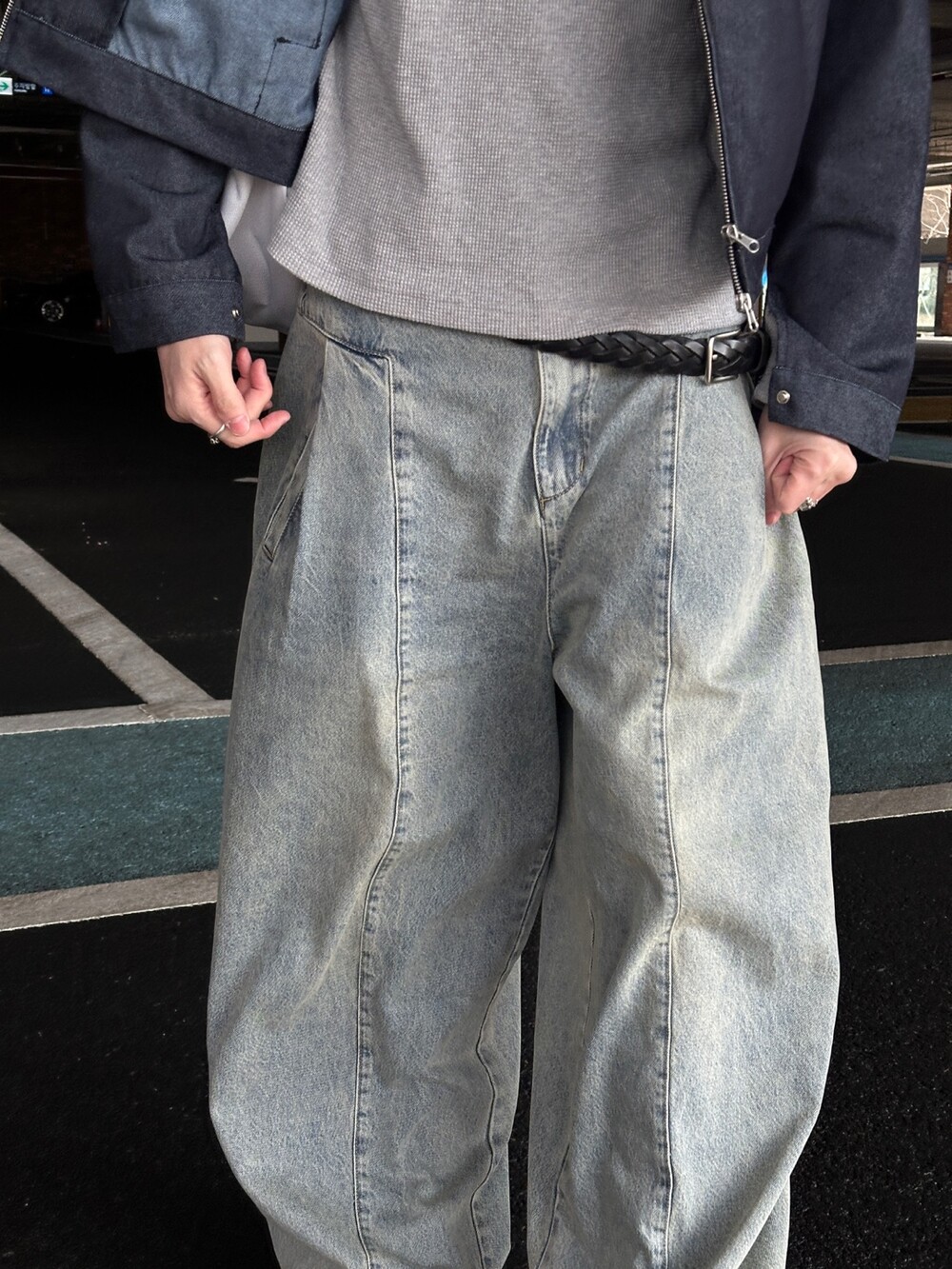 핀턴절개 벌룬 밴딩 데님
