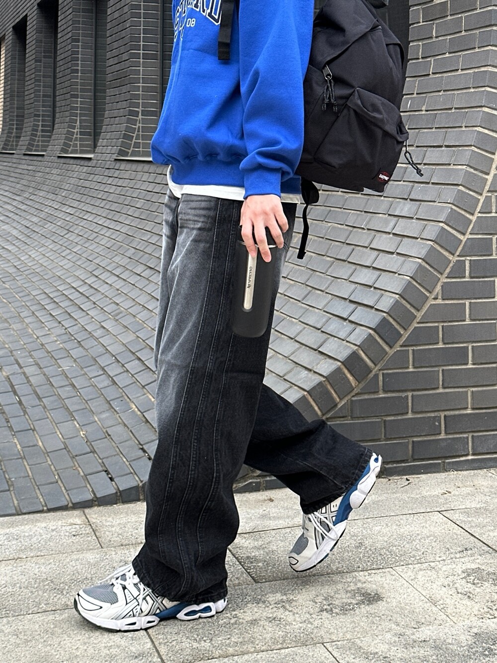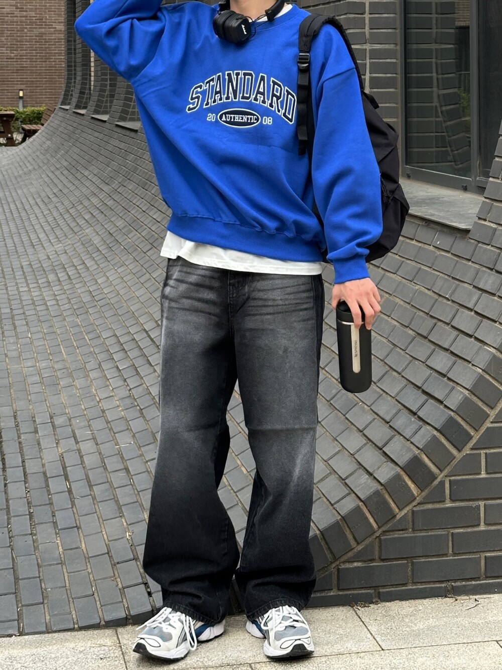 와이드로 쭉 떨어지는 핏 감에 사이드 트랙 디테일이 너무 예쁜 팬츠