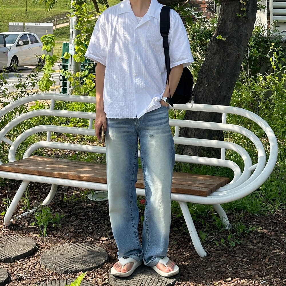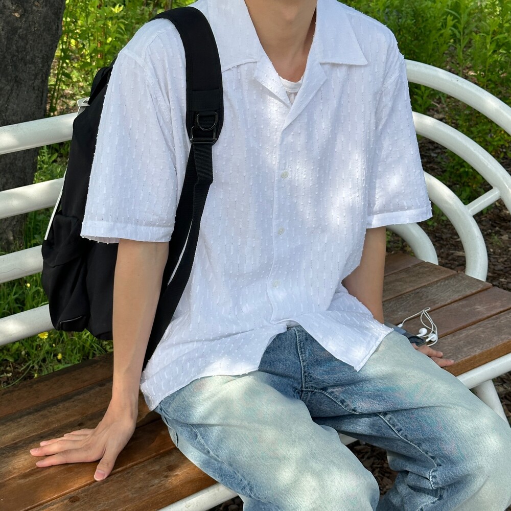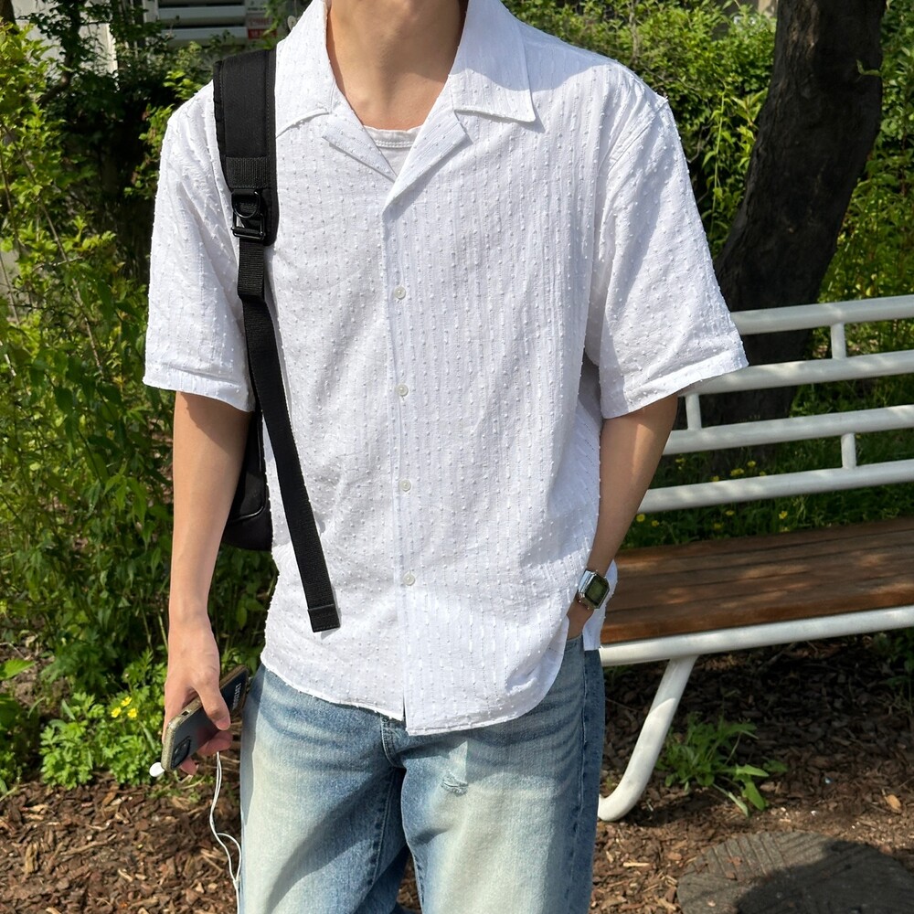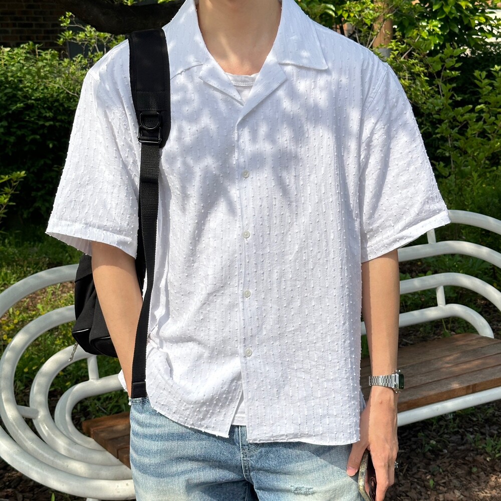 가우디 펀칭 오픈카라 셔츠 (2color)