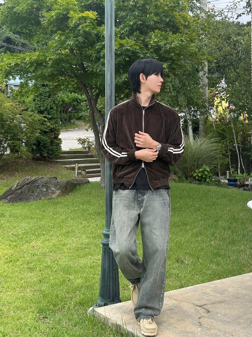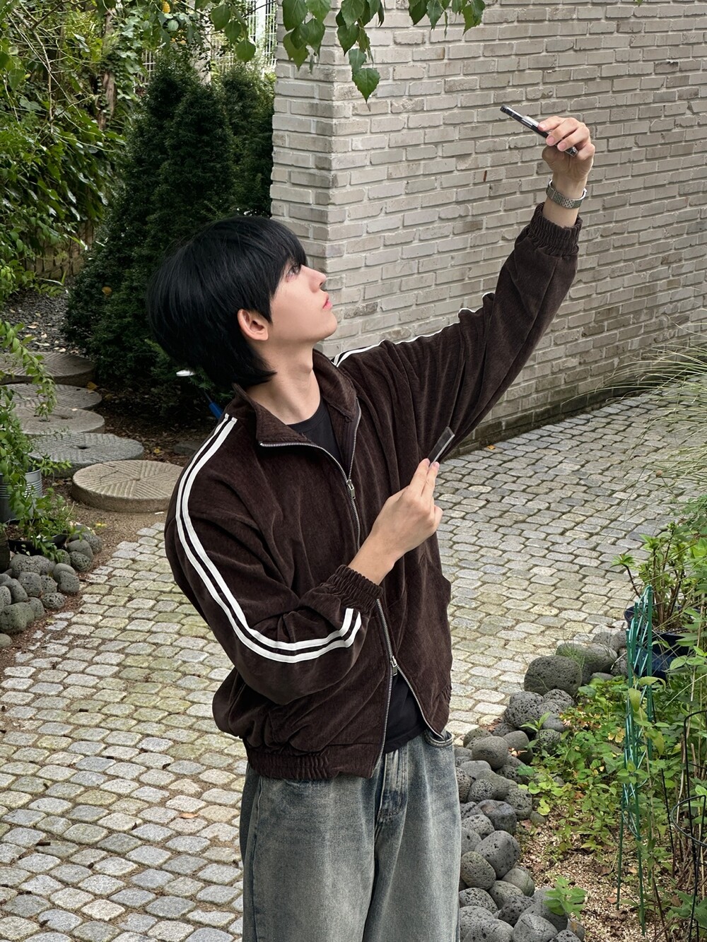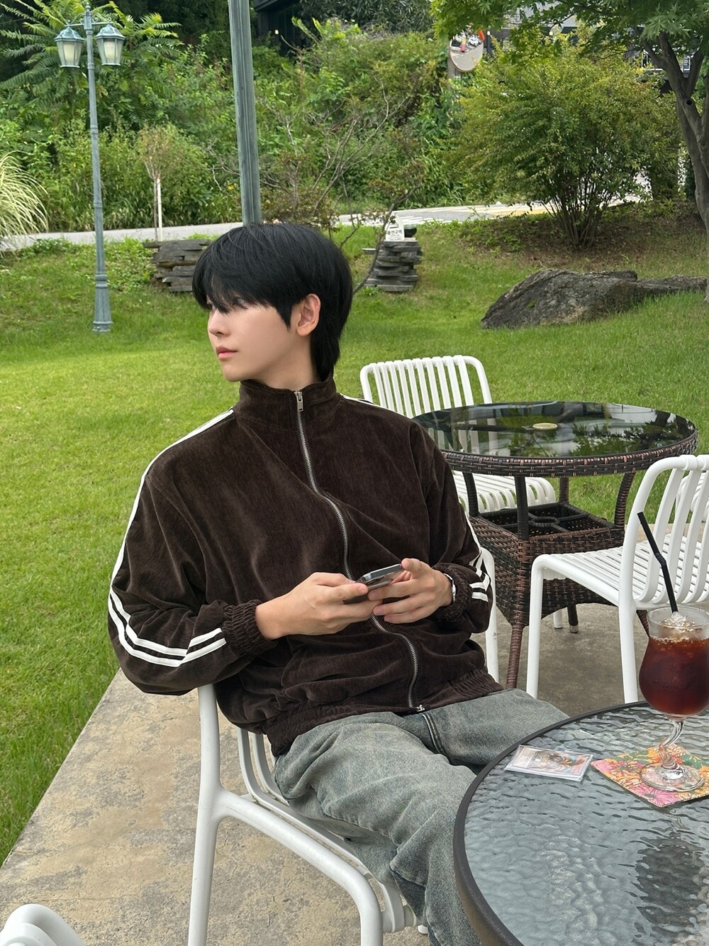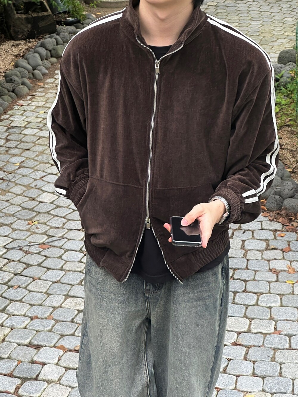 부드러운 터치감의 벨벳 재질의 트랙탑입니다 :)