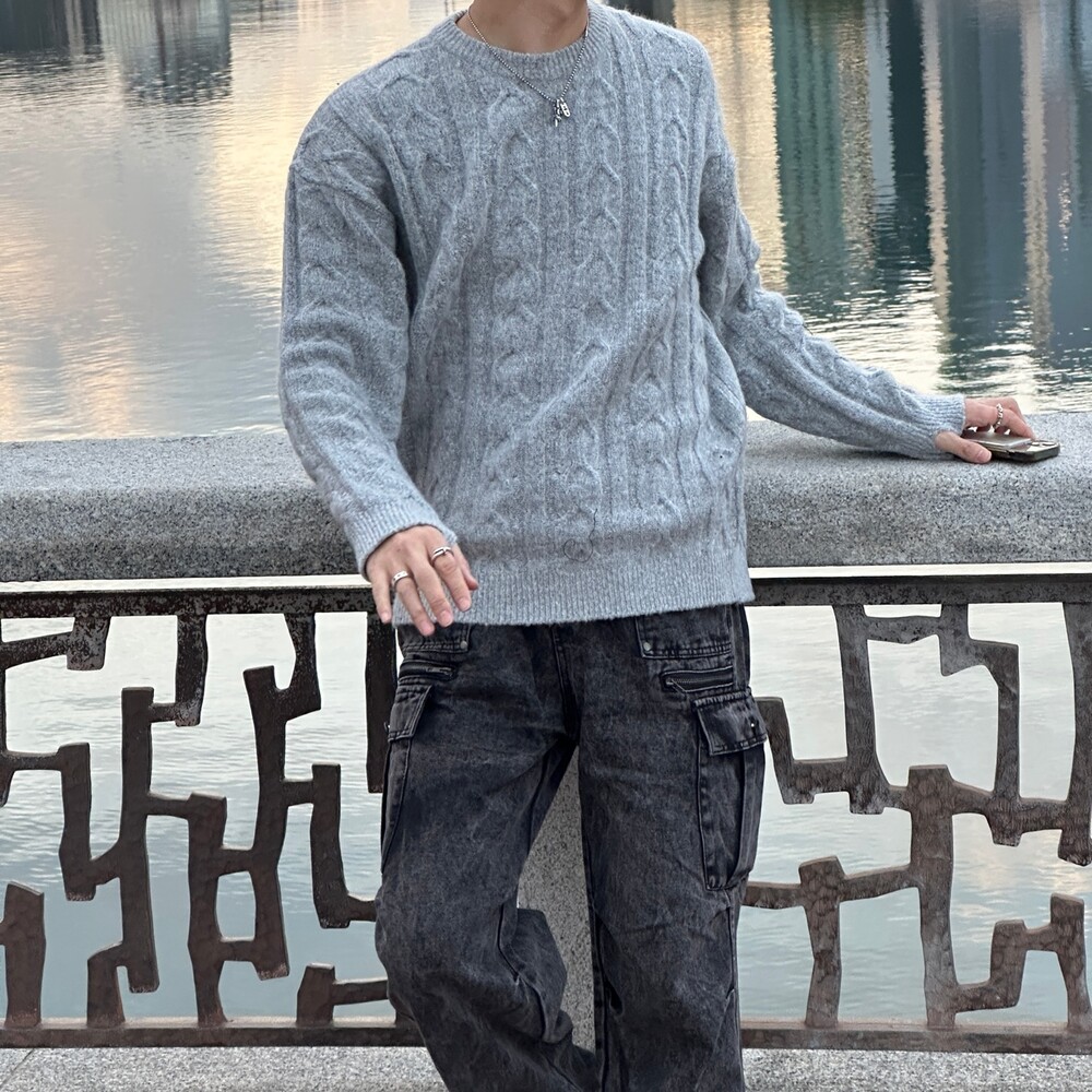 부드러운 터치감이 너무 좋은 따뜻한 케이블 니트입니다 :)