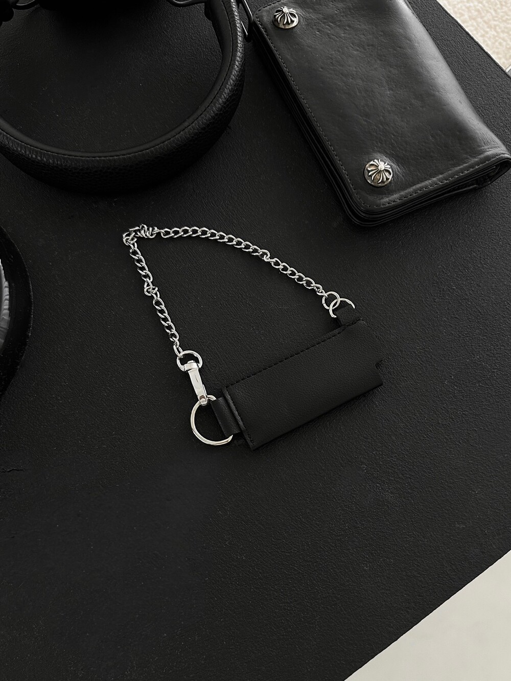블랙 색상으로 시크한 무드를 주기 좋은 아이템이고 은은한 포인트 주기도 너무 좋은 키링입니다 !