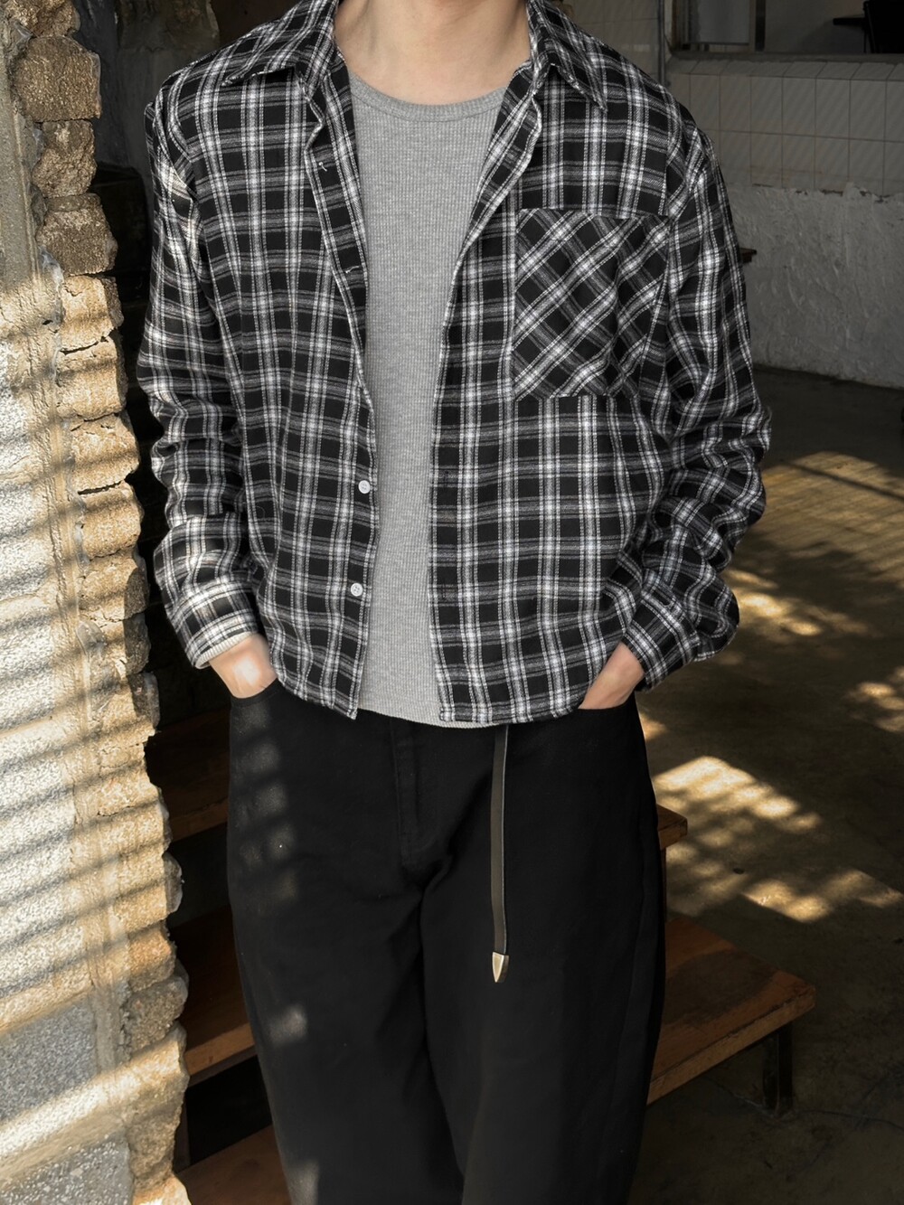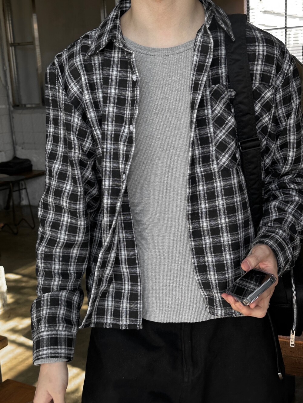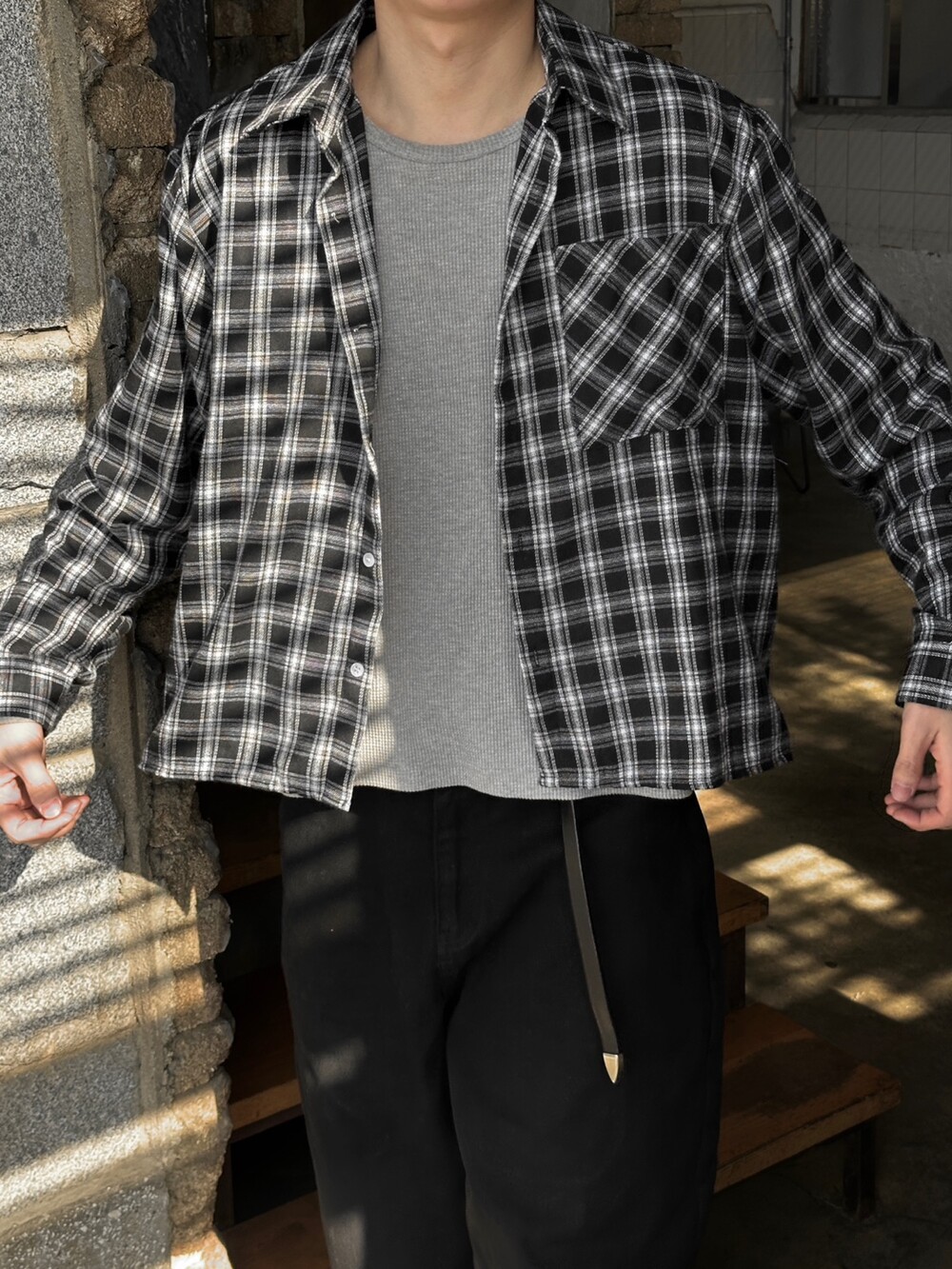 요즘코디 필수인 체크셔츠 크롭한 기장감이라