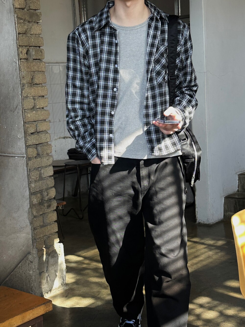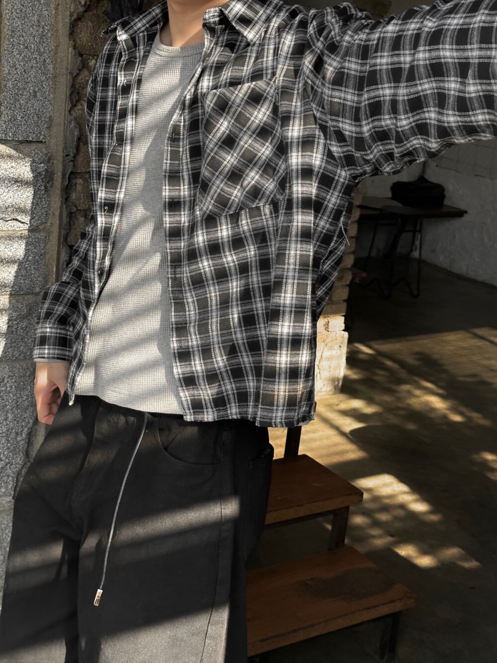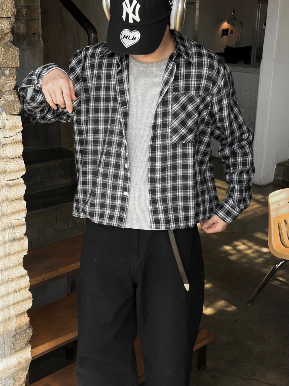 요즘코디 필수인 체크셔츠 크롭한 기장감이라