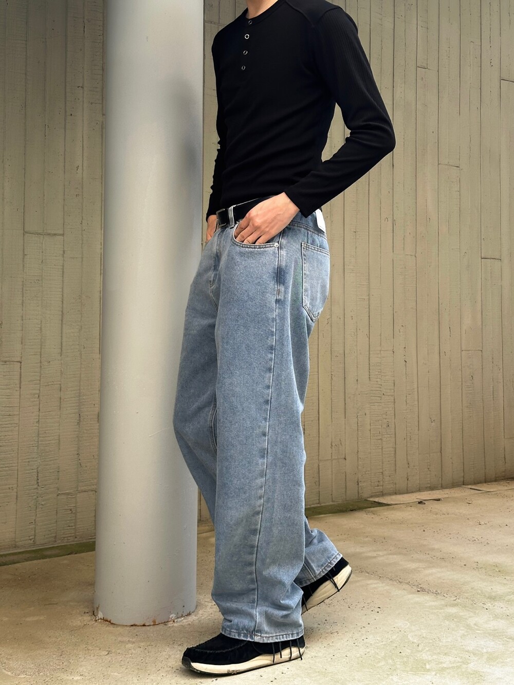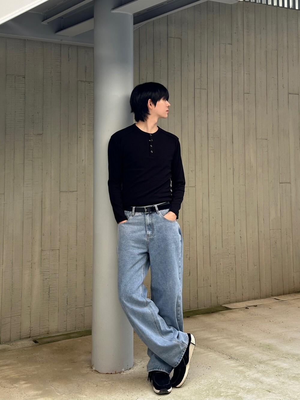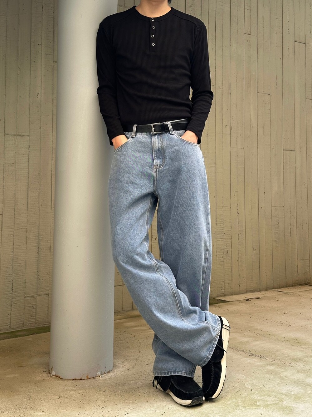 아래로 쭉 떨어지는 와이드한 실루엣으로 어디에나 착용하기 좋습니다