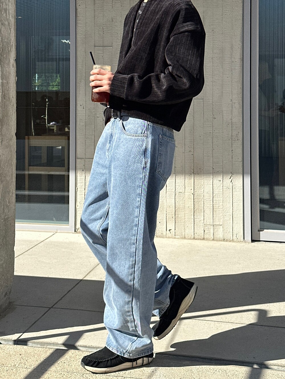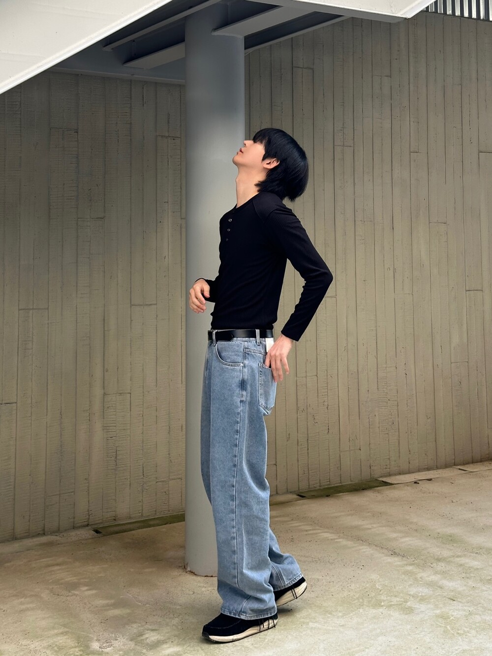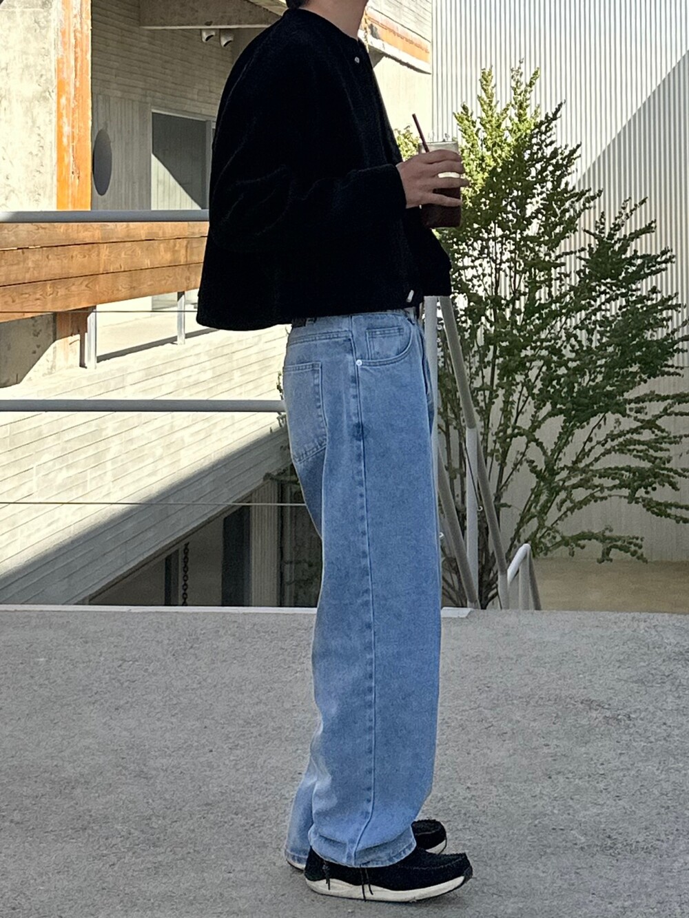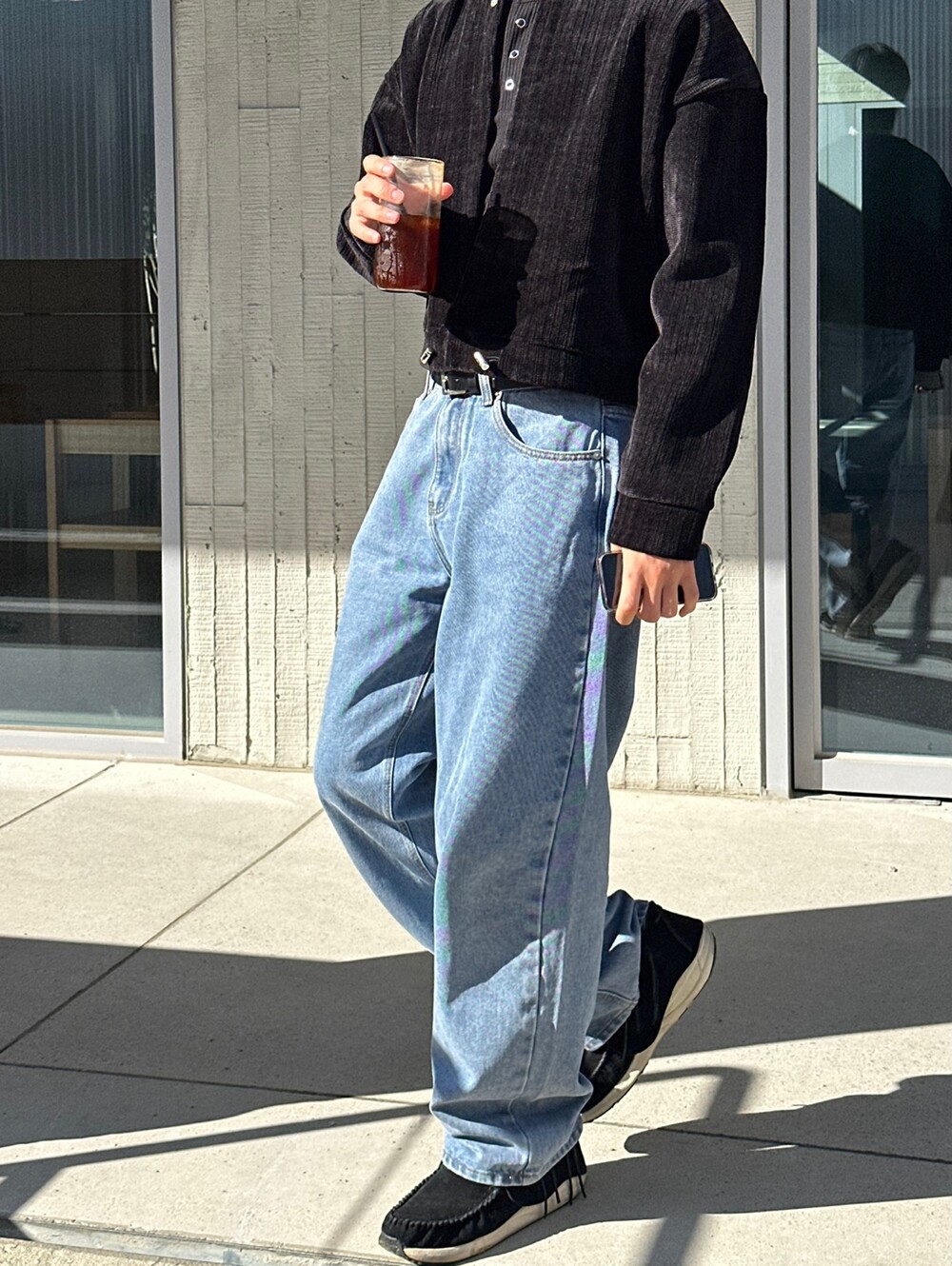 아래로 쭉 떨어지는 와이드한 실루엣으로 어디에나 착용하기 좋습니다