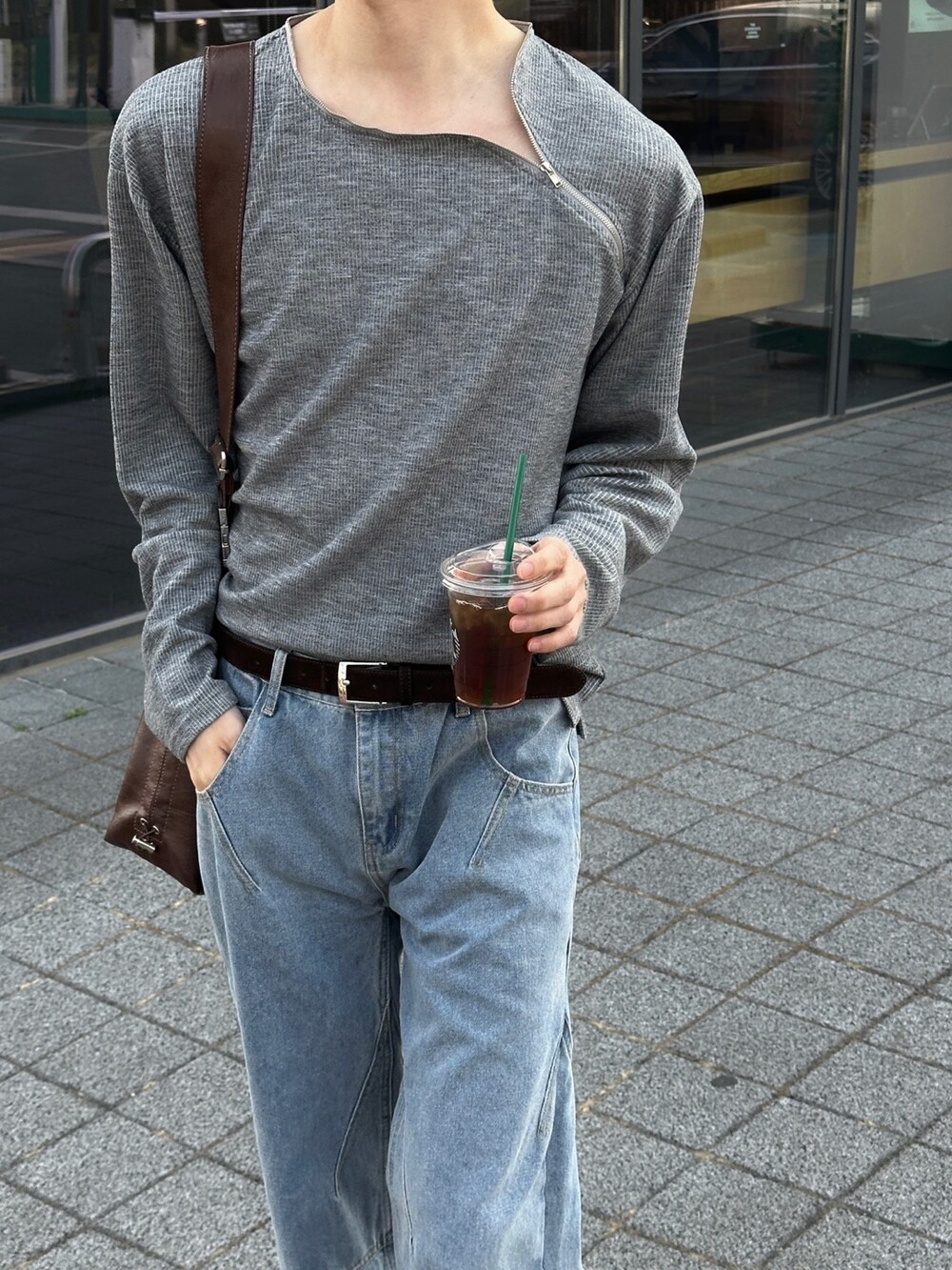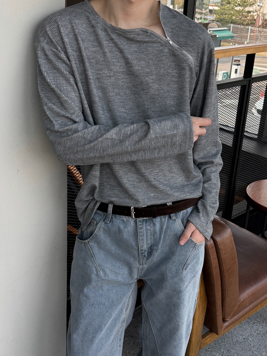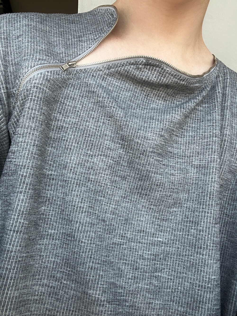 라운드에 커브 지퍼 포인트가 들어간 티셔츠입니다 :)