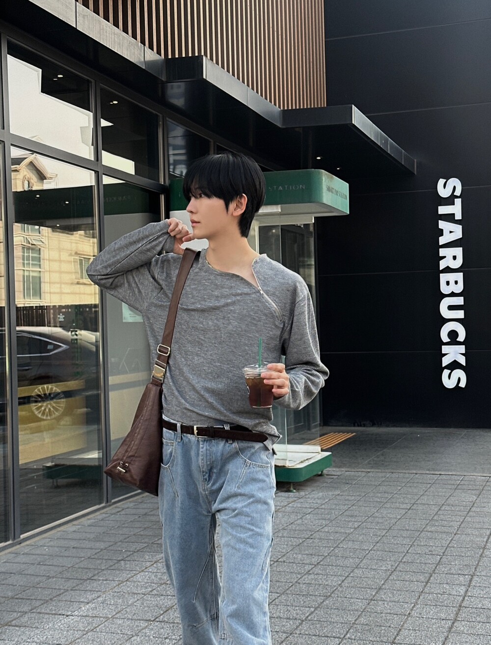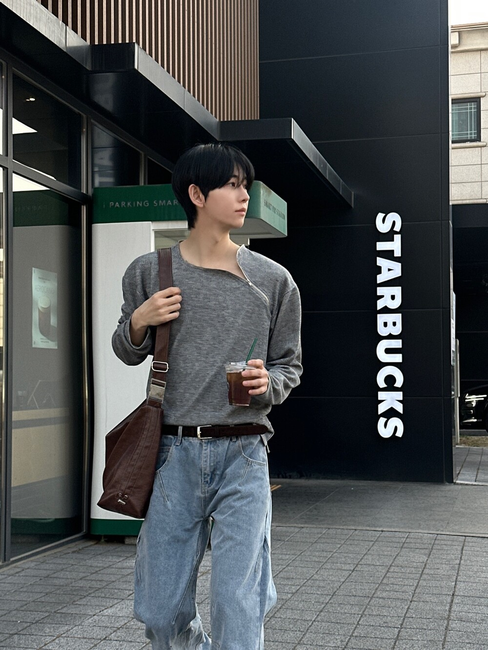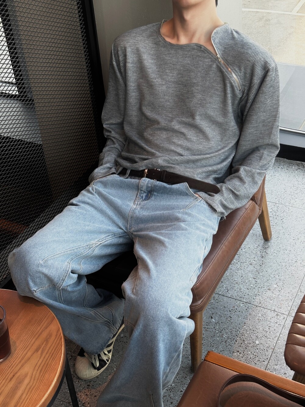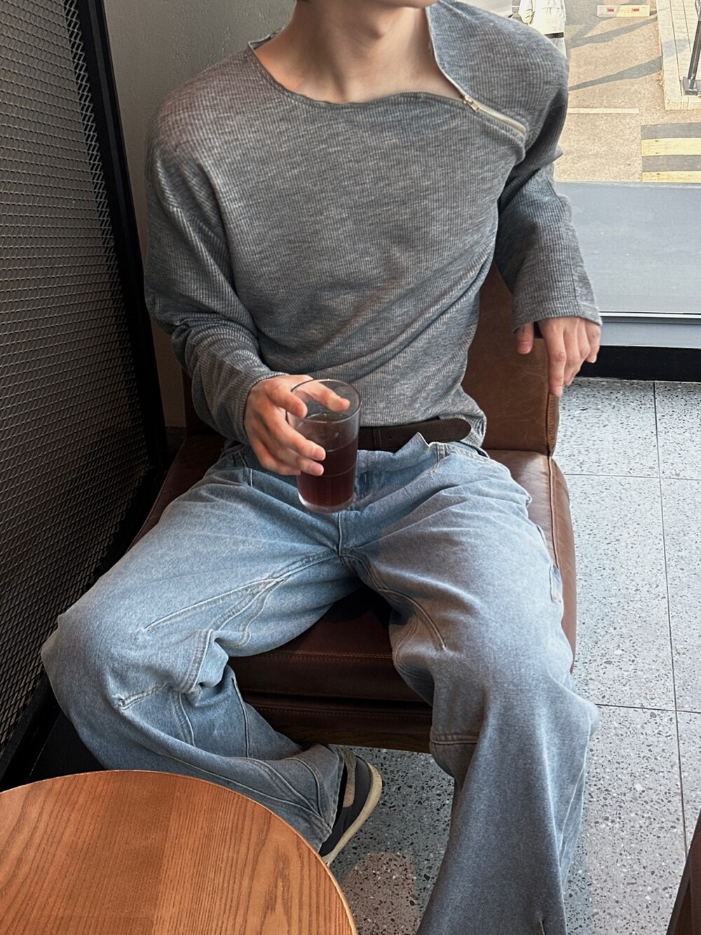 라운드에 커브 지퍼 포인트가 들어간 티셔츠입니다 :)