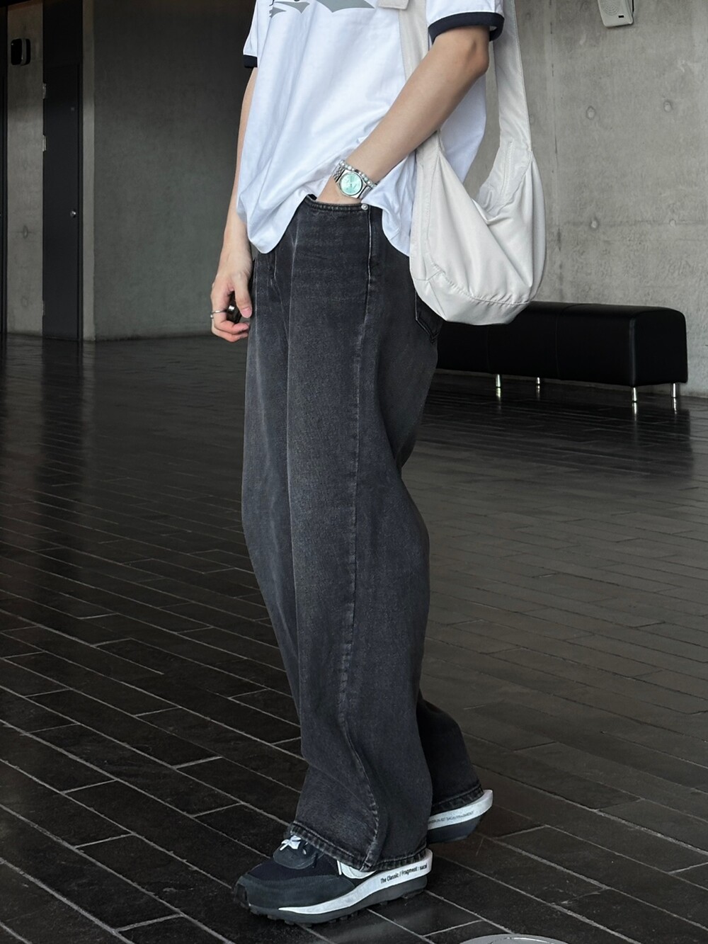 이랒로 쭉 떨어지는 와이드한 실루엣으로 어디에나 착용하기 좋습니다