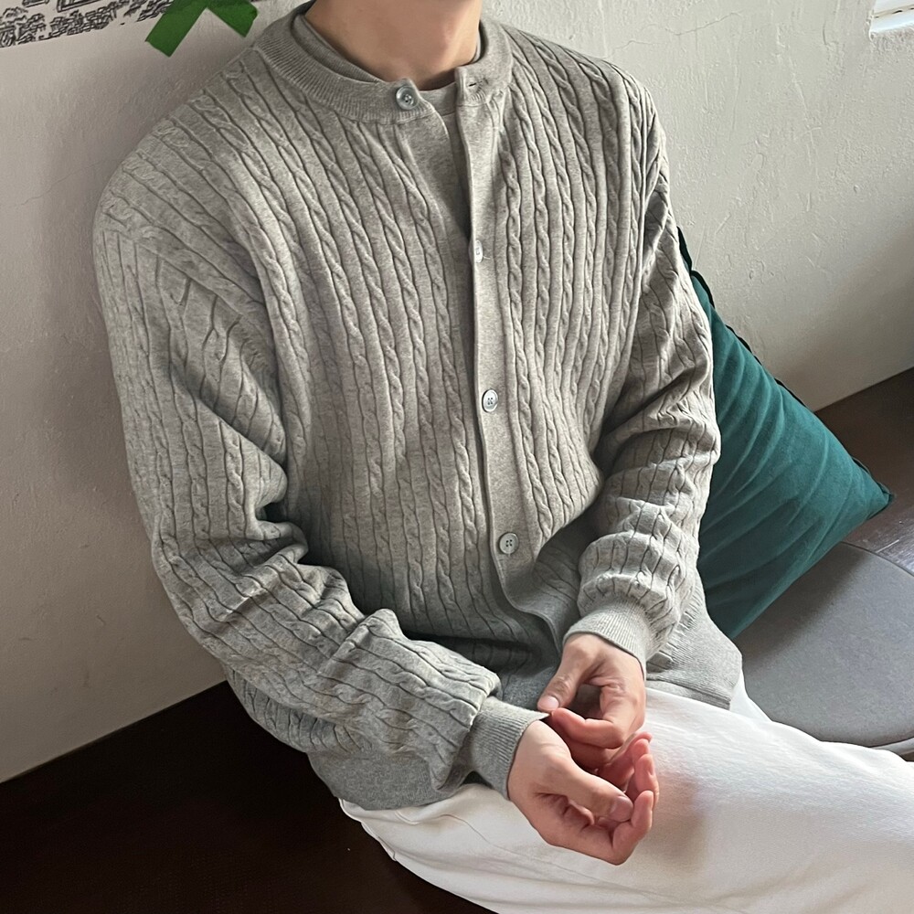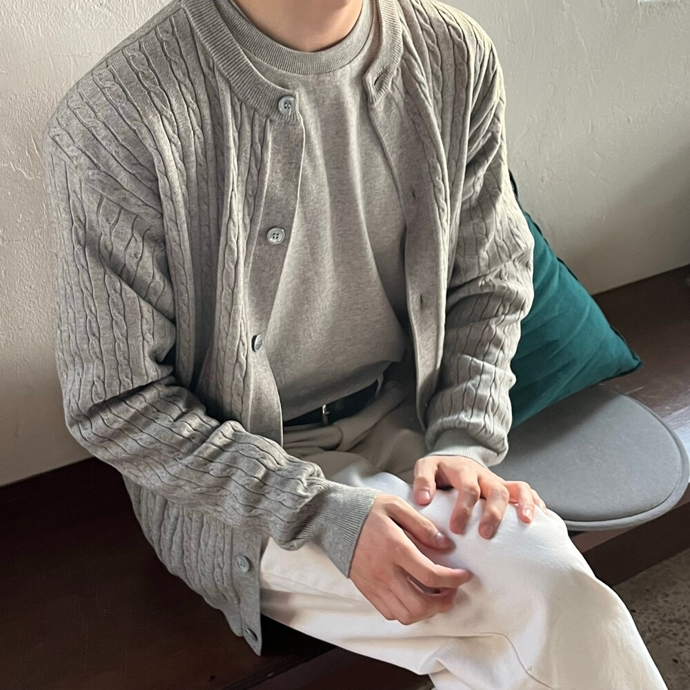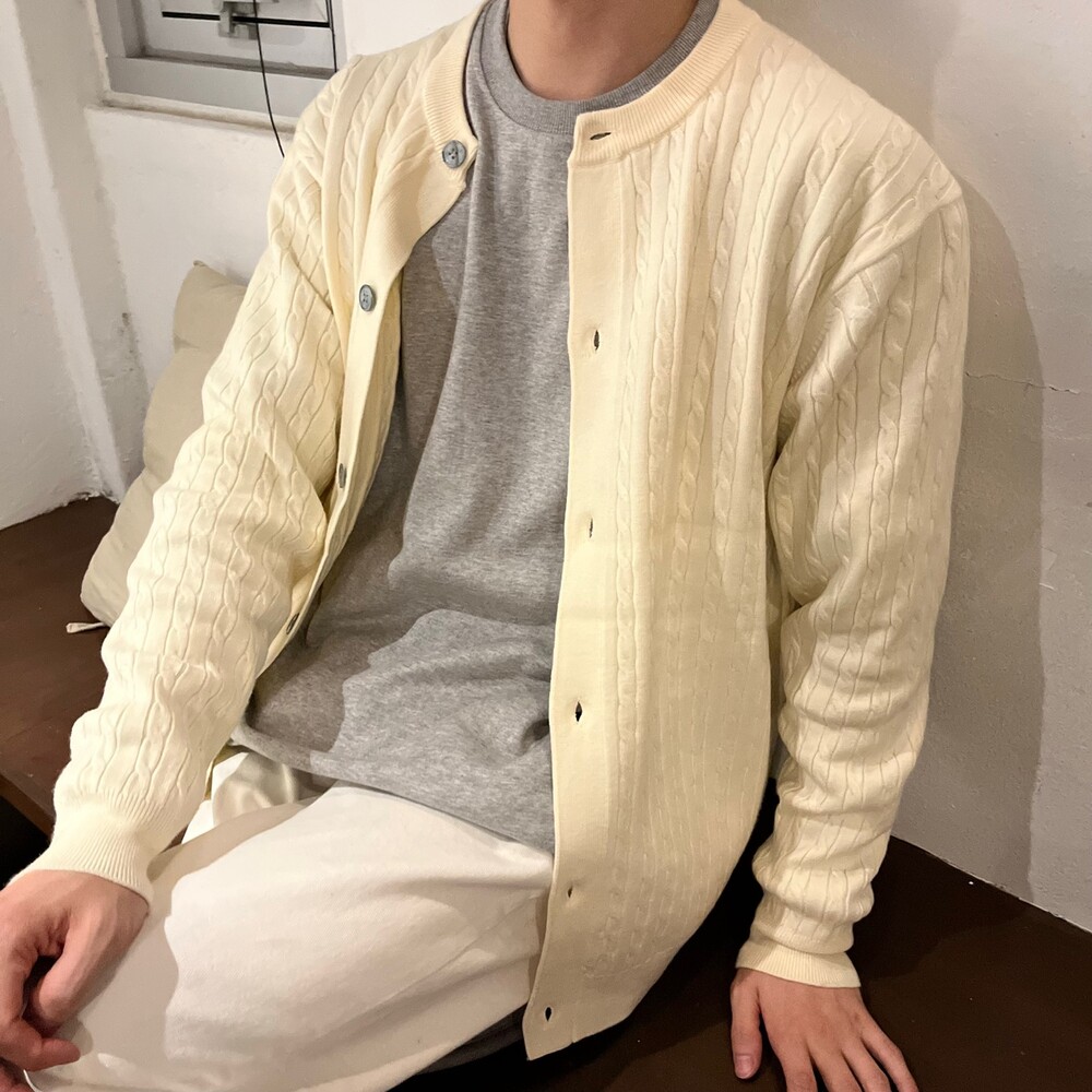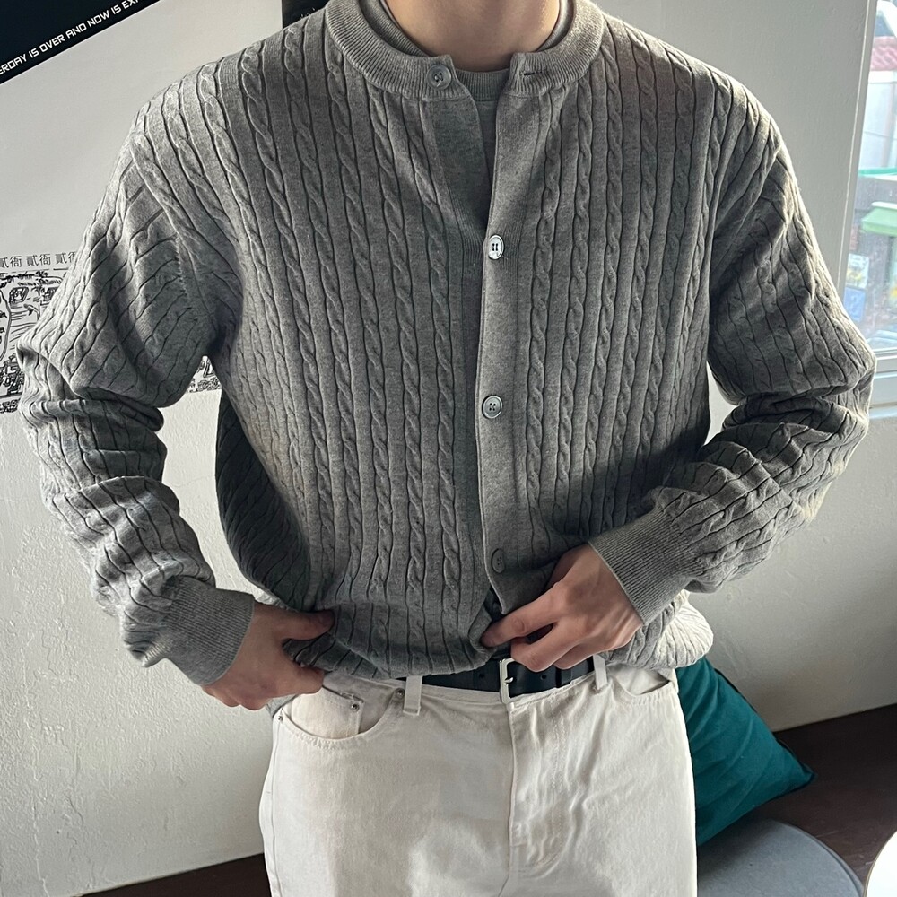 라운드넥 꽈배기 가디건 (5color)