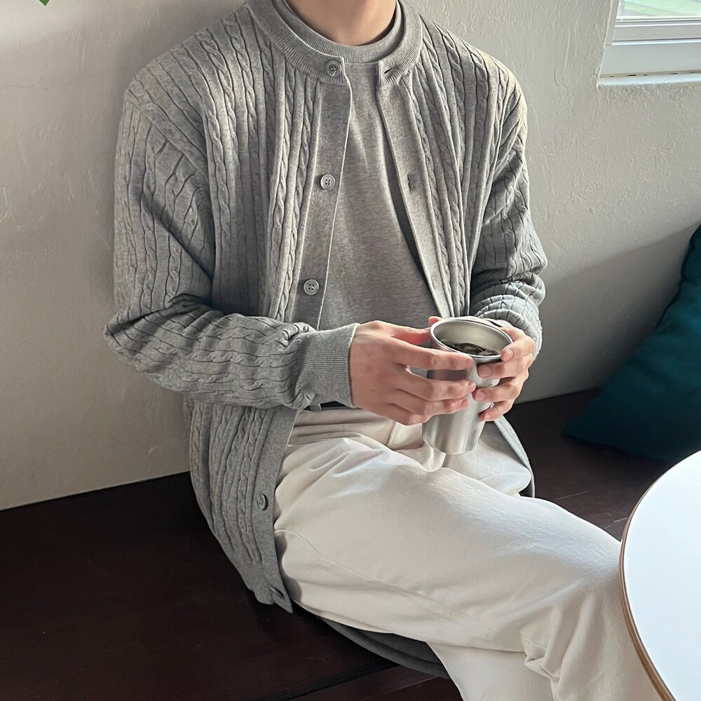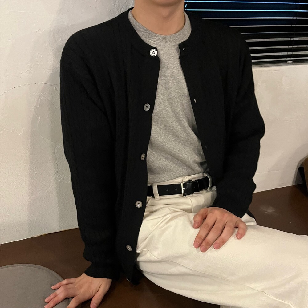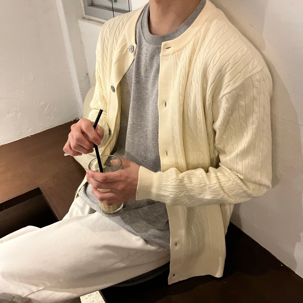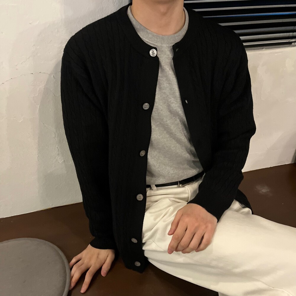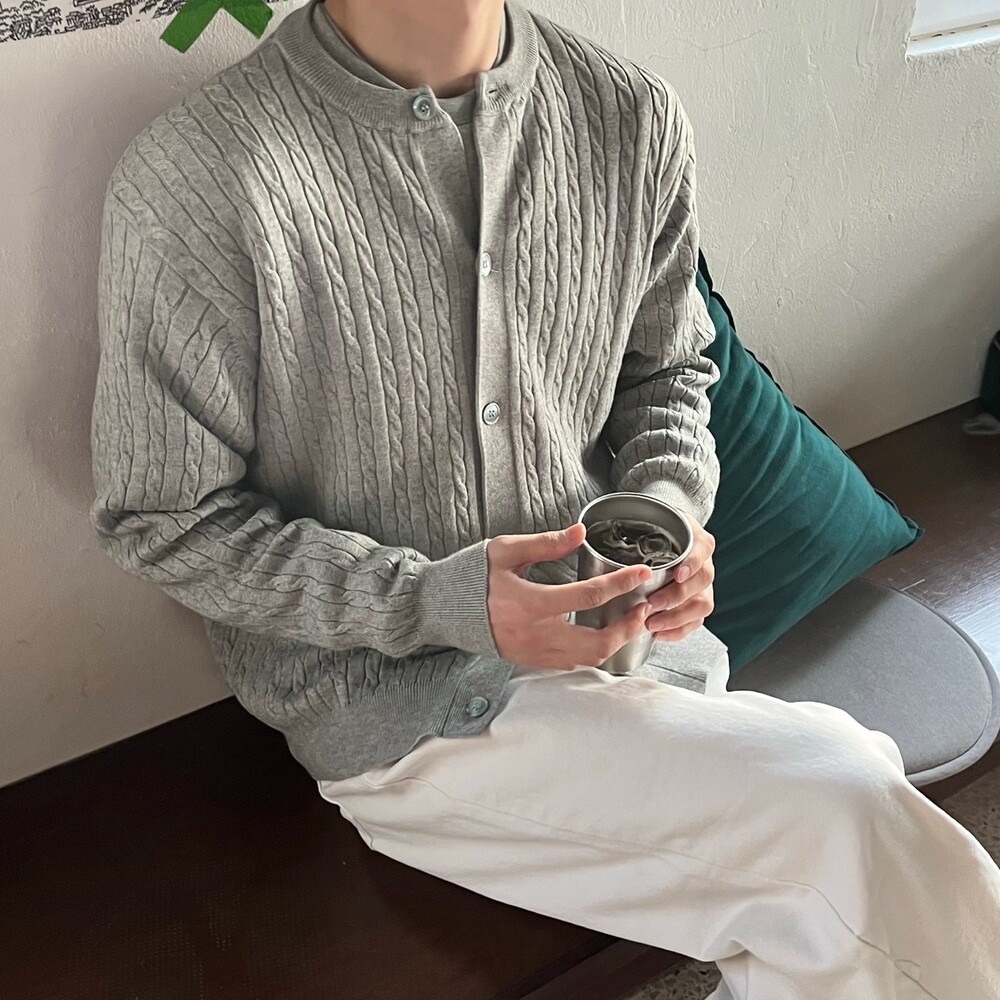라운드넥 꽈배기 가디건 (5color)