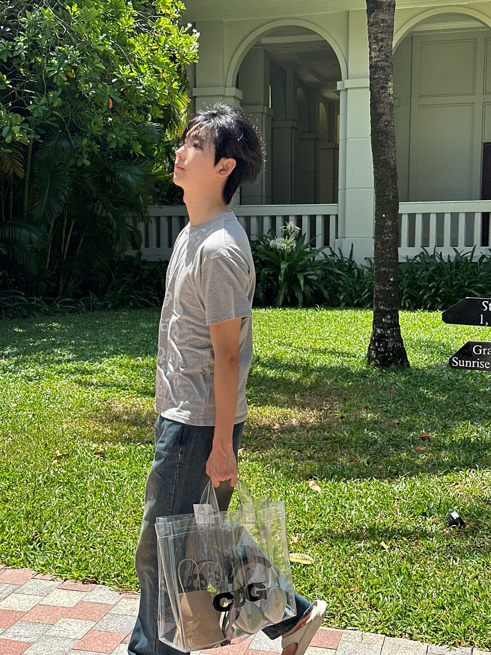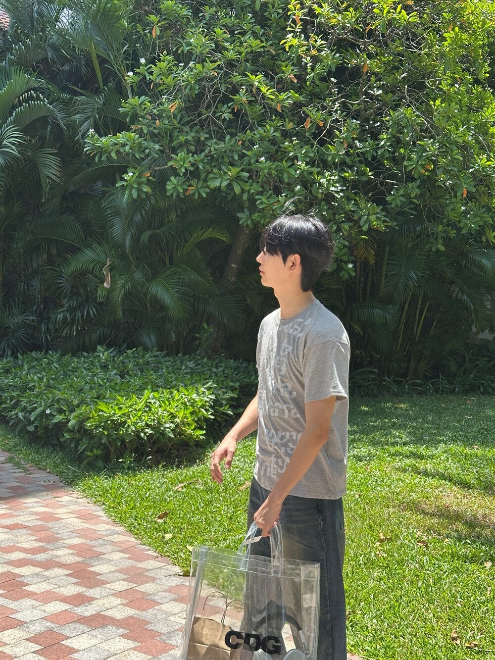 크롭한 기장감으로 키에 상관없이 착용하기 좋은 반팔티 입니다