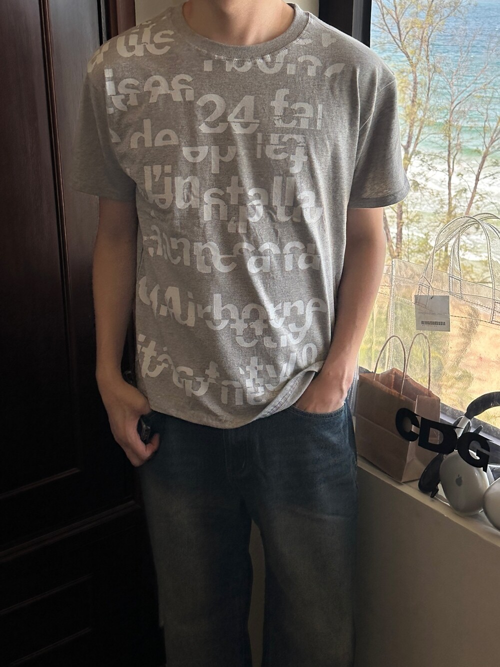 앞 판에 꽉찬 레터링 그래픽이 특징인 반팔티 입니다