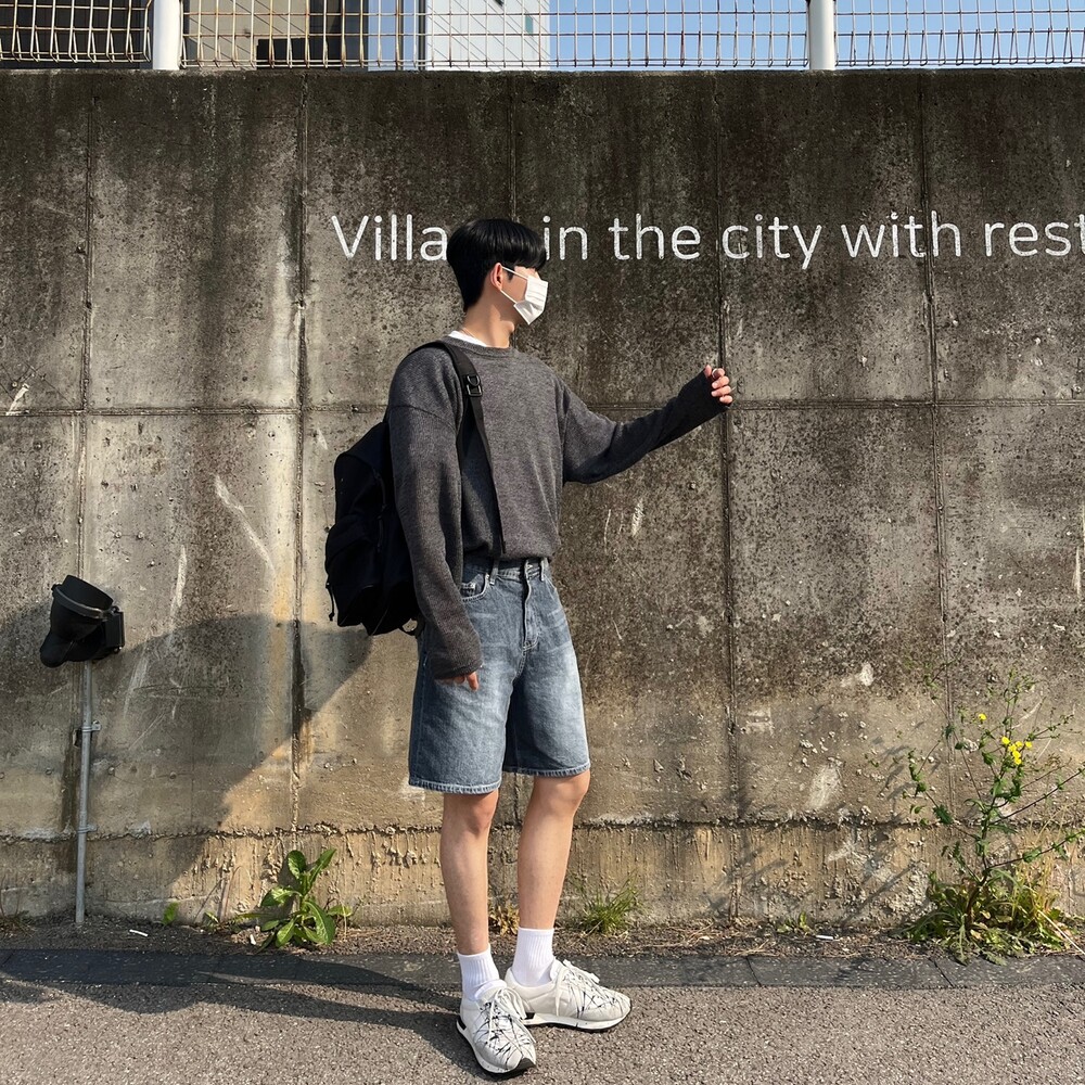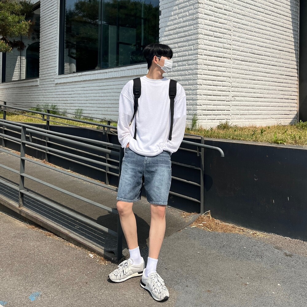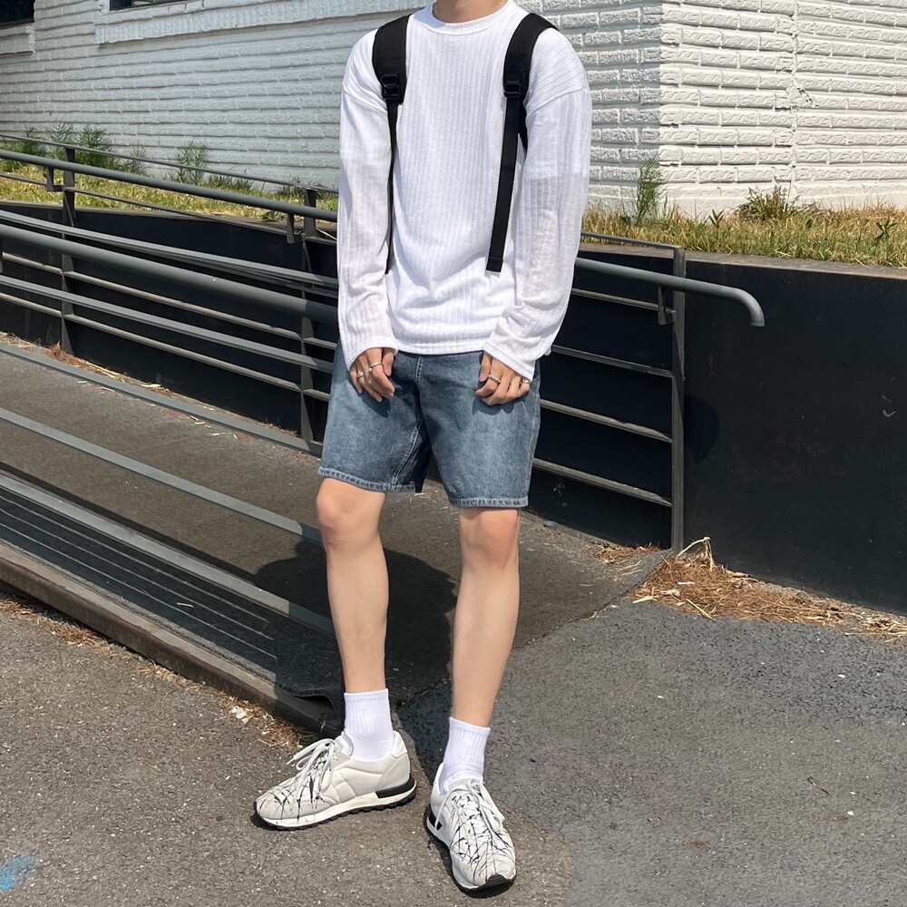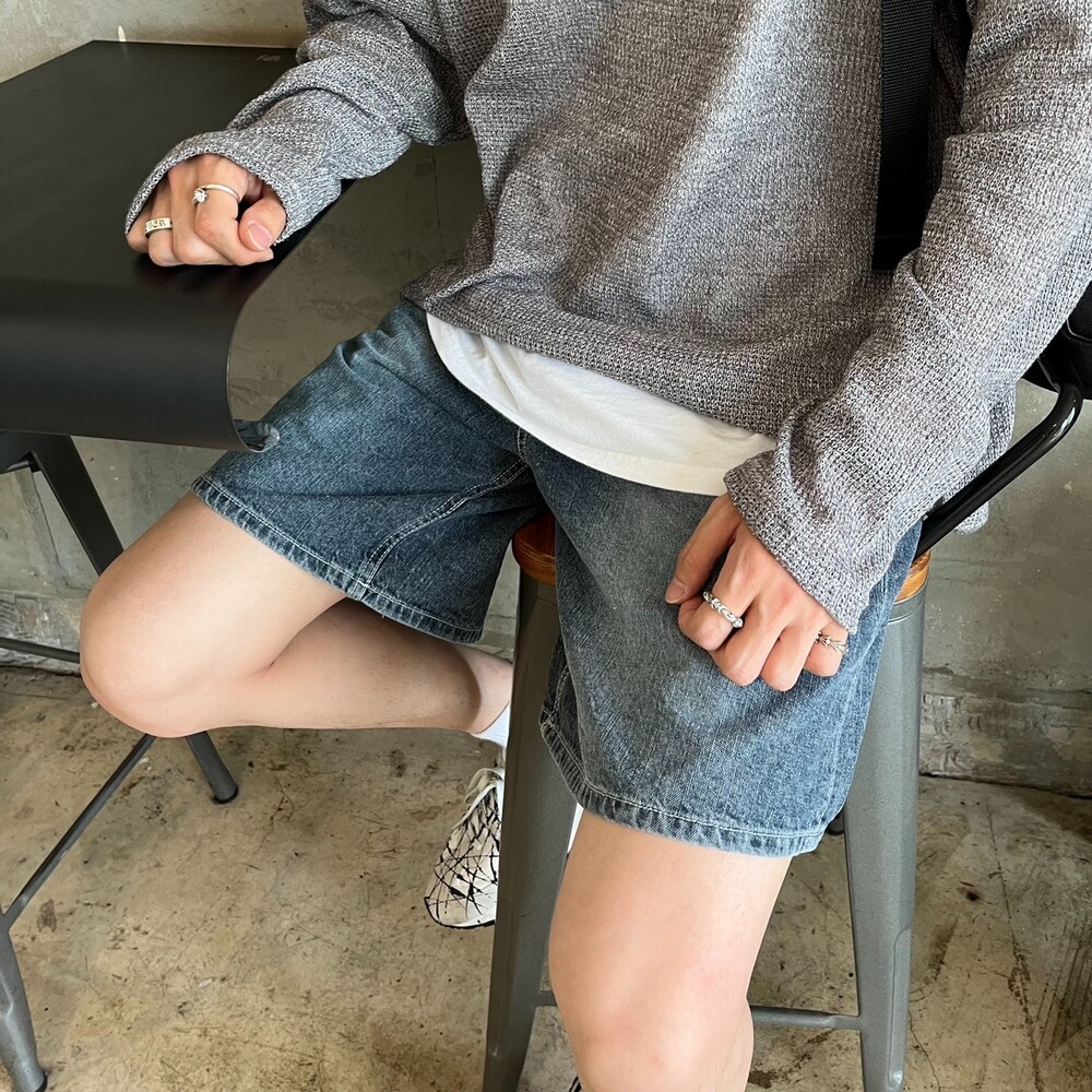 다크블루 세미와이드 하프팬츠