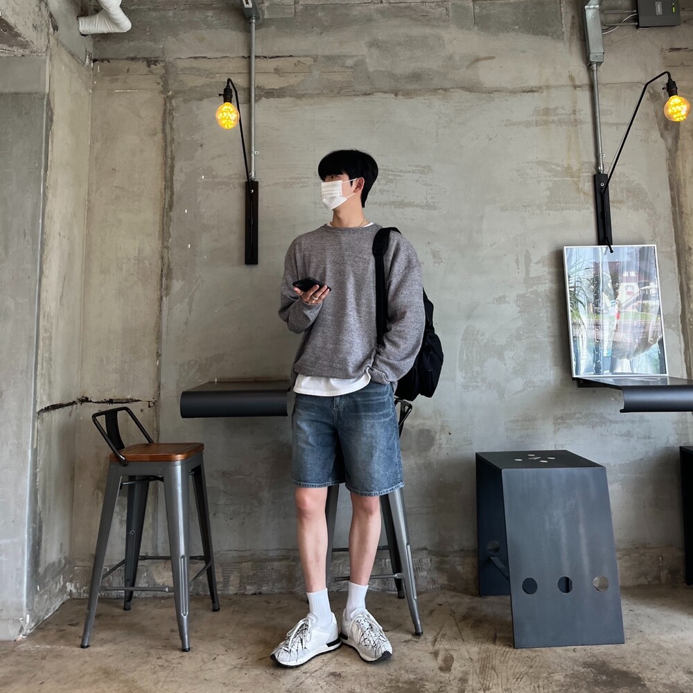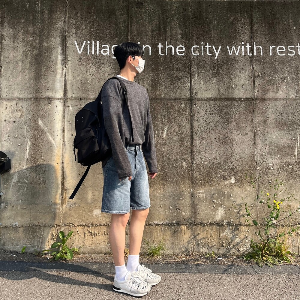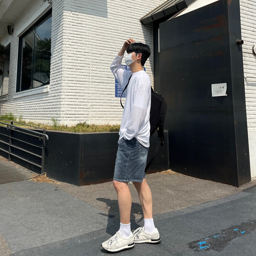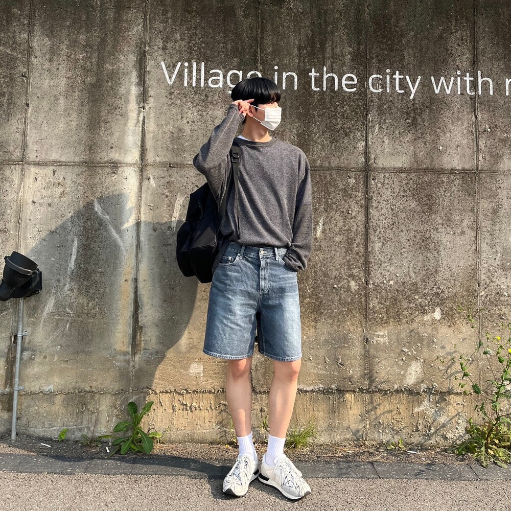 다크블루 세미와이드 하프팬츠