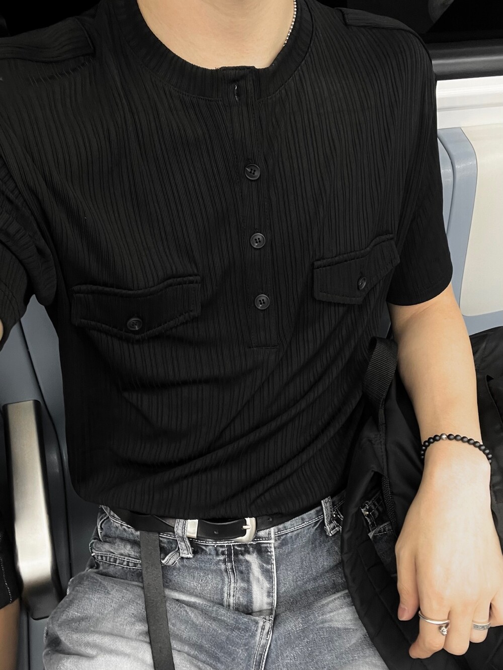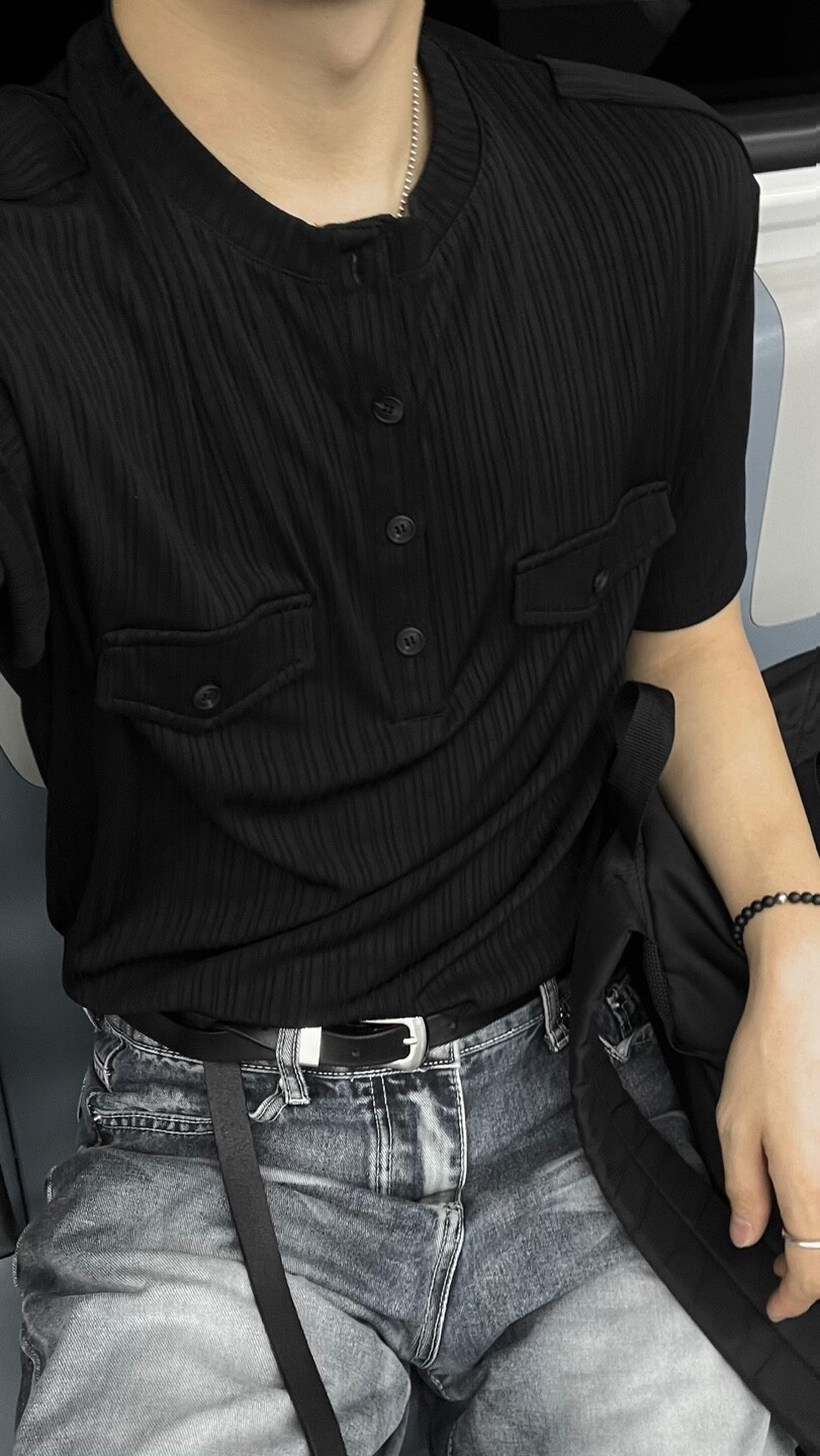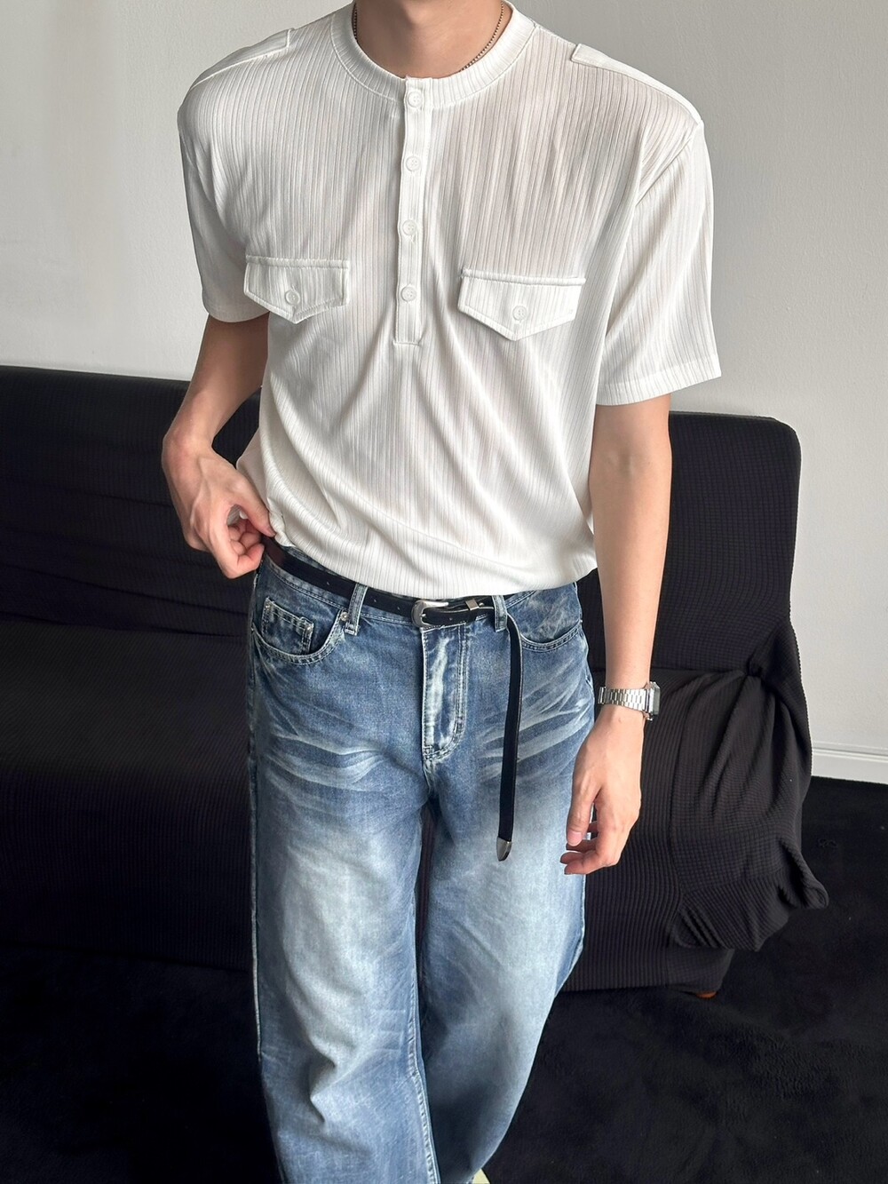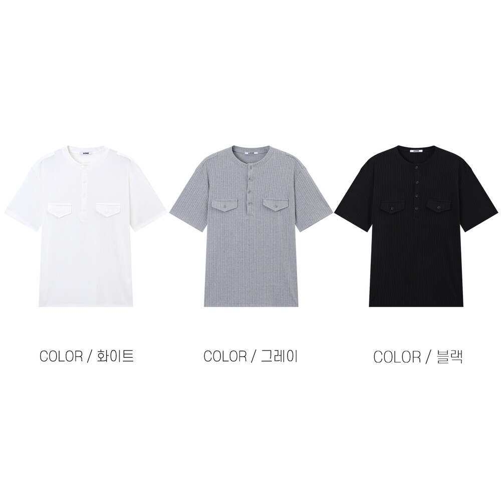 플리츠 디테일 헨리넥 티셔츠 (3color)