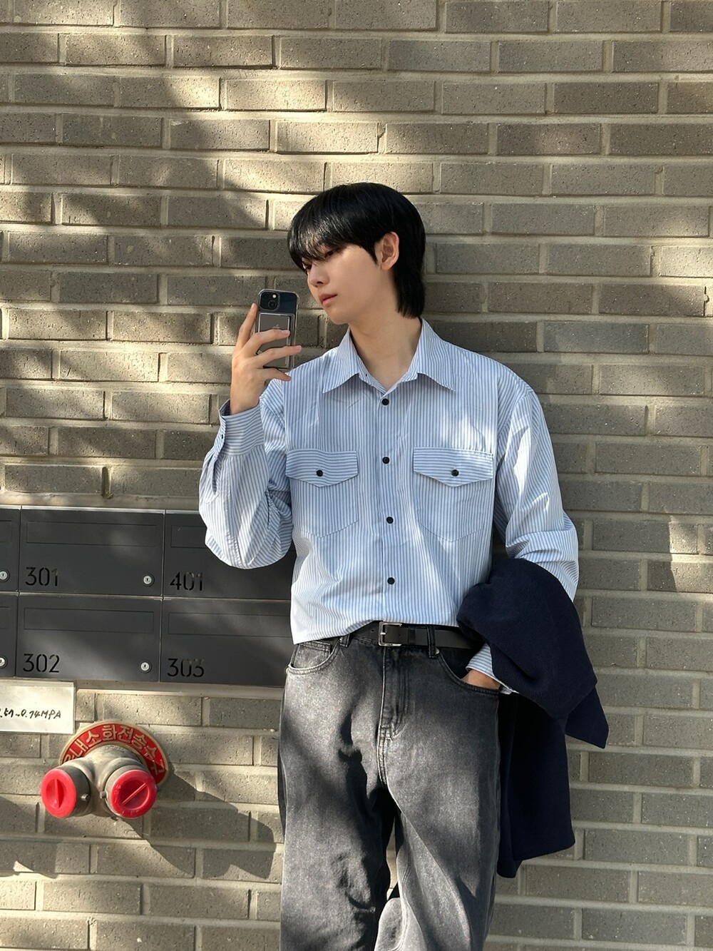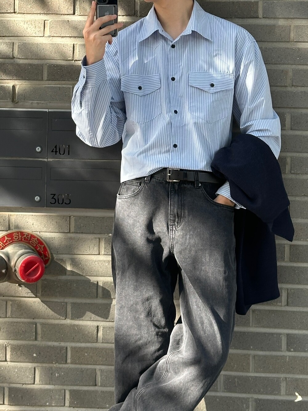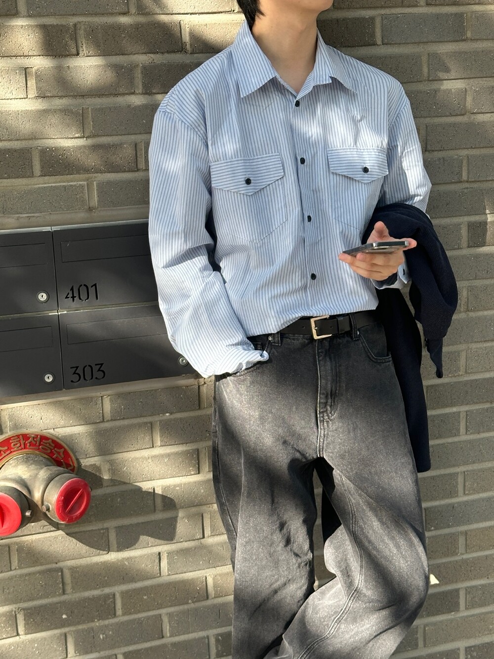 자켓같은 실루엣의 전면부 포켓이 인상적인 셔츠입니다 :)