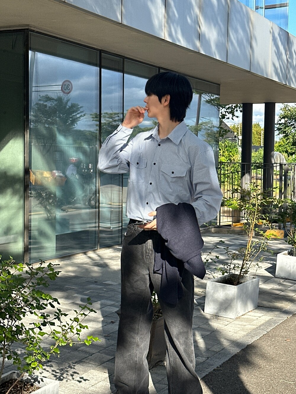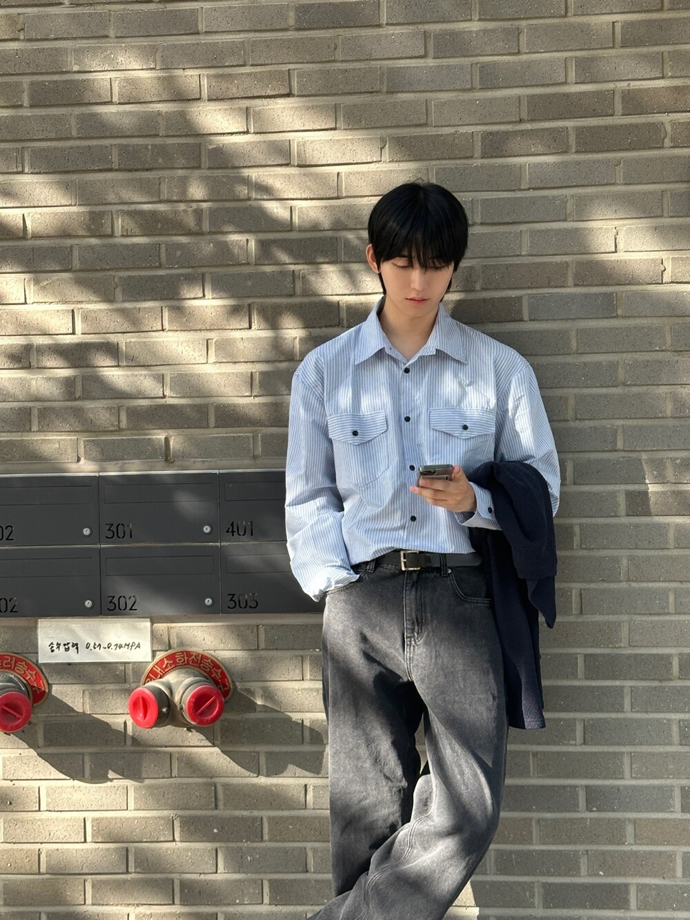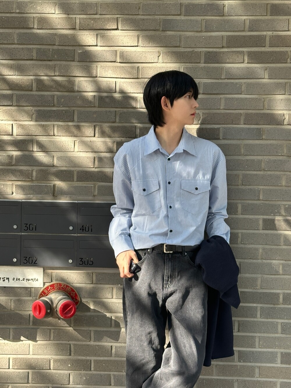 자켓같은 실루엣의 전면부 포켓이 인상적인 셔츠입니다 :)