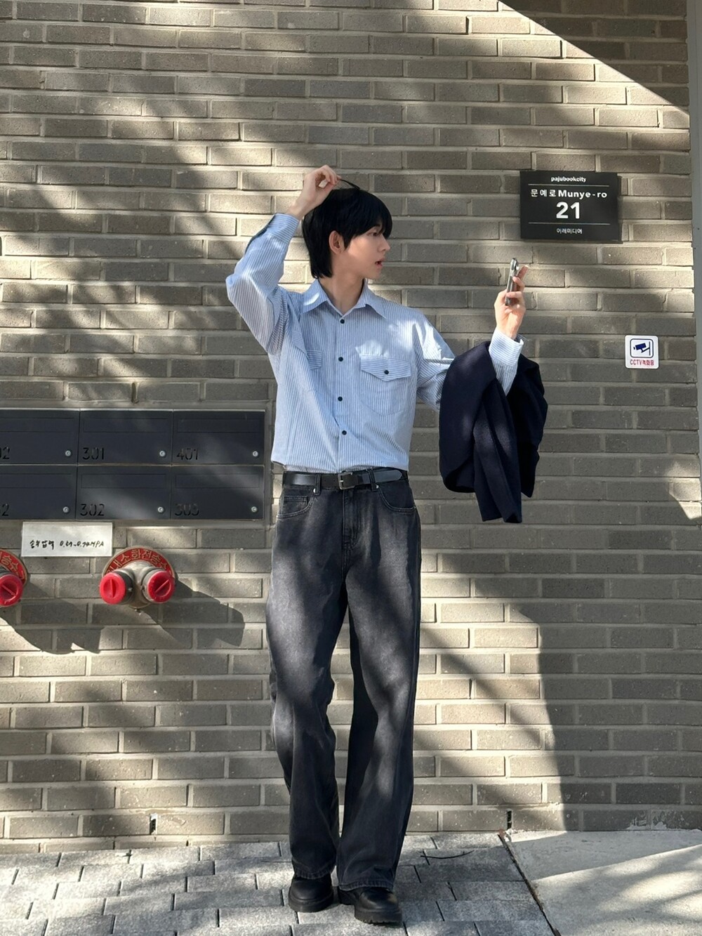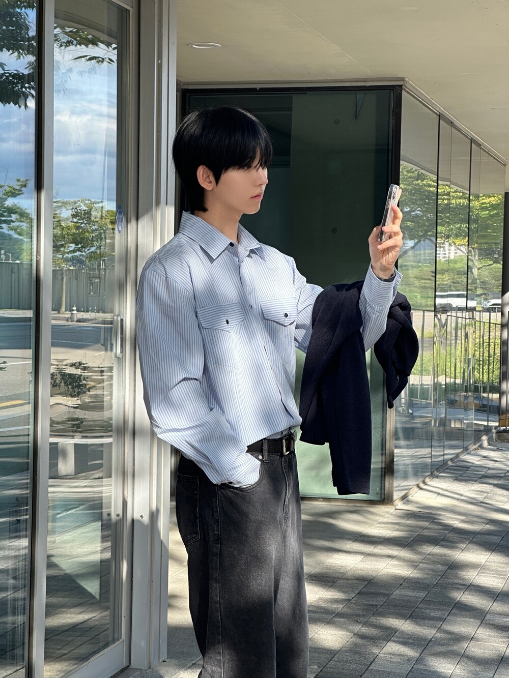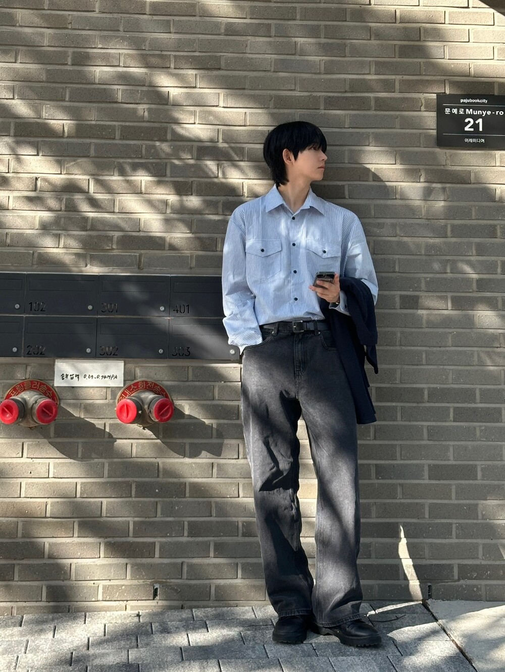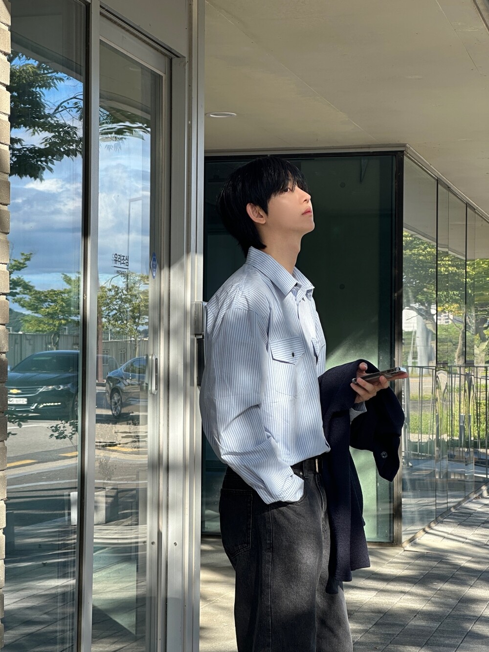 멋스럽게 바지 안에 넣고 깔끔하게 입어도 정말 예쁘지만 의외로 전면부 자켓같은 무드 덕에
