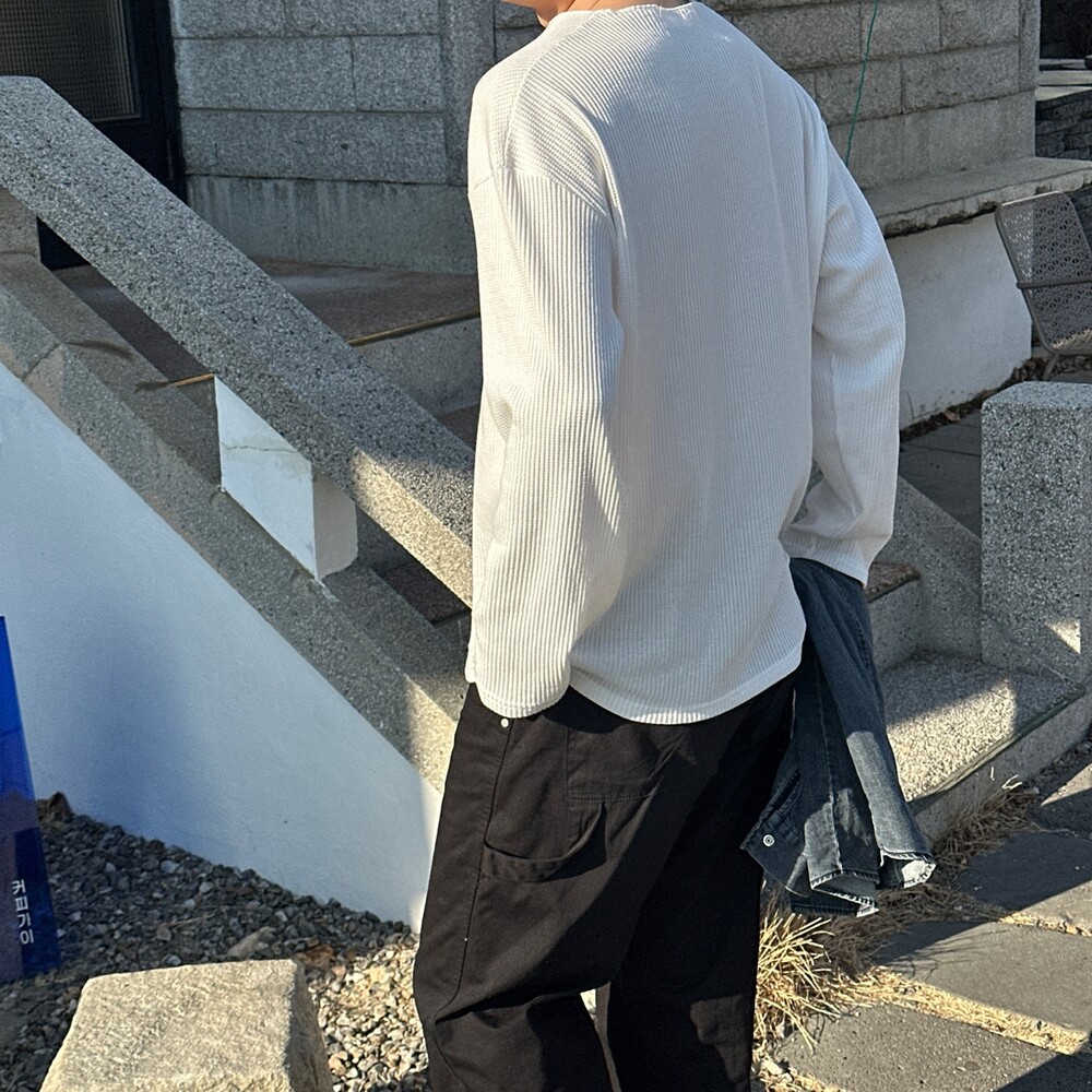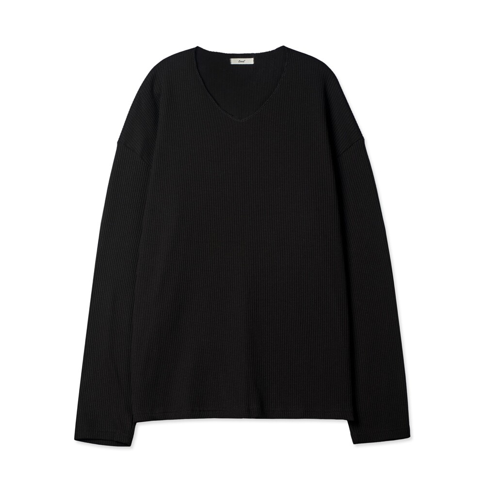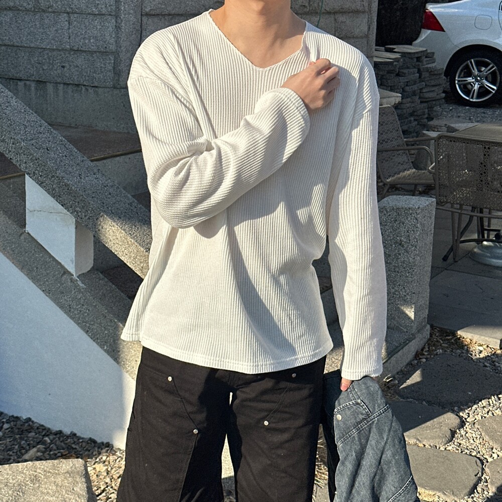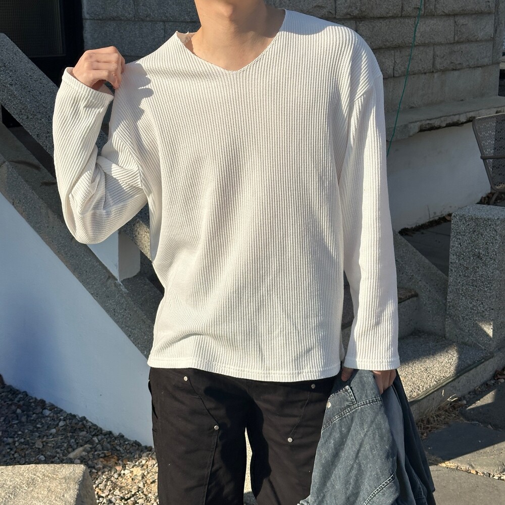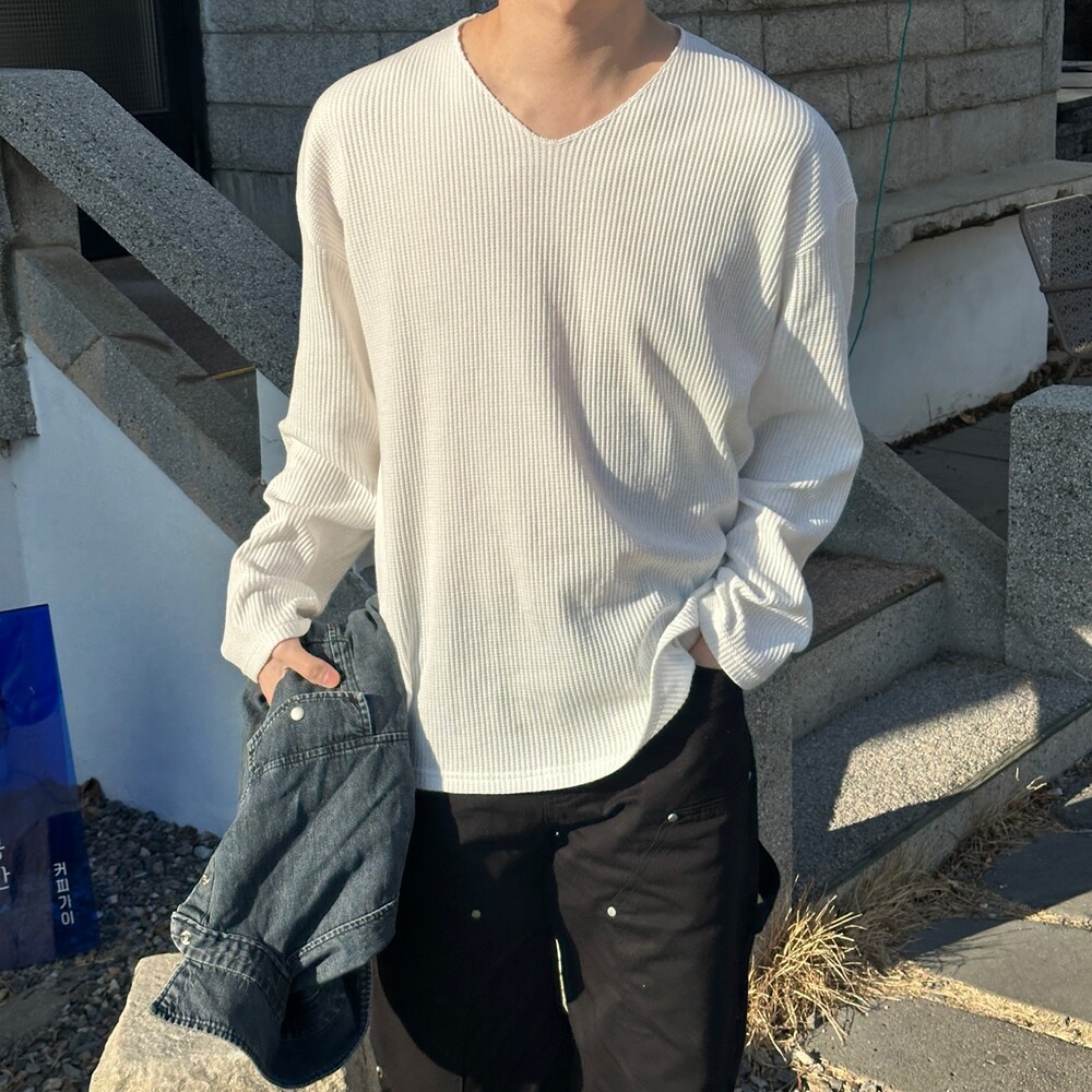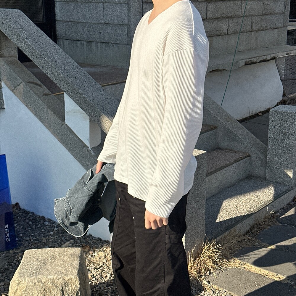 와플 루즈 핏 브이넥 긴팔 (3color)