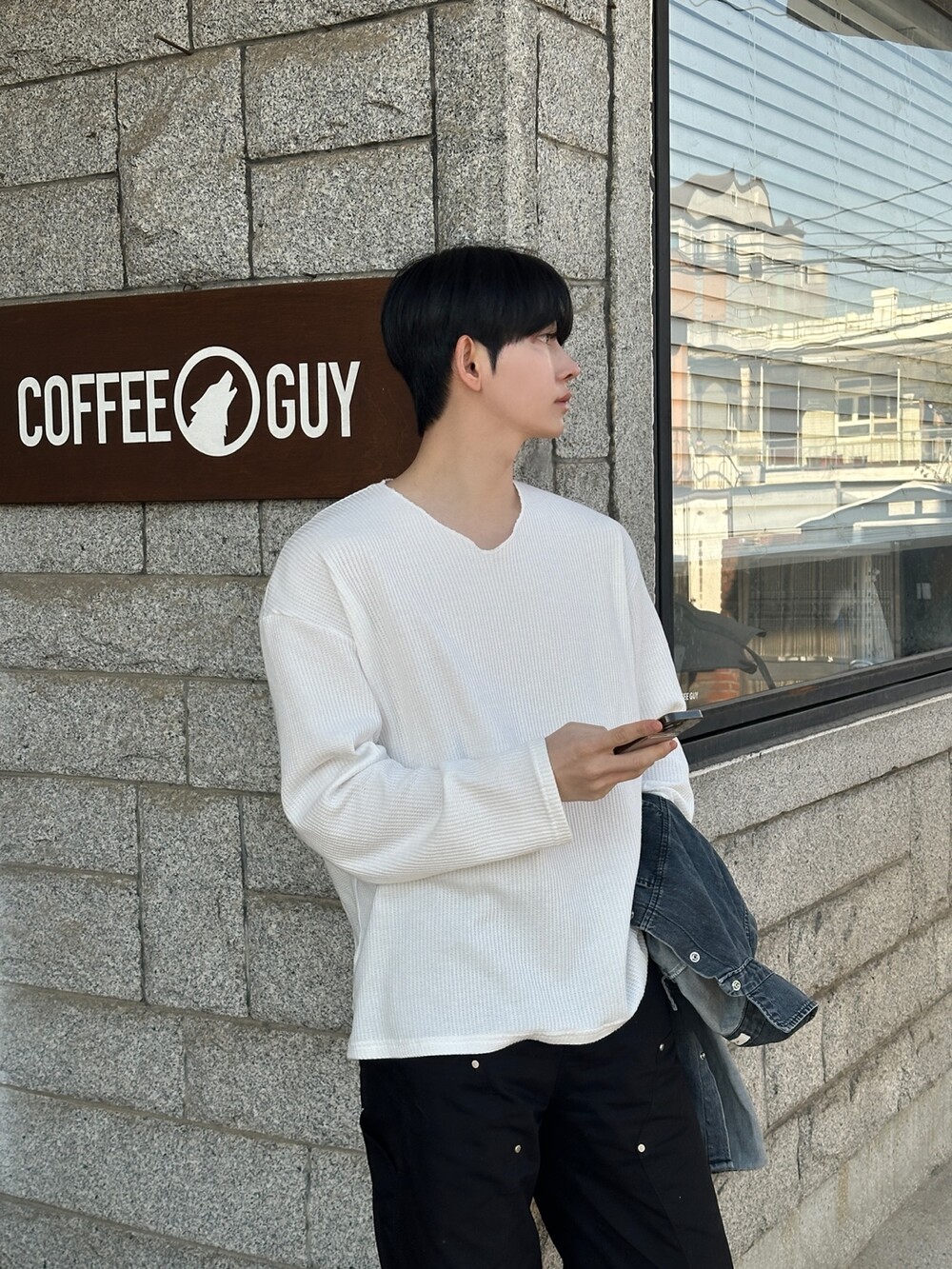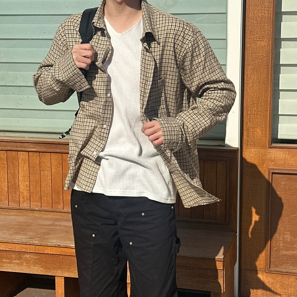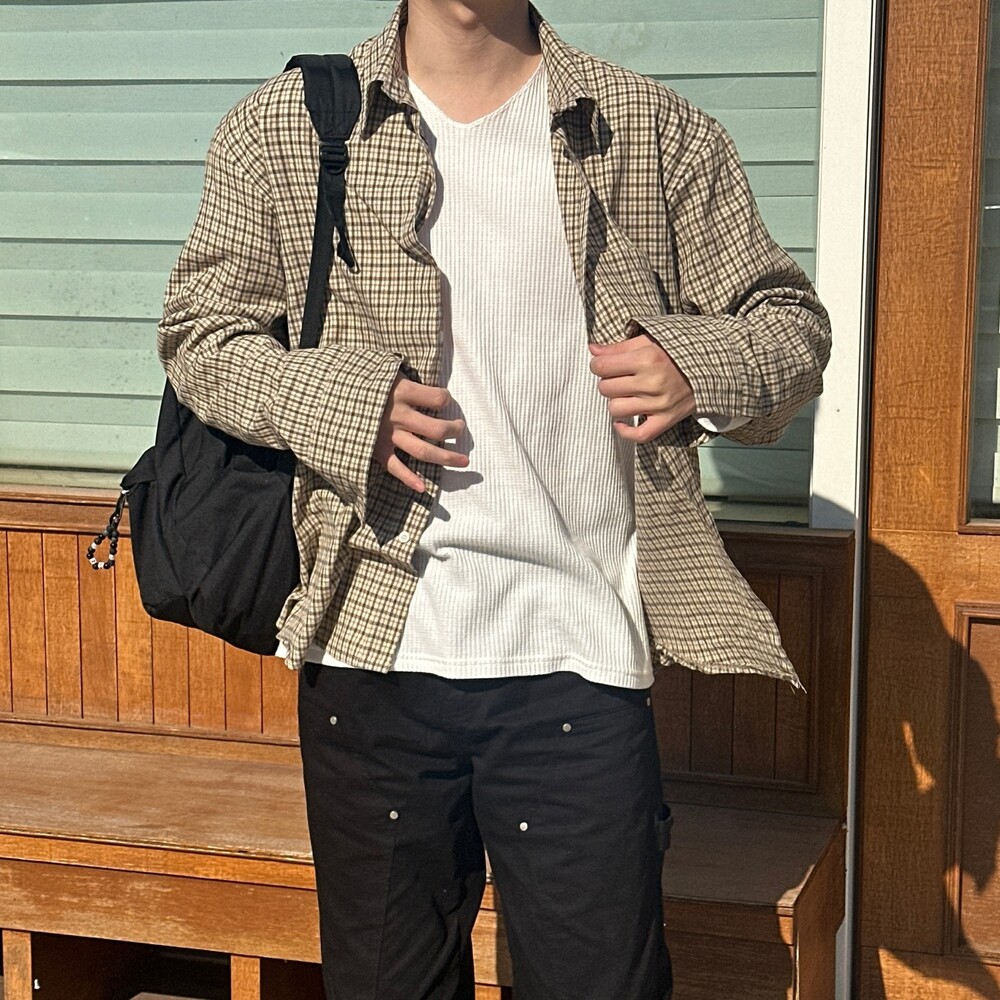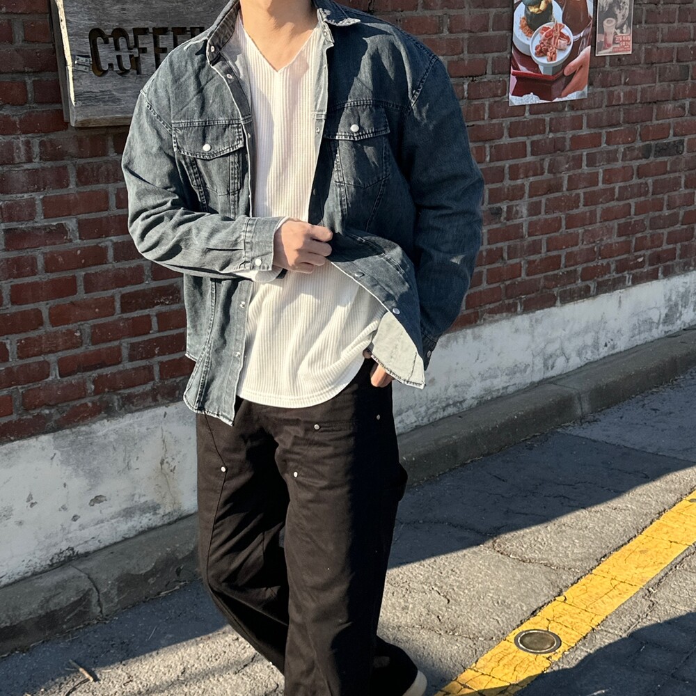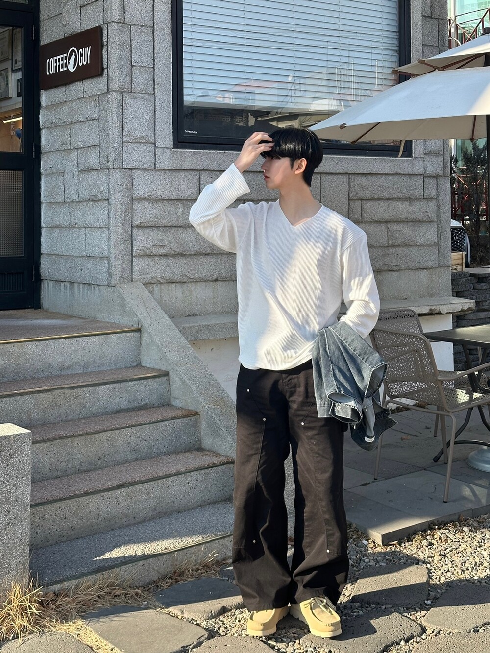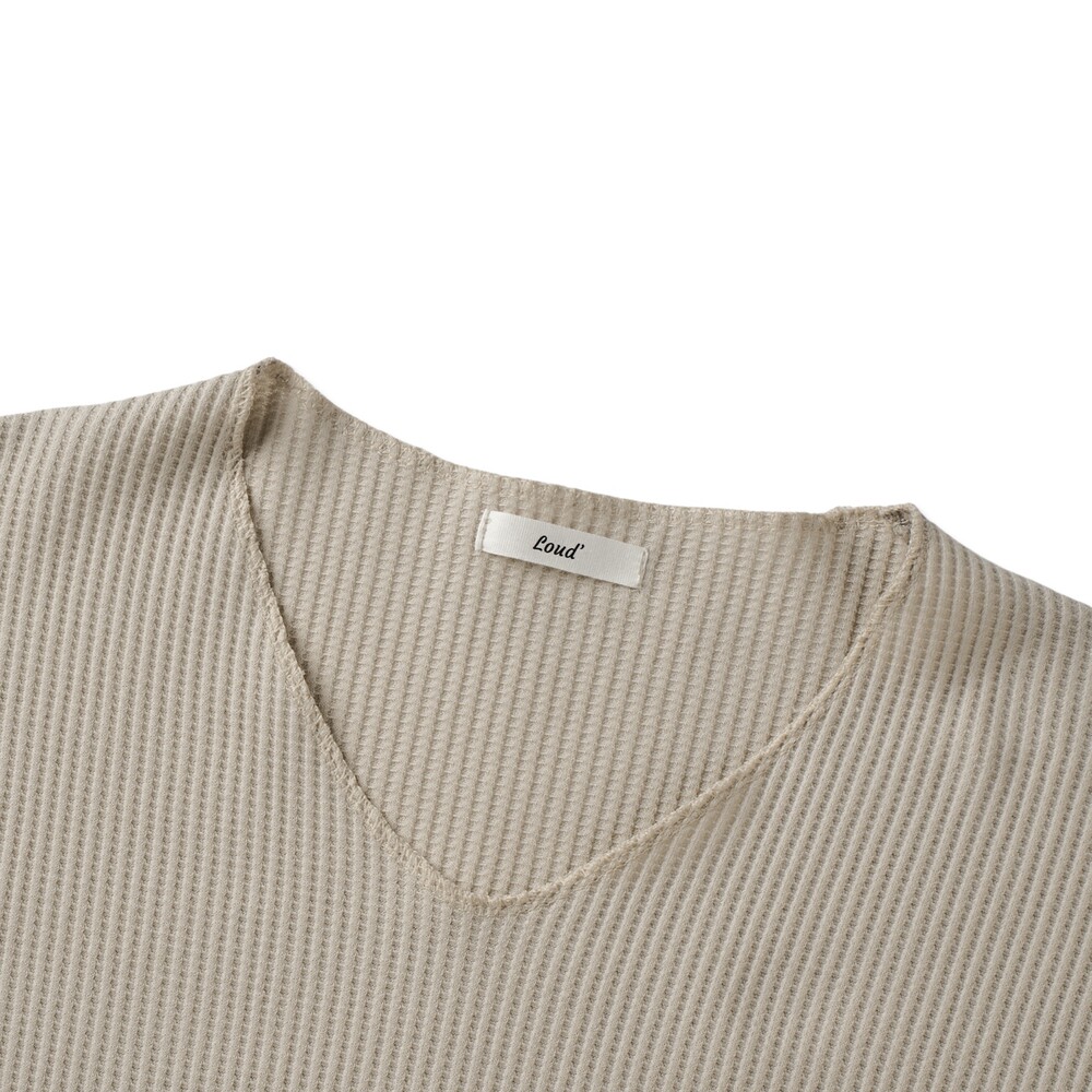와플 루즈 핏 브이넥 긴팔 (3color)