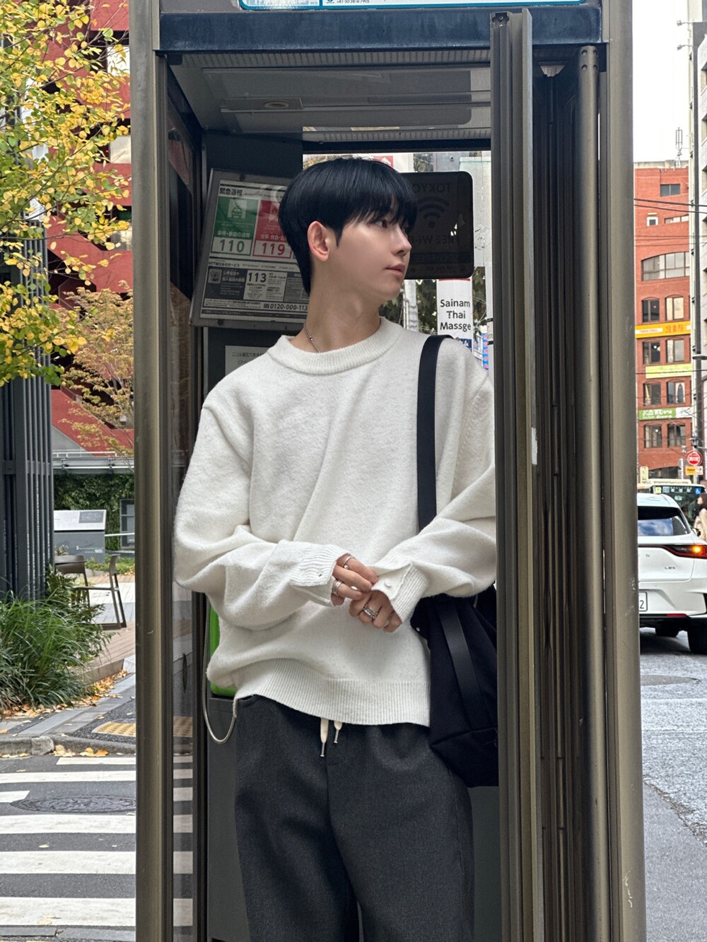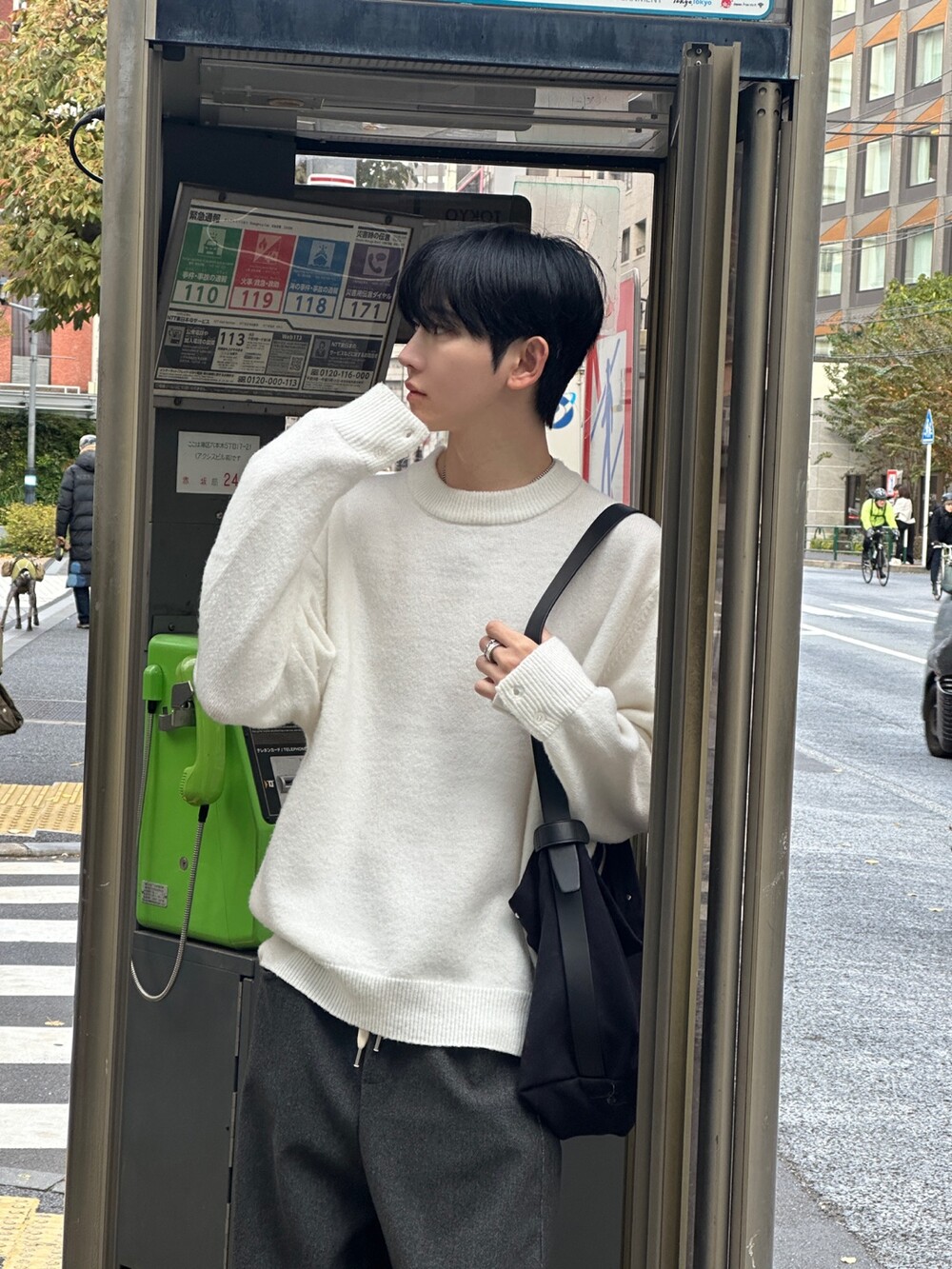 눈으로 봐도 부드러워 보이는 깔끔한 실루엣의 따듯한 니트입니다