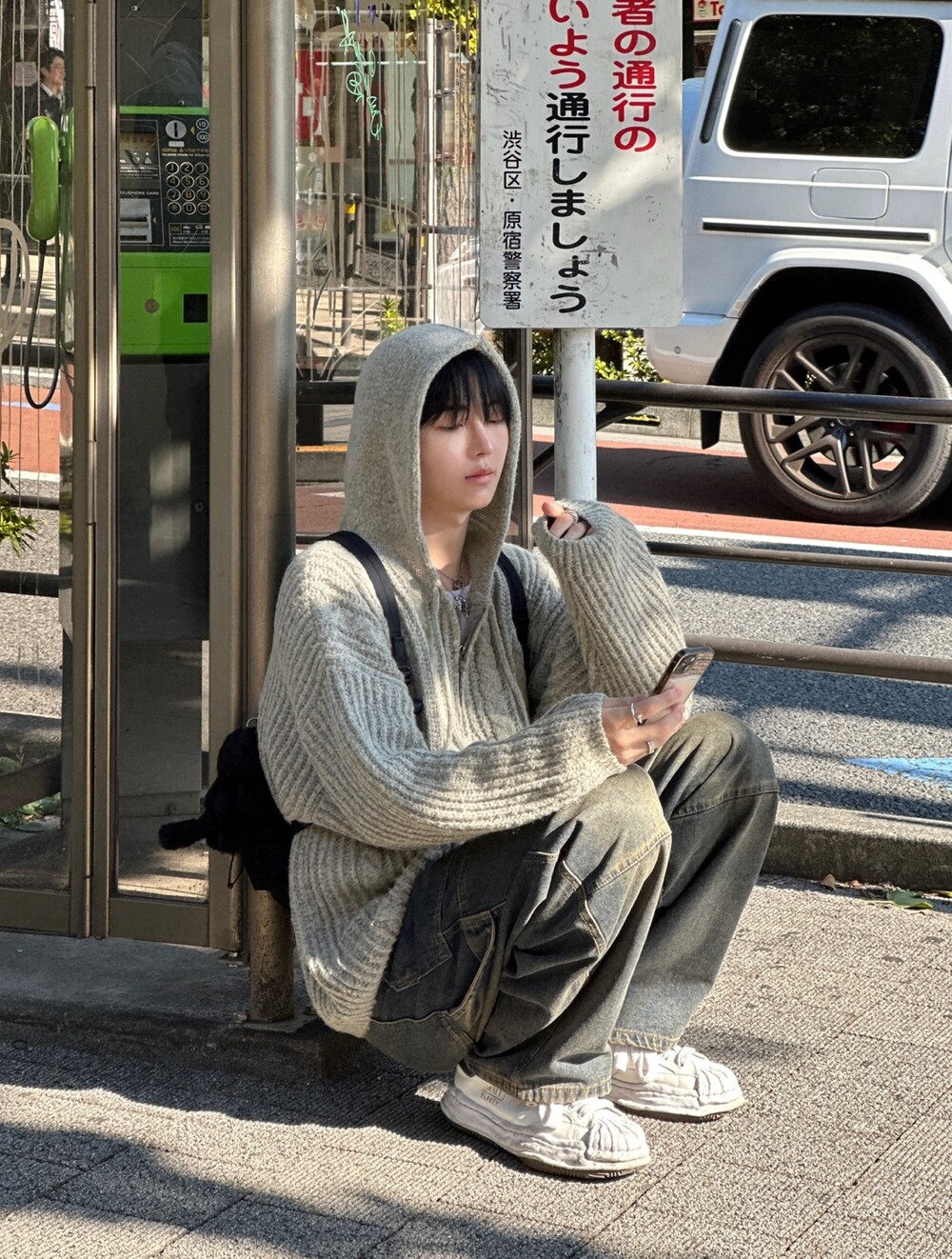 후드 +반집업니트로 제작 된 니트입니다 :)