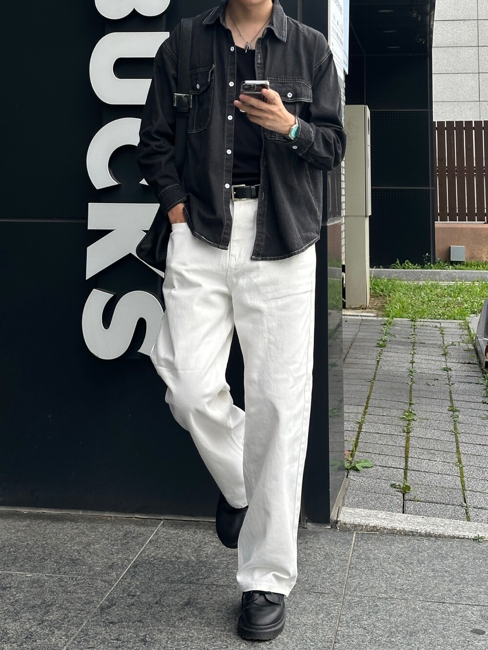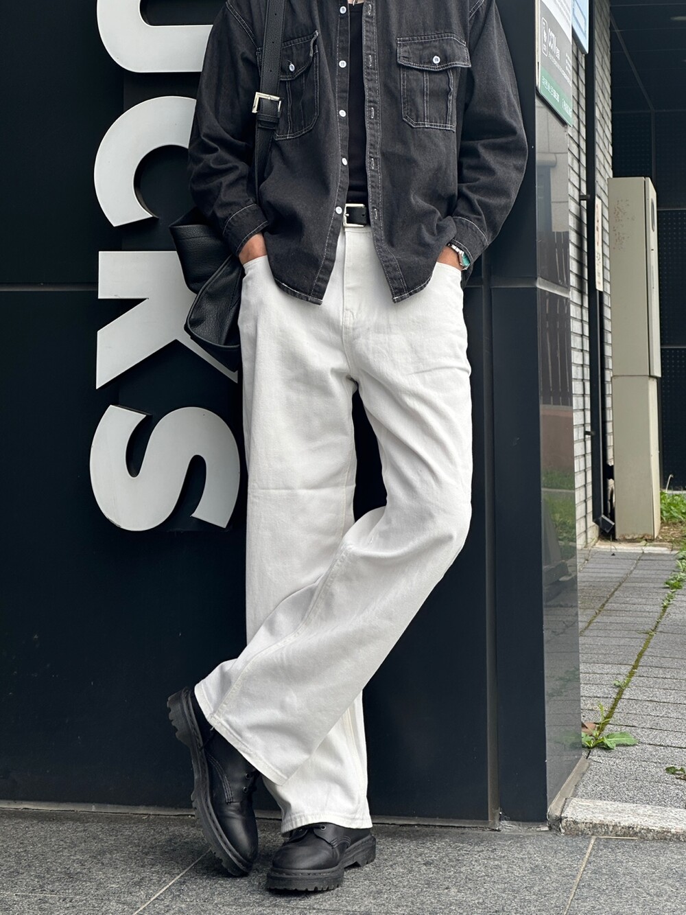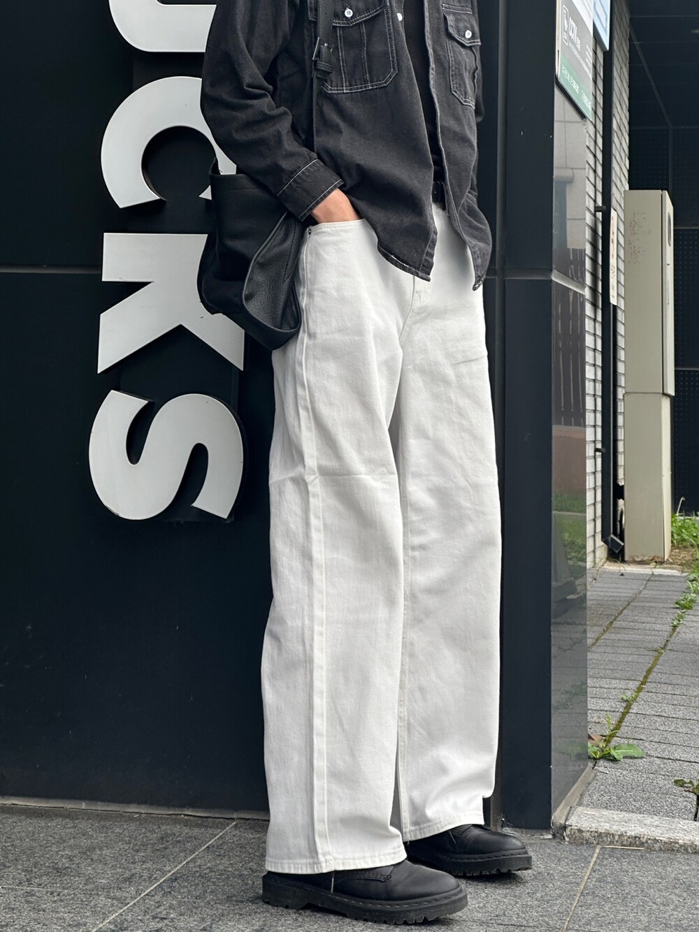 아래로 쭉 떨어지는 와이드한 실루엣으로 어디에나 착용하기 좋습니다