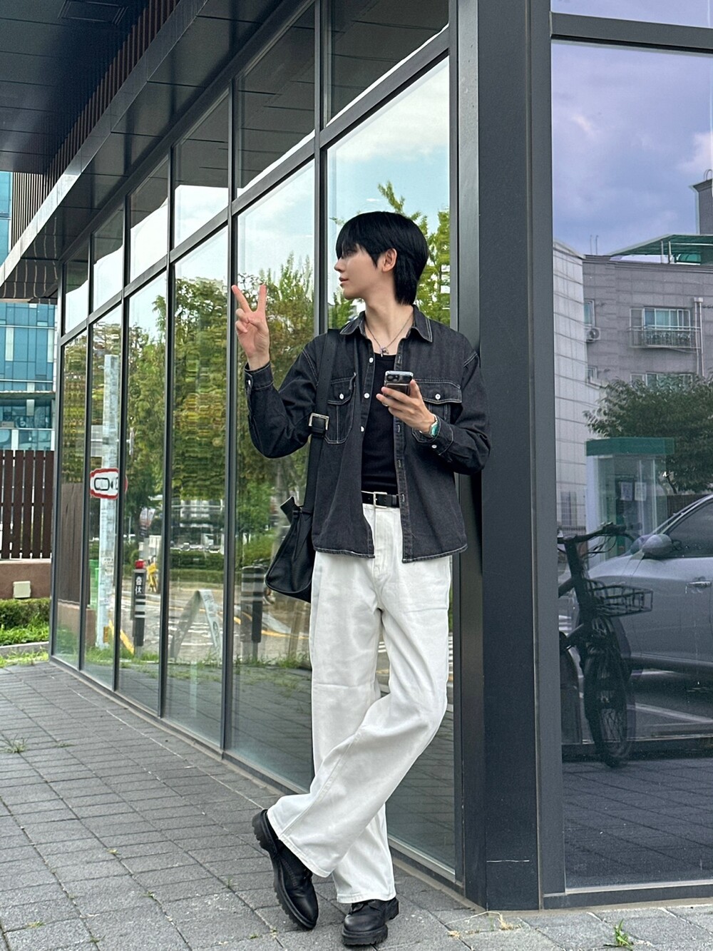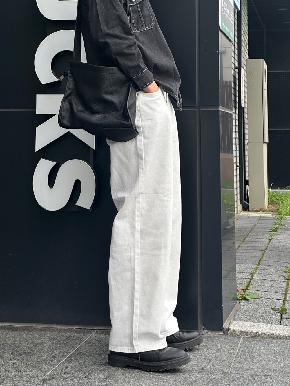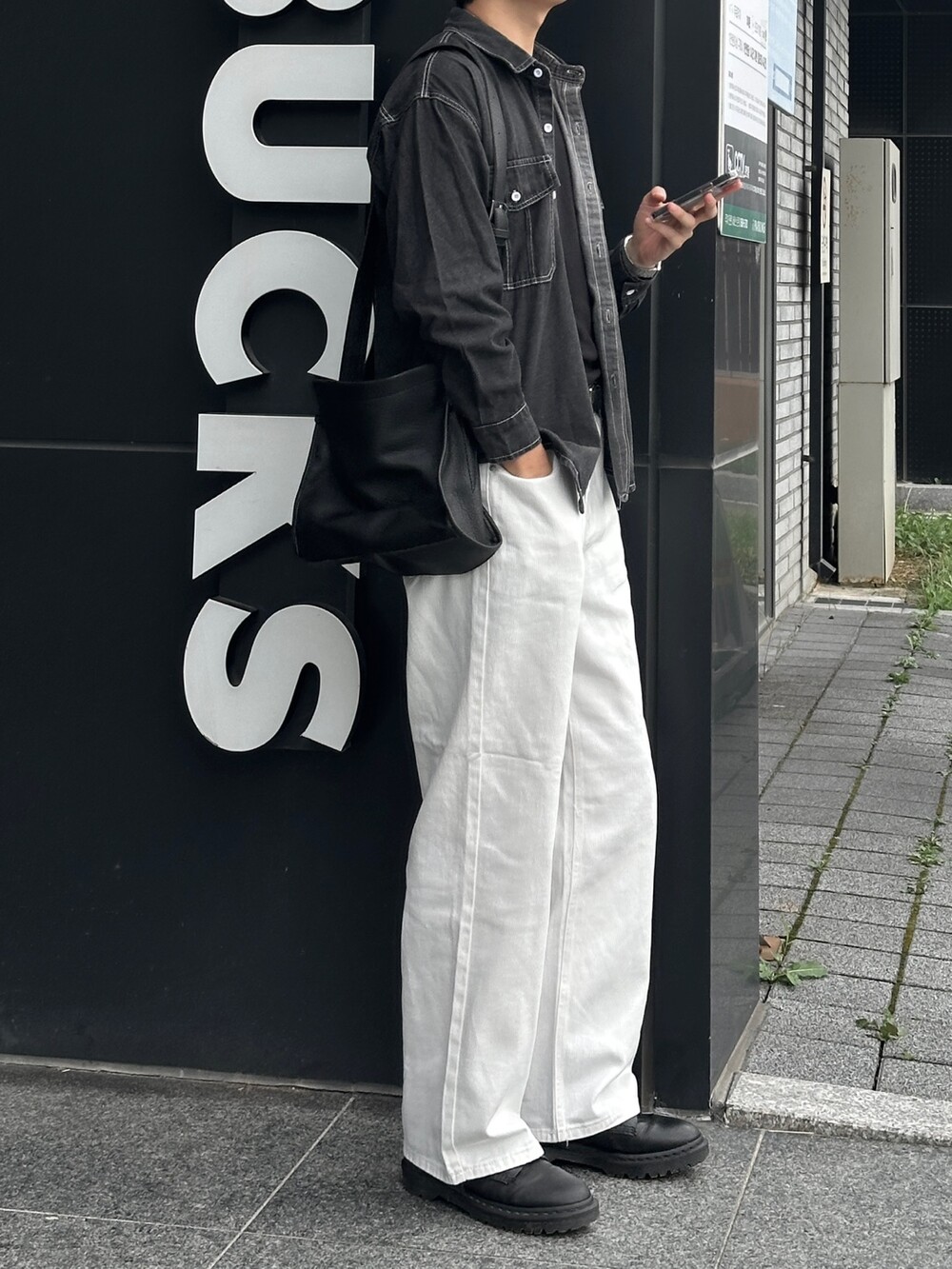 아래로 쭉 떨어지는 와이드한 실루엣으로 어디에나 착용하기 좋습니다
