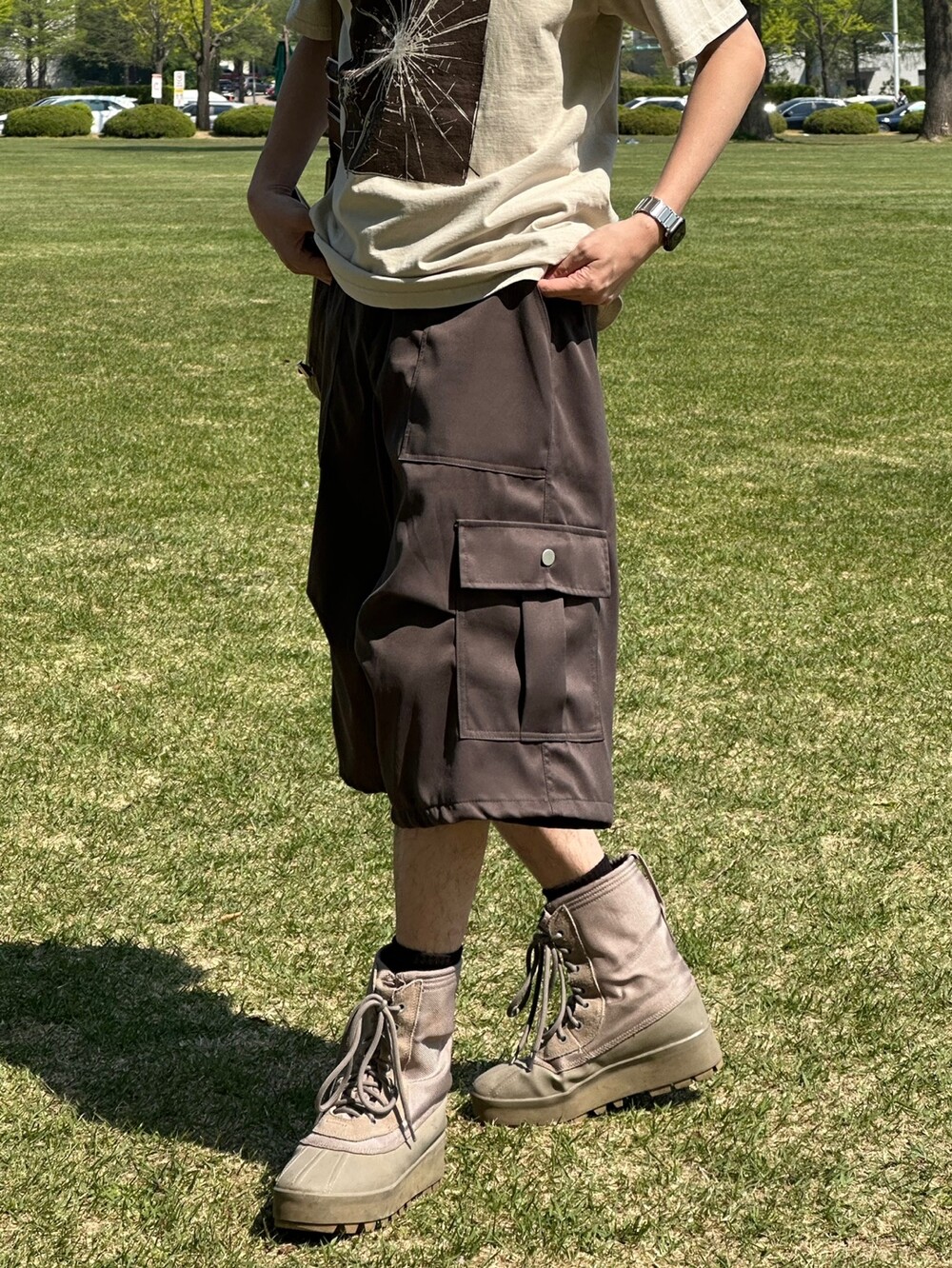 카고버뮤다 팬츠에 여름에 착용하기 좋은 재질로 만들어졌습니다 !