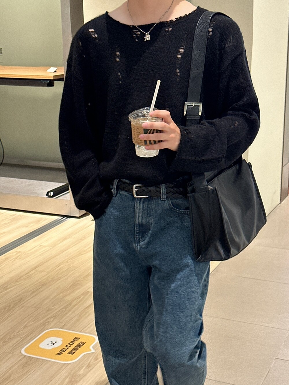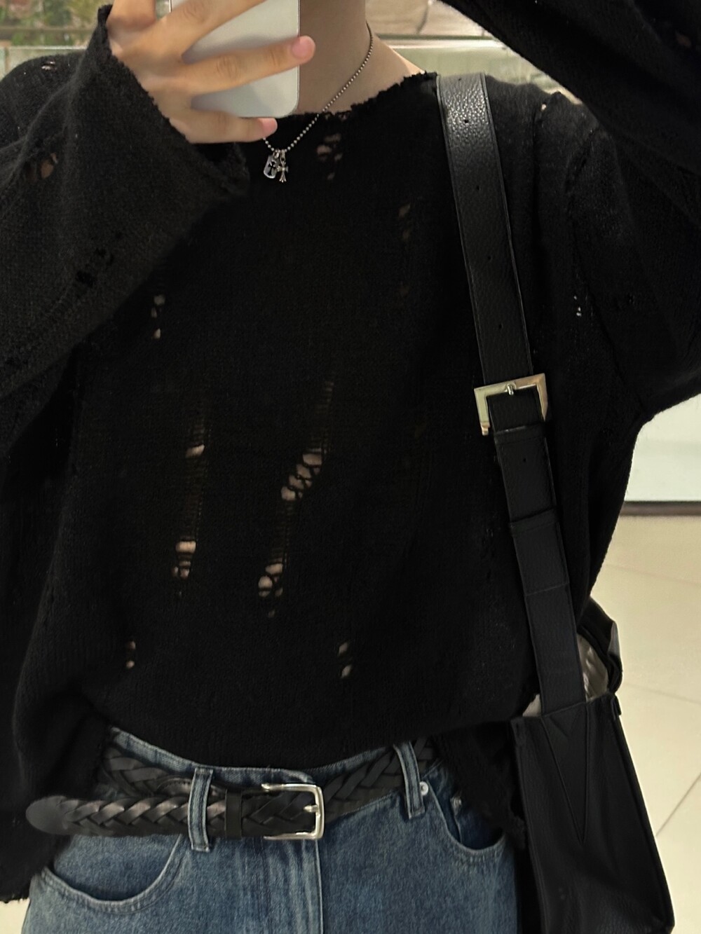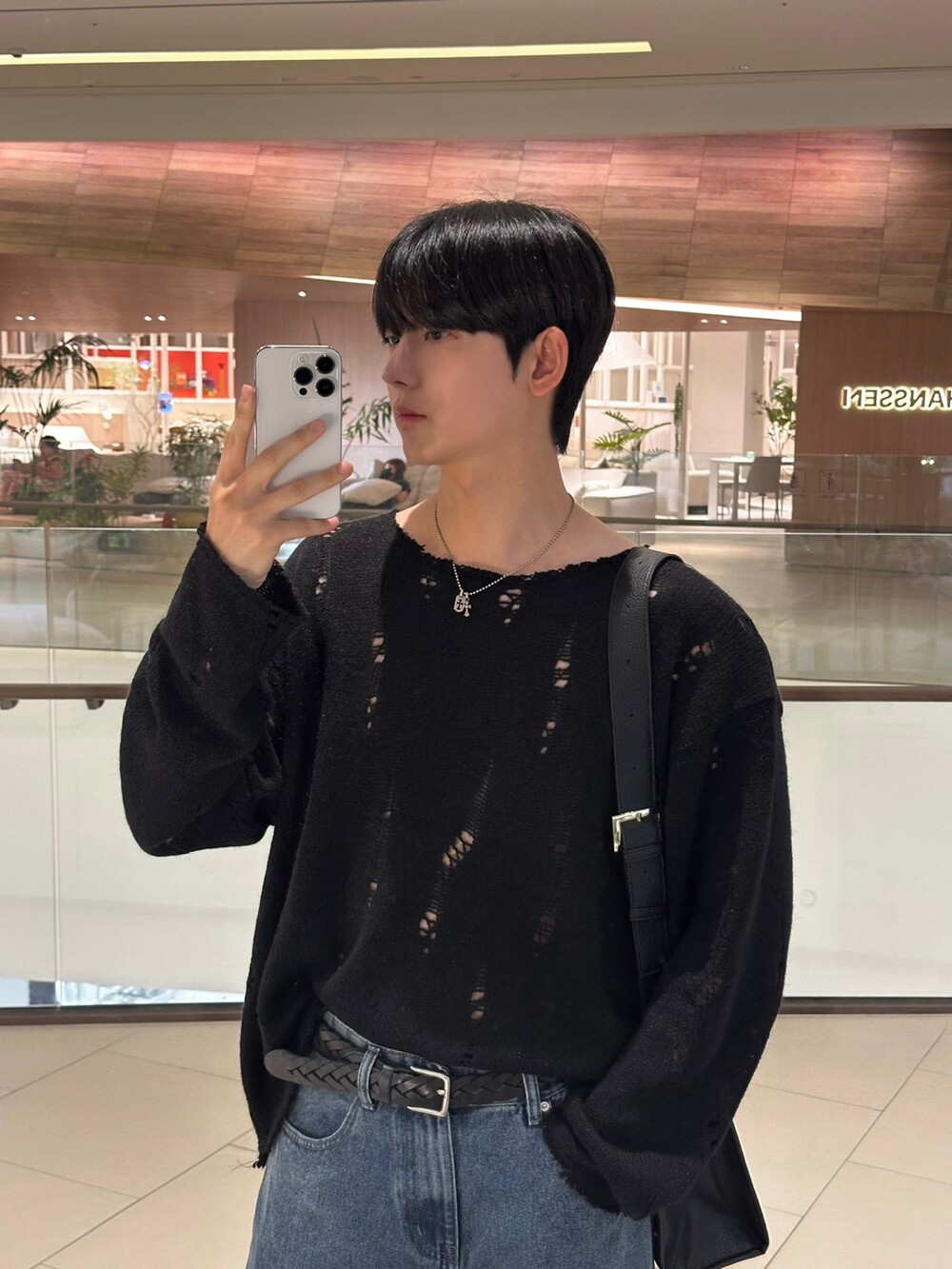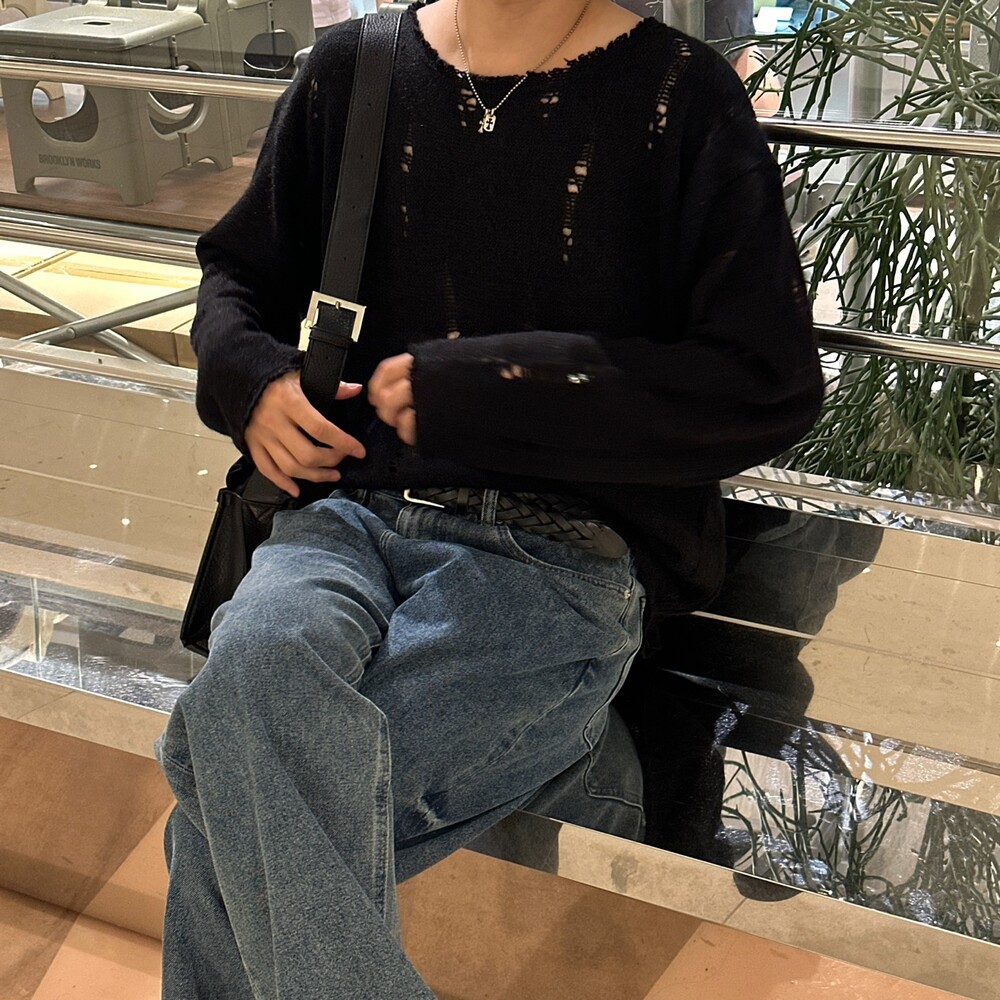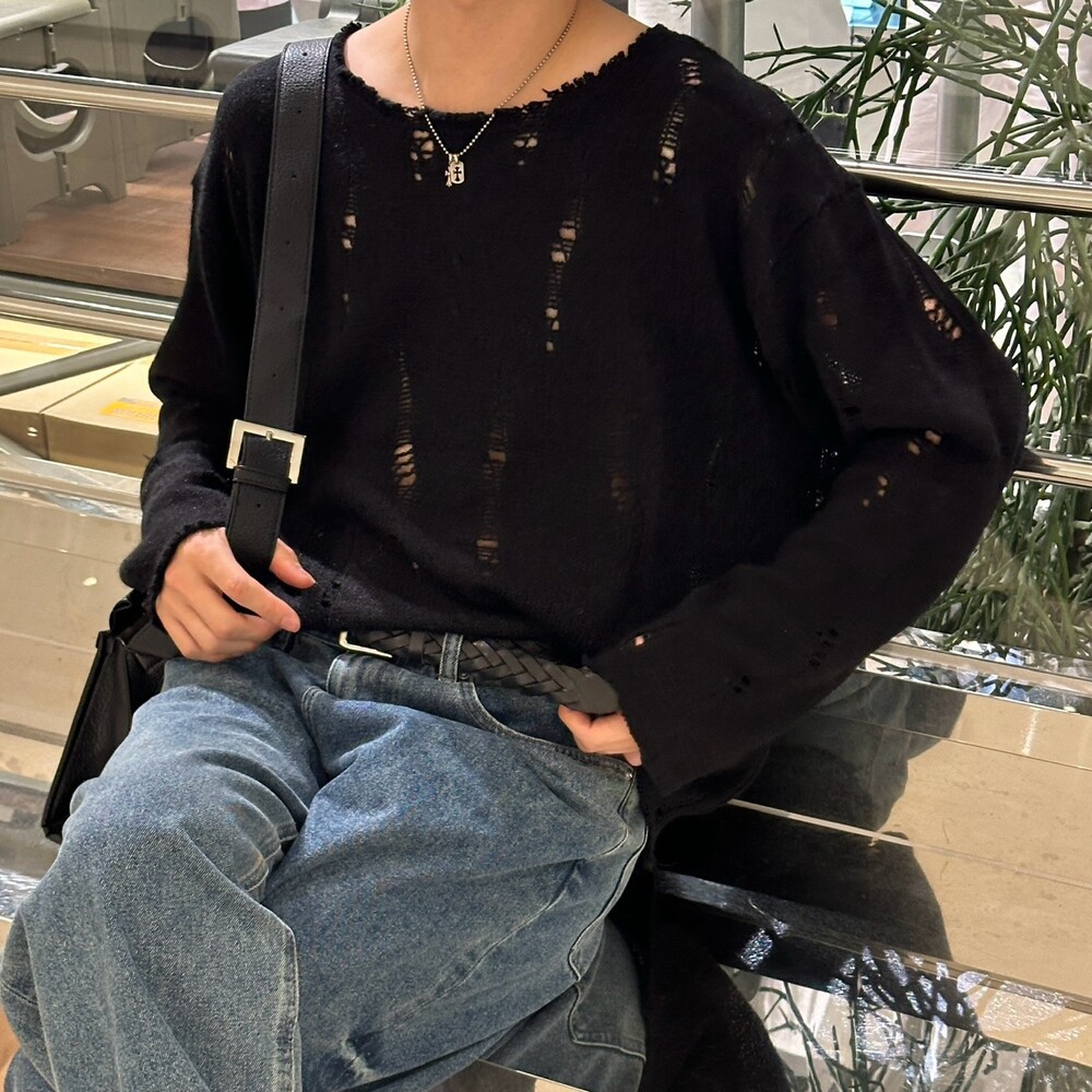 목 라인까지 데미지 디테일이 들어가 멋스러운 니트입니다