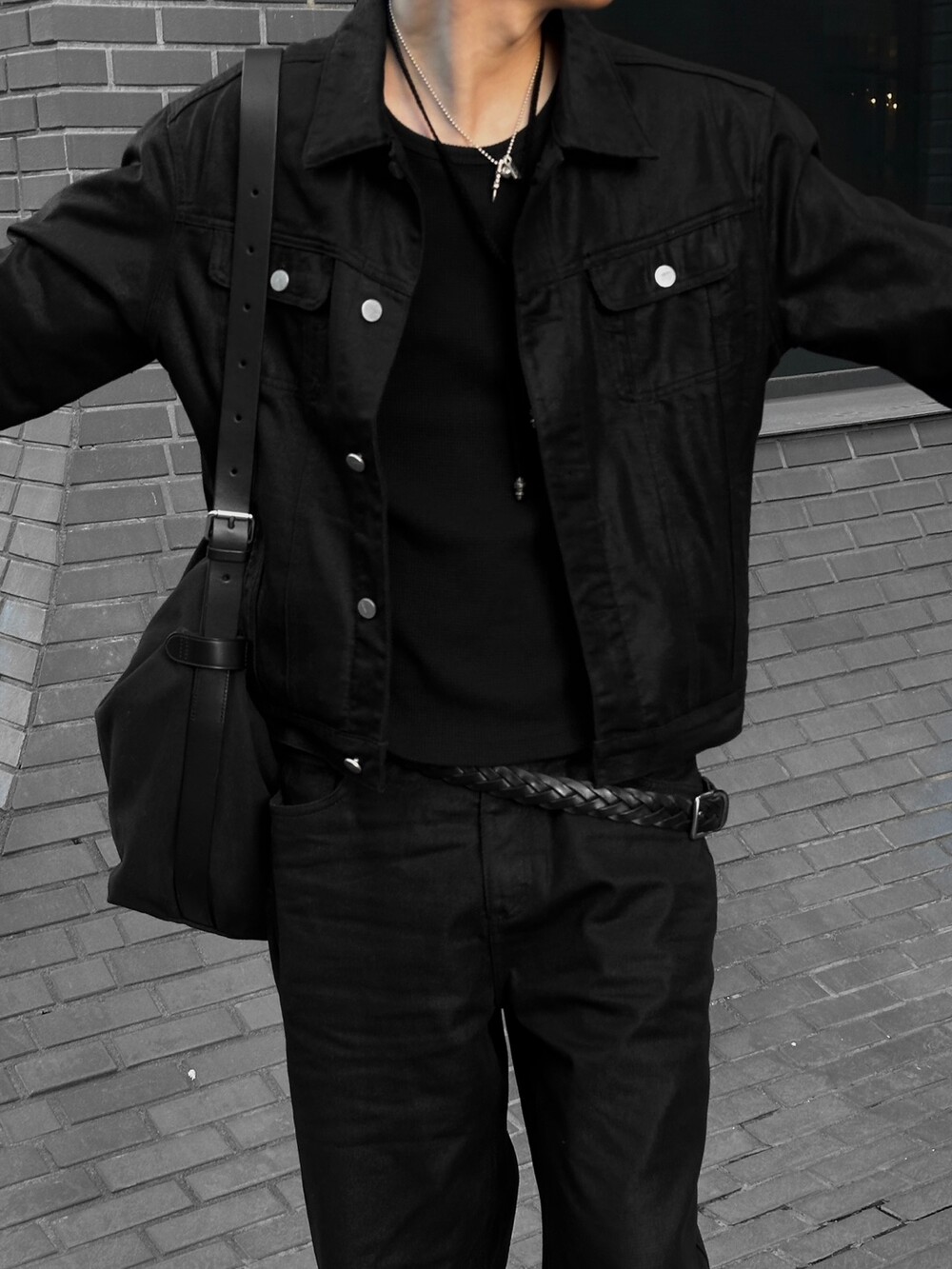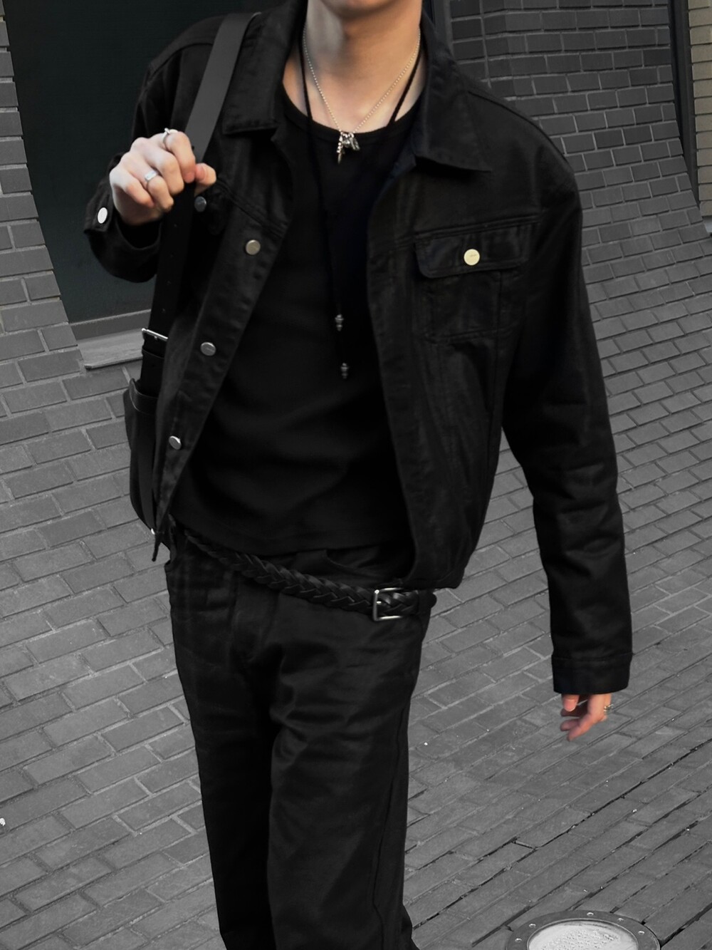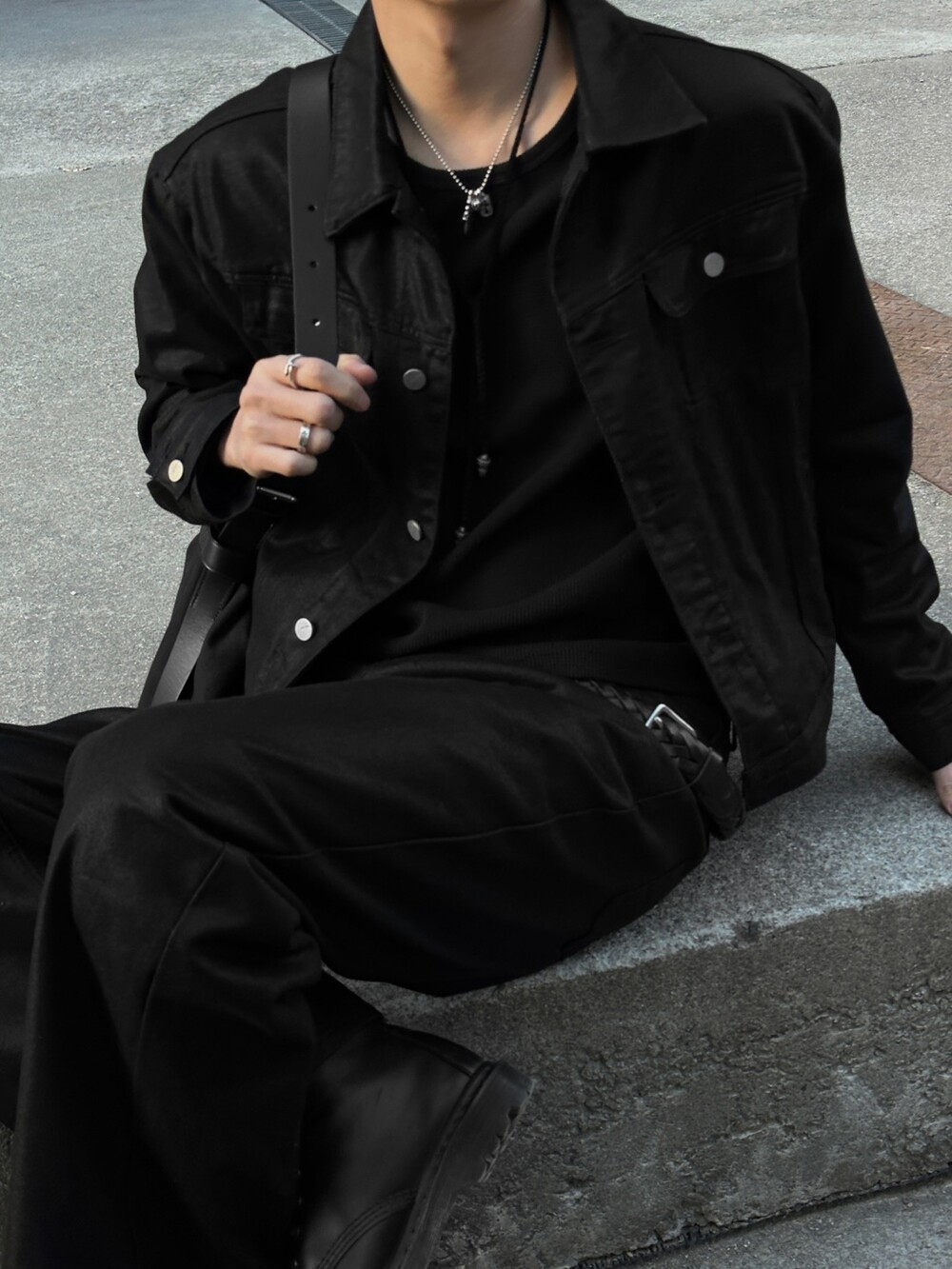 깔끔한 올 블랙 셋업으로 착용한 코팅진 셋업 입니다 :)