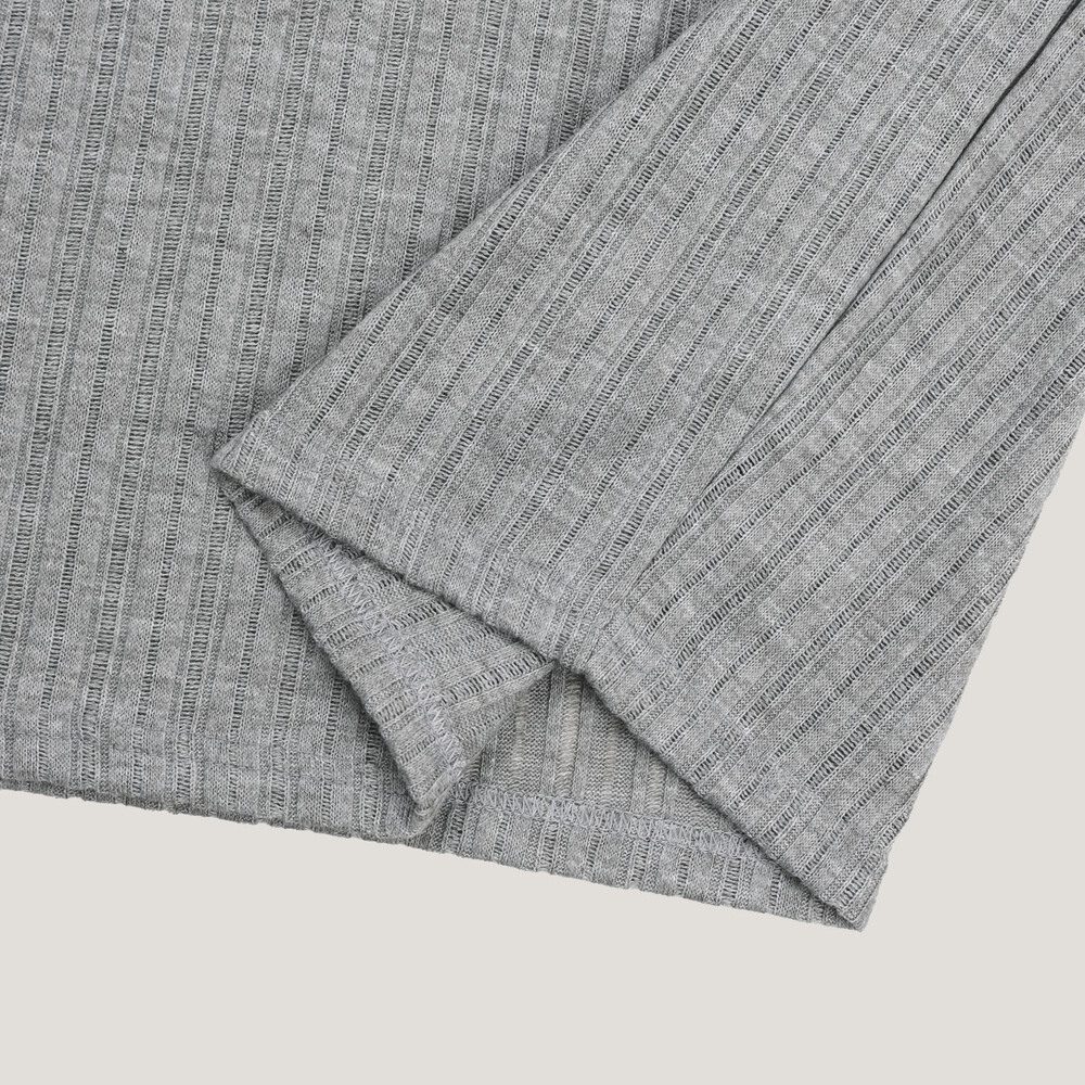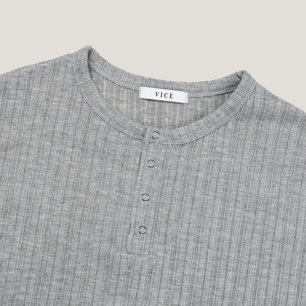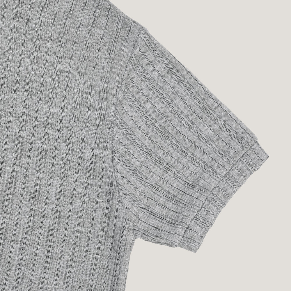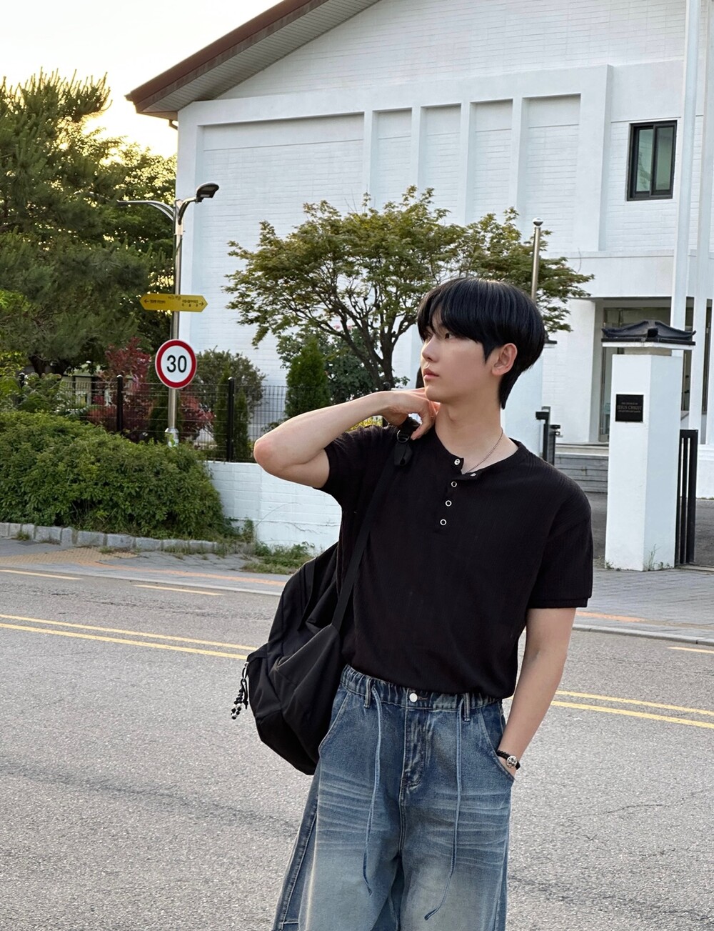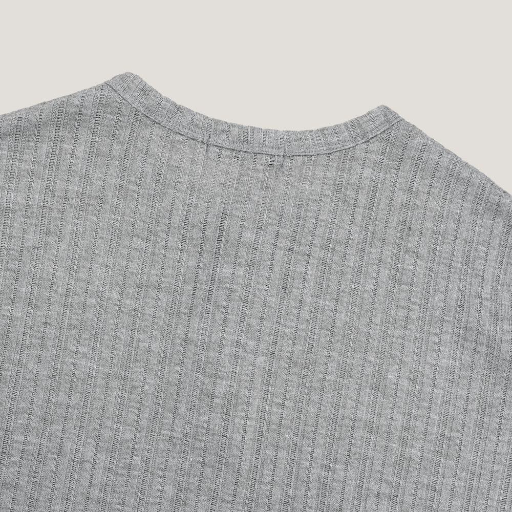 4버튼 실버 헨리넥 디테일에 사이사이 스트라이프 디테일에 바람이 송송 통풍성 좋은 티셔츠입니다 :)
