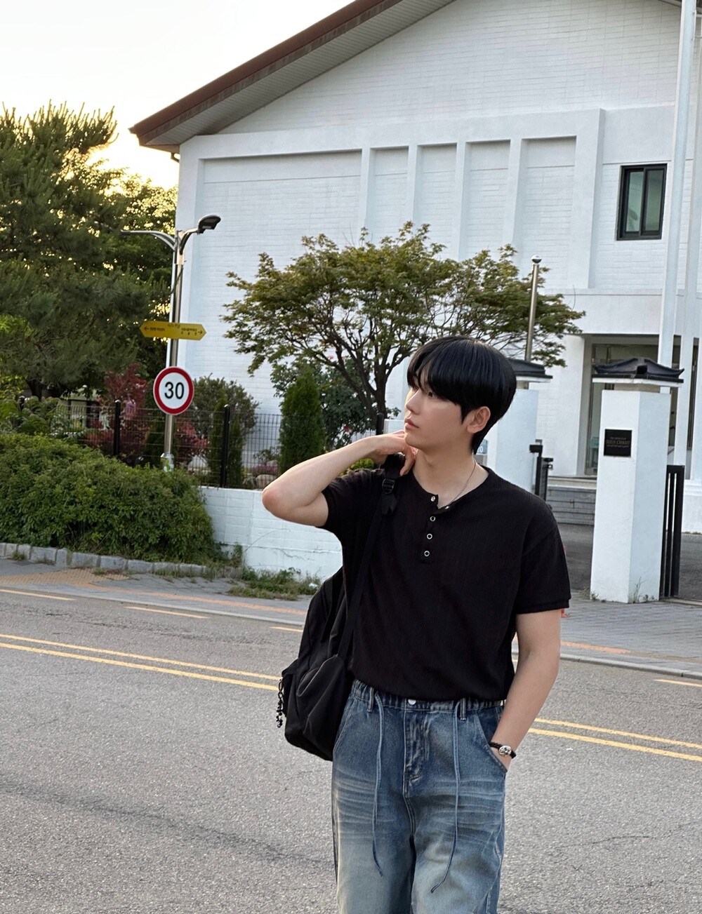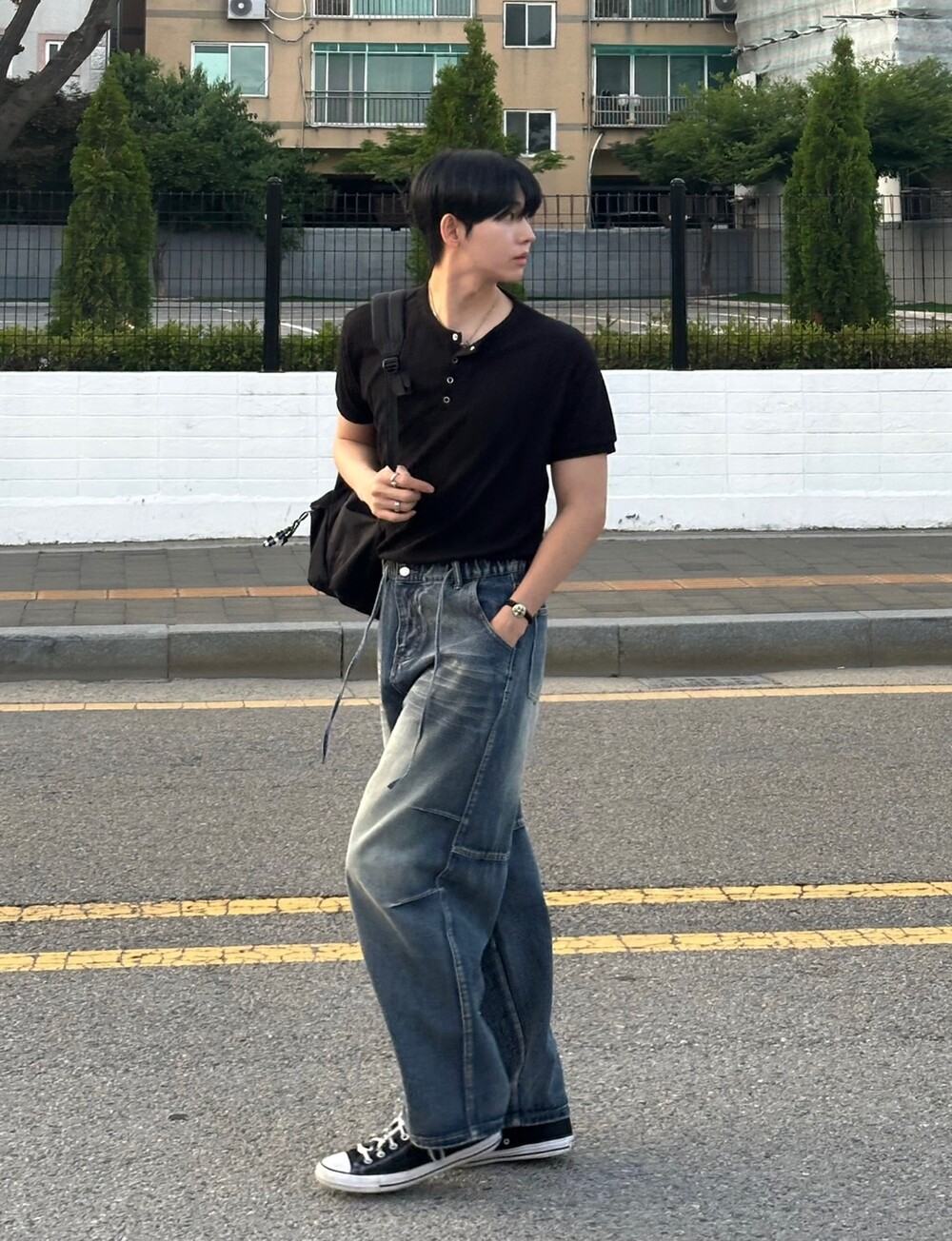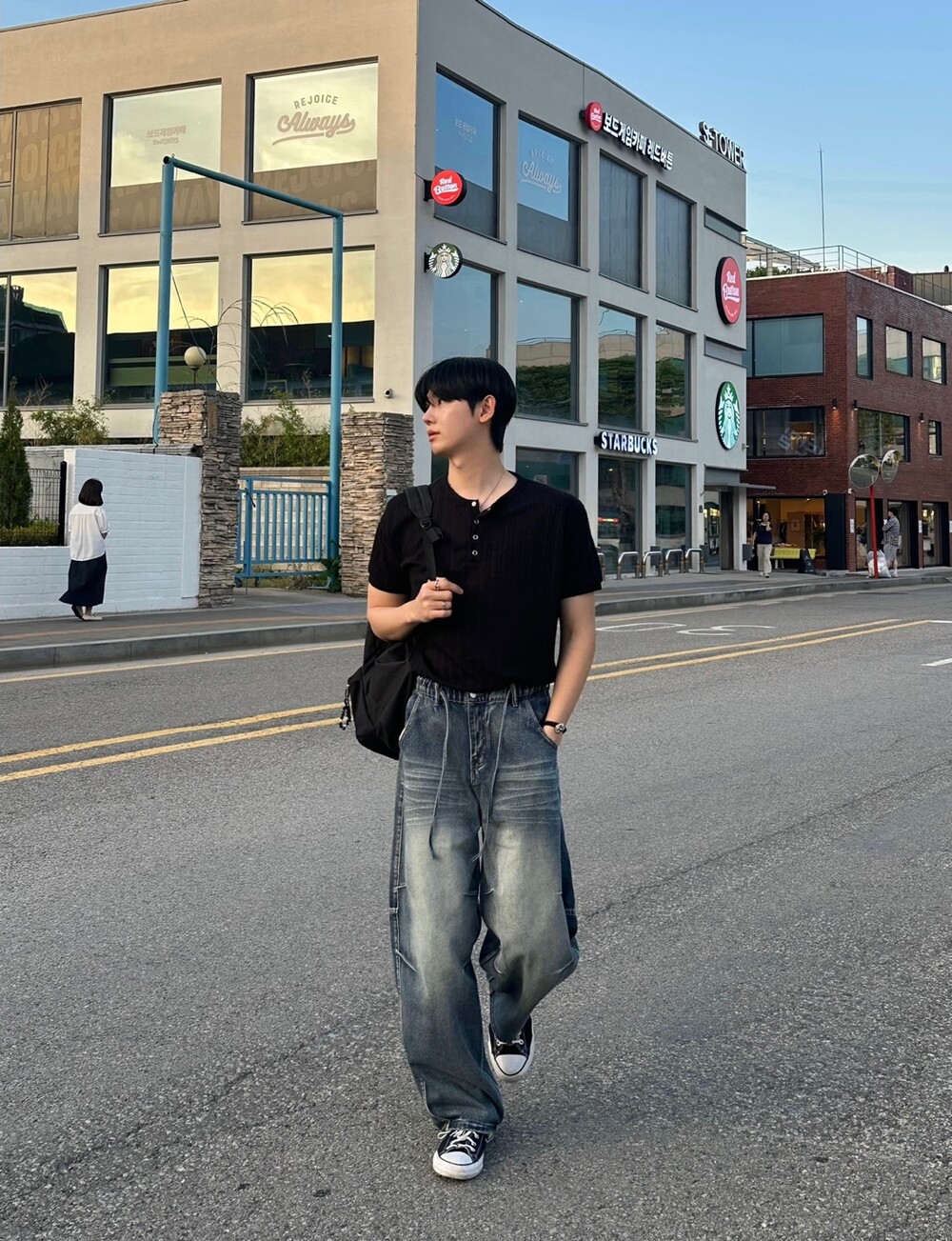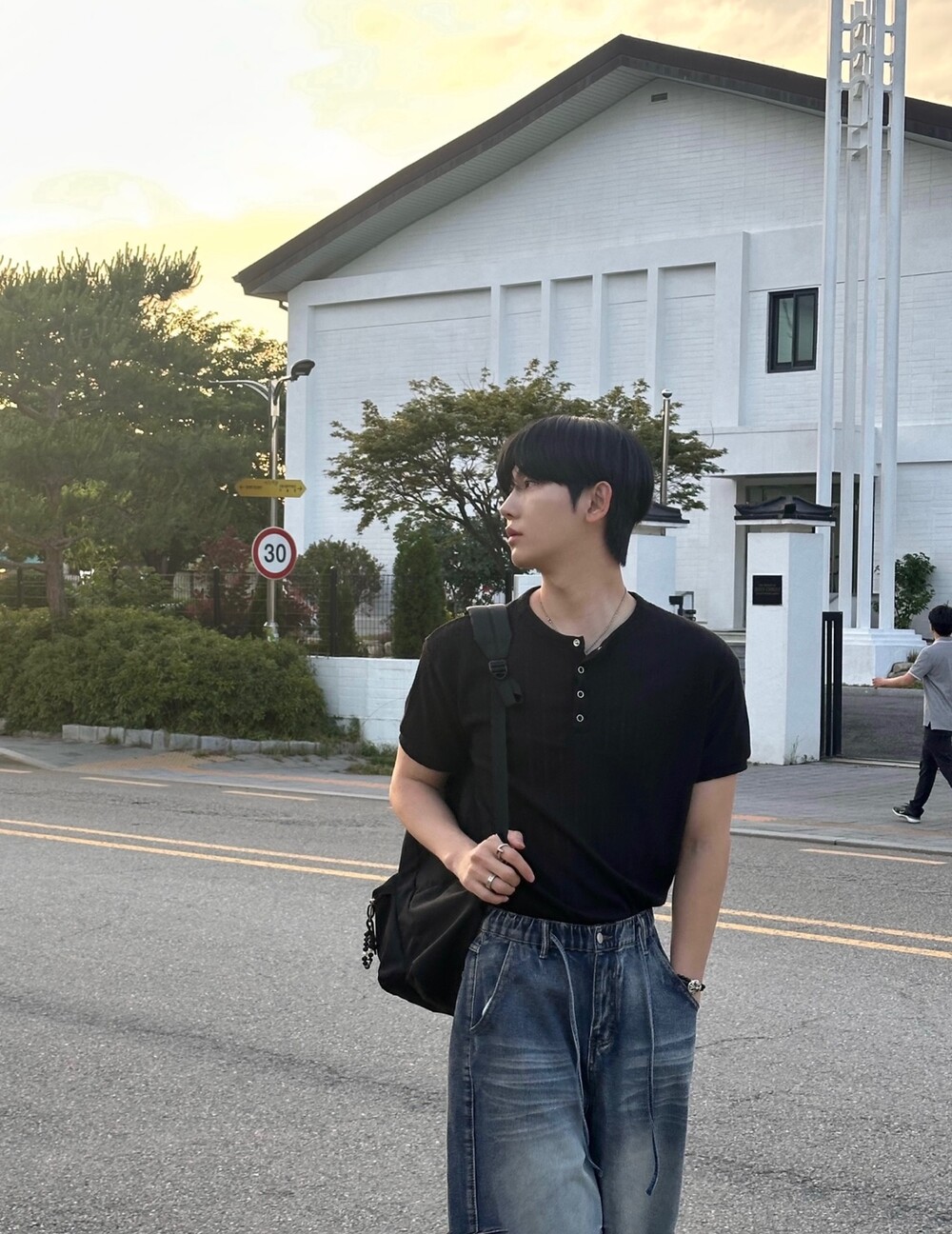4버튼 실버 헨리넥 디테일에 사이사이 스트라이프 디테일에 바람이 송송 통풍성 좋은 티셔츠입니다 :)
