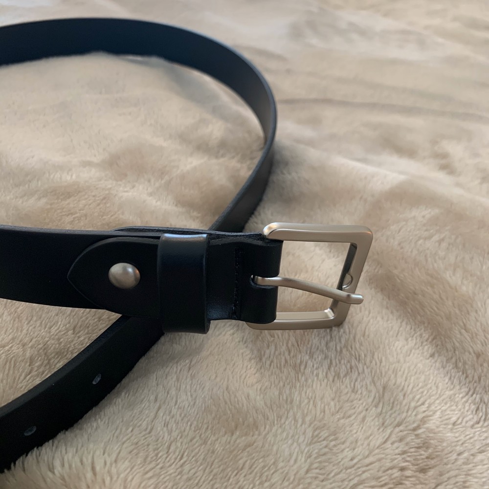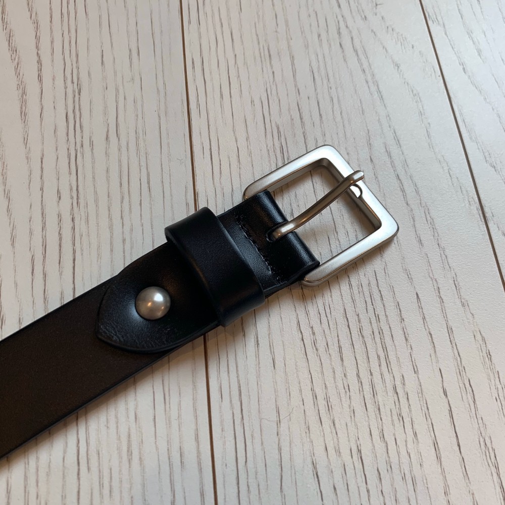 재질은 소가죽이며 저는 벨트가 길게나와 옆으로 튀어나오는 느낌을 좋아해서 끝처리를 빼서 착용했습니다