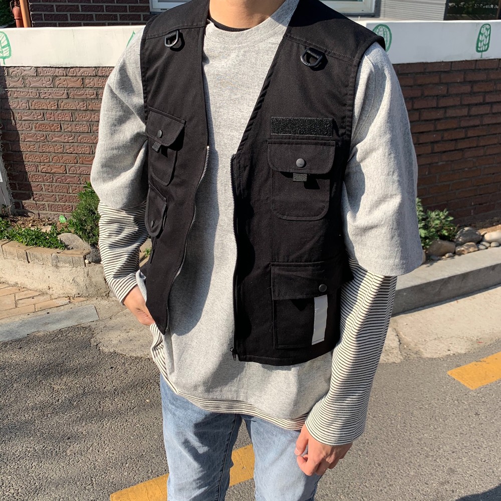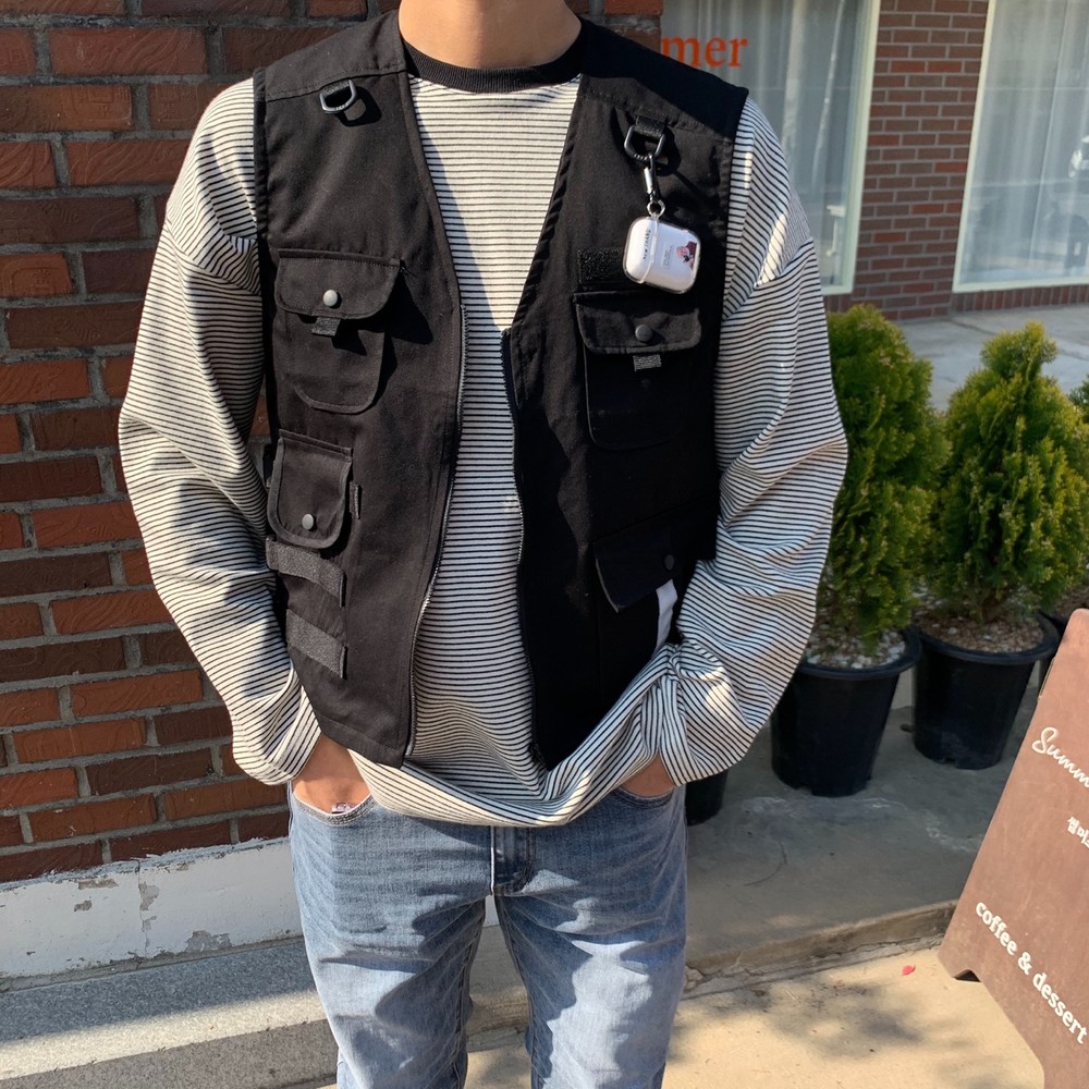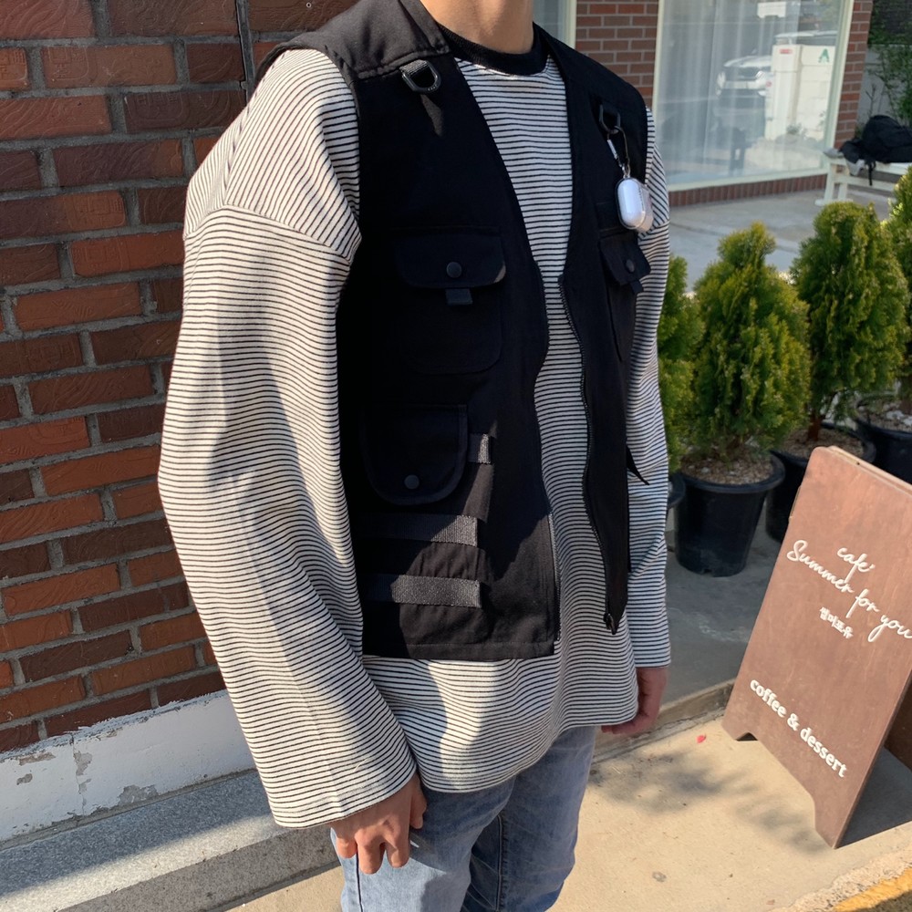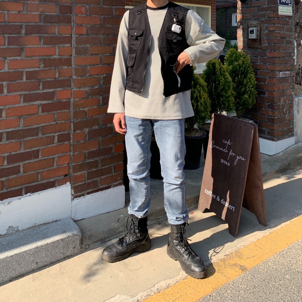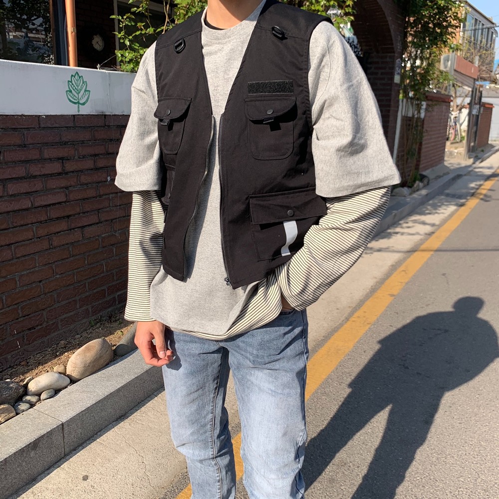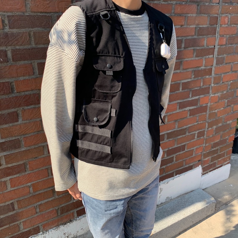 흔히 테크웨어식으로 많이 코디는 조끼자켓입니다