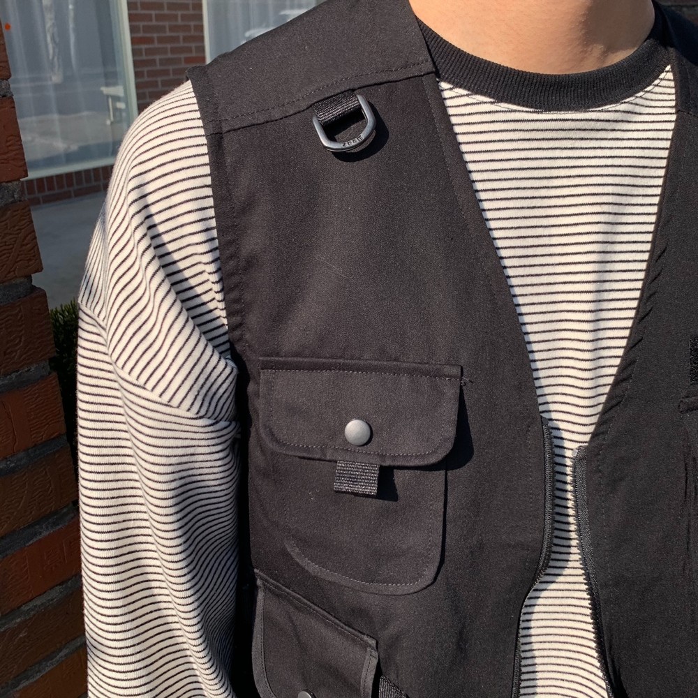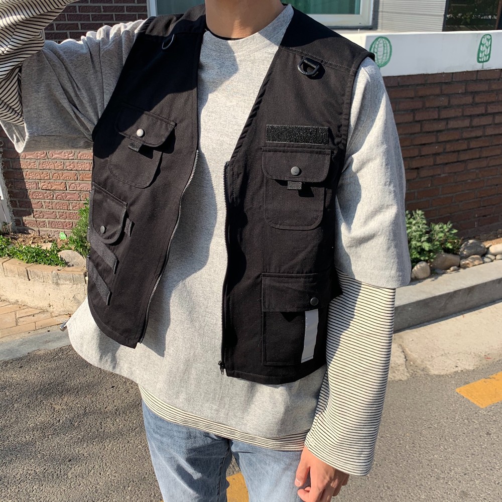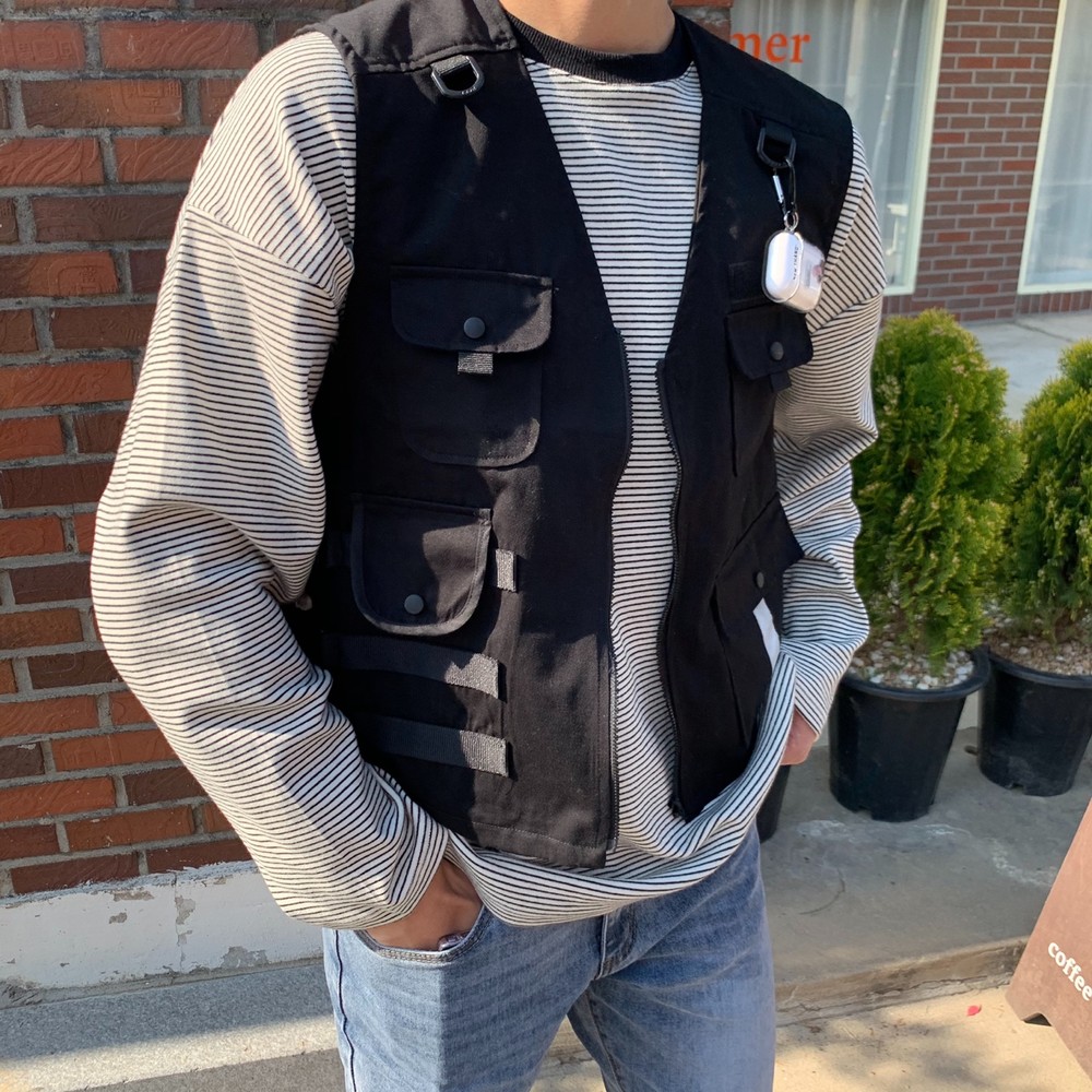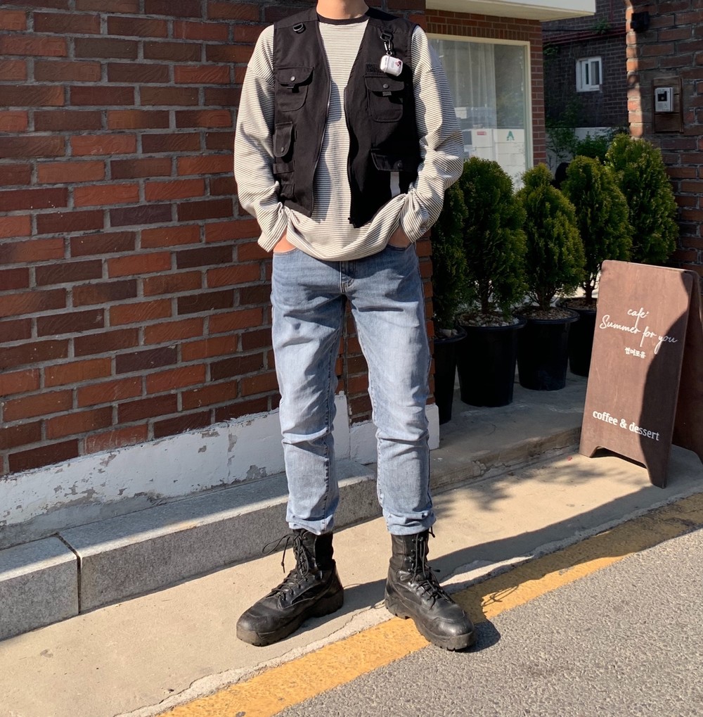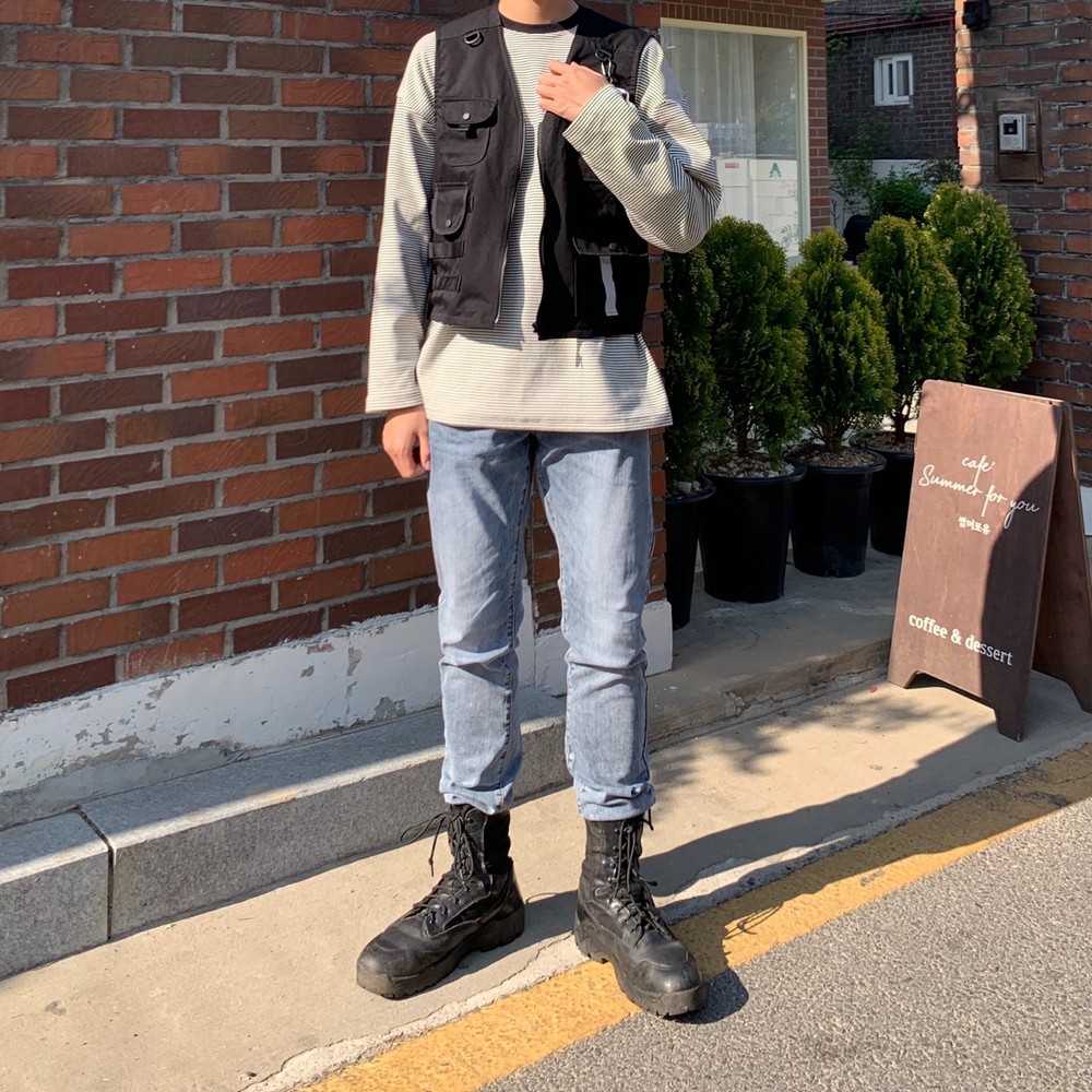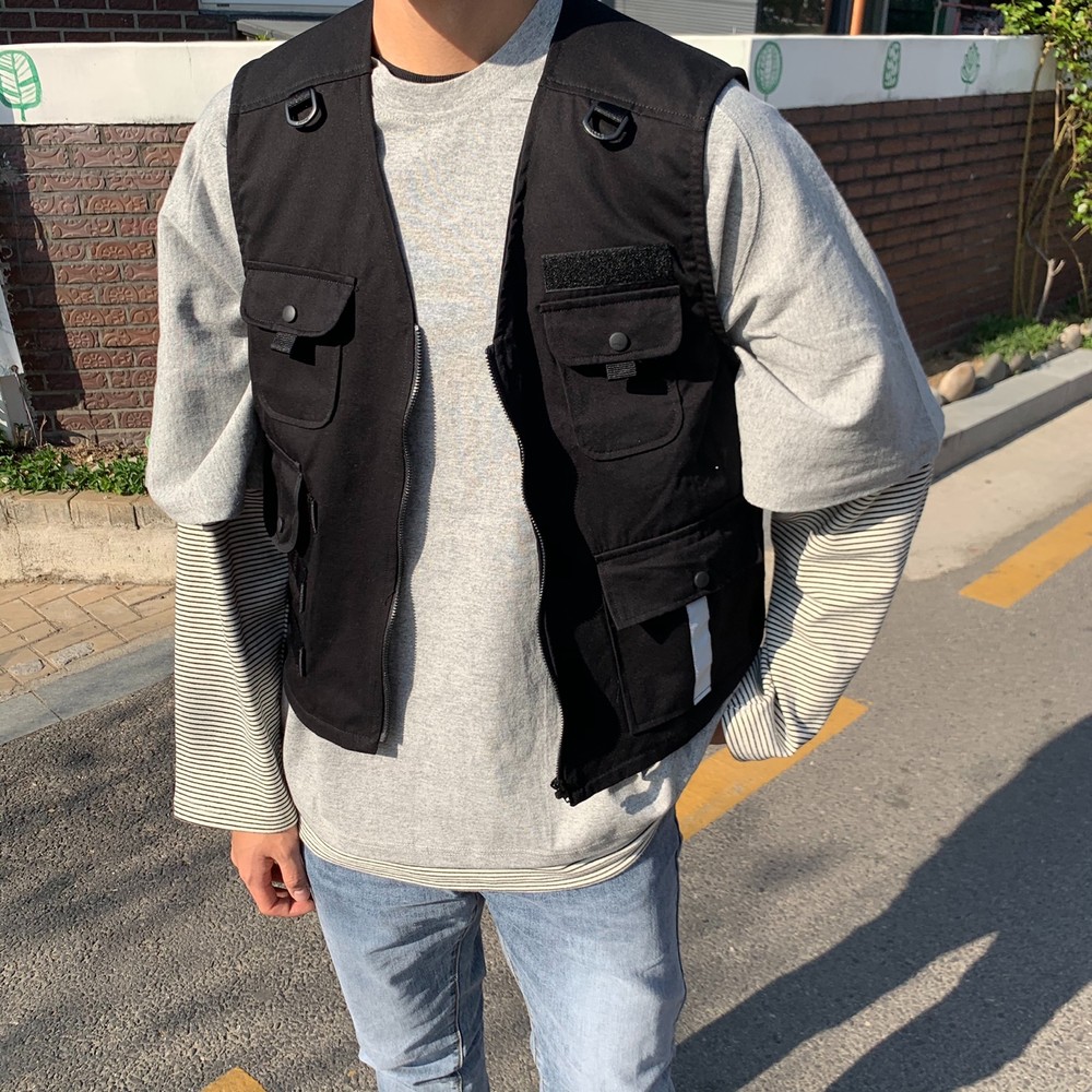흔히 테크웨어식으로 많이 코디는 조끼자켓입니다