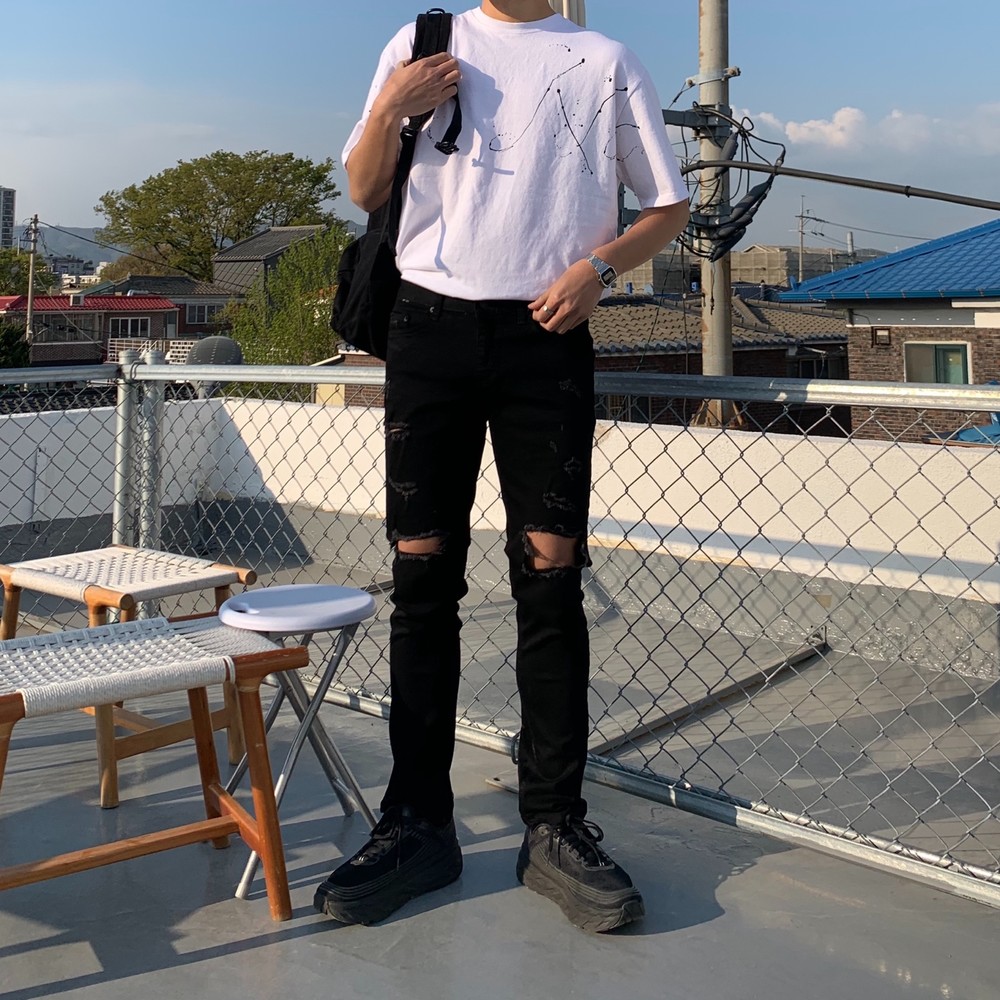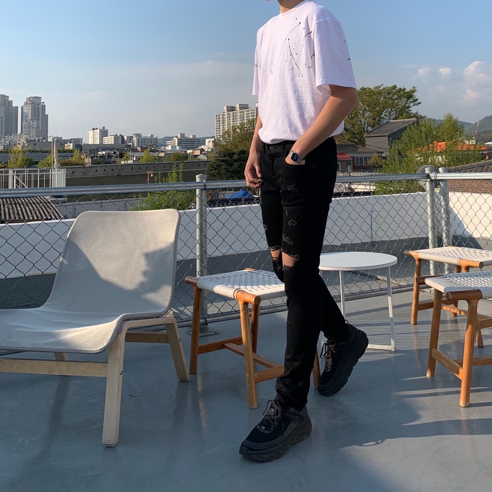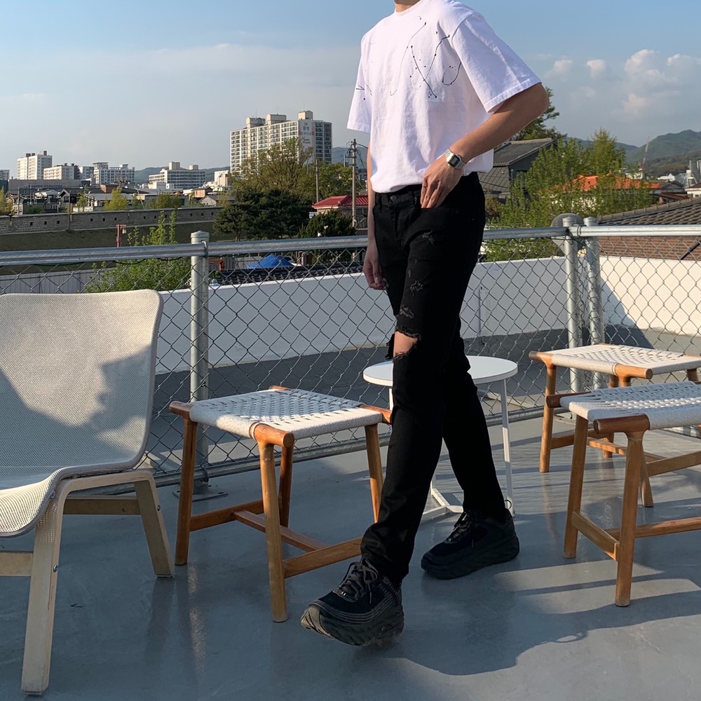 이번에 소개 해드릴 팬츠는 우제트에서 TOP5안에 드는 +2CM블랙진의 데미지 버전입니다 !