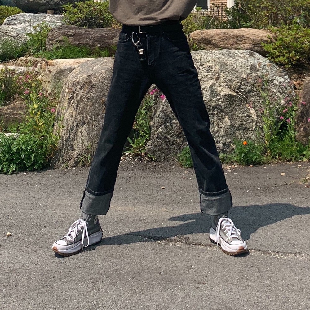 핏감이 정말 좋고 속과 면 색이 달라 롤업 했을때도 이뻐서 신발 쪽을 보게 되는 바지에요 !