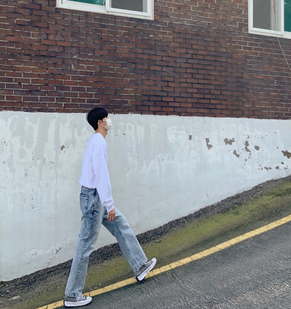 워싱이 정말 이쁘게 들어간 와이드한 팬츠입니다 입고 촬영하는 내내 너무 편했네요 ㅠㅠ