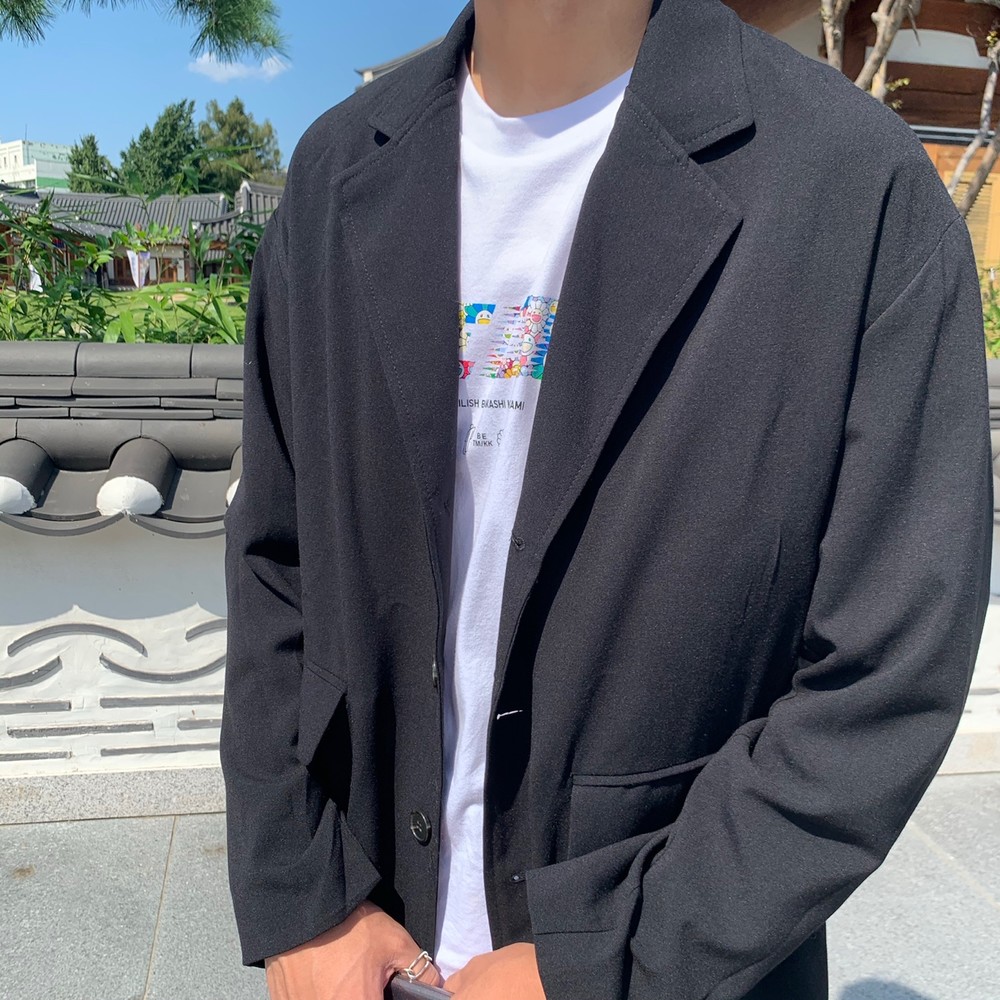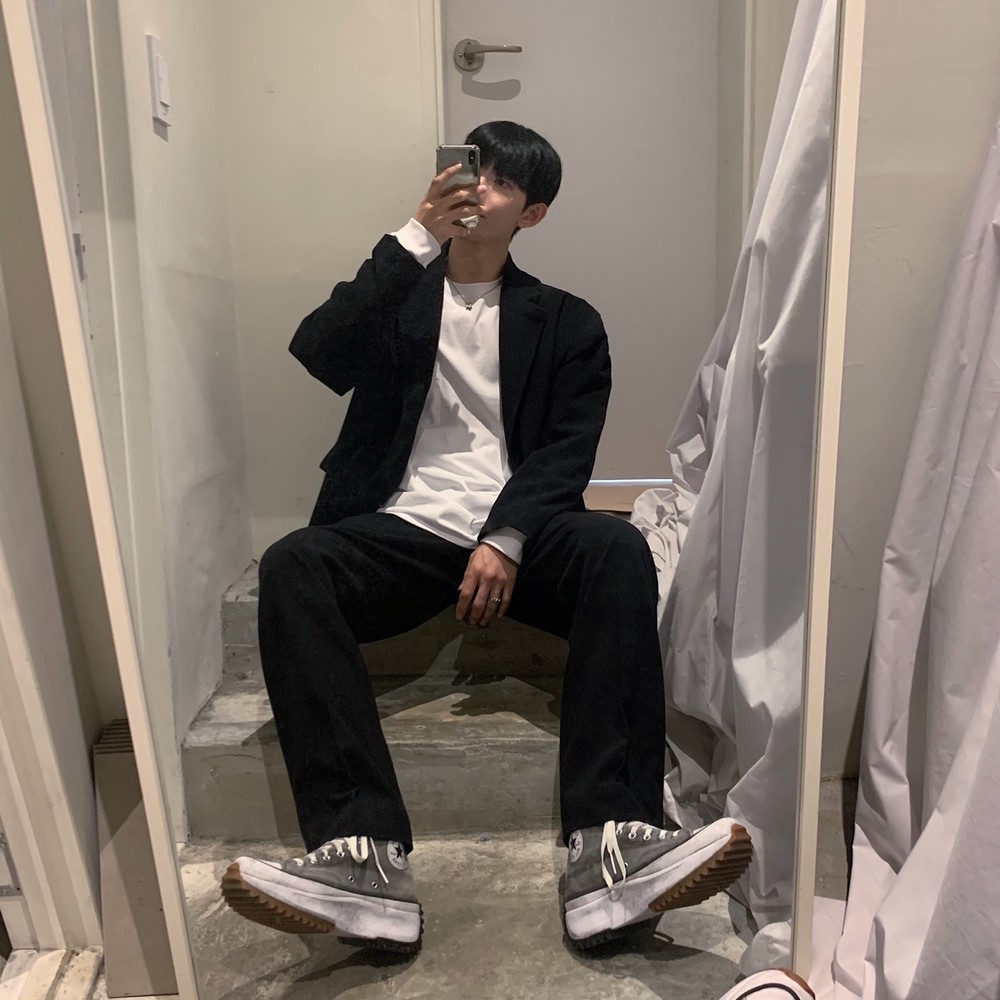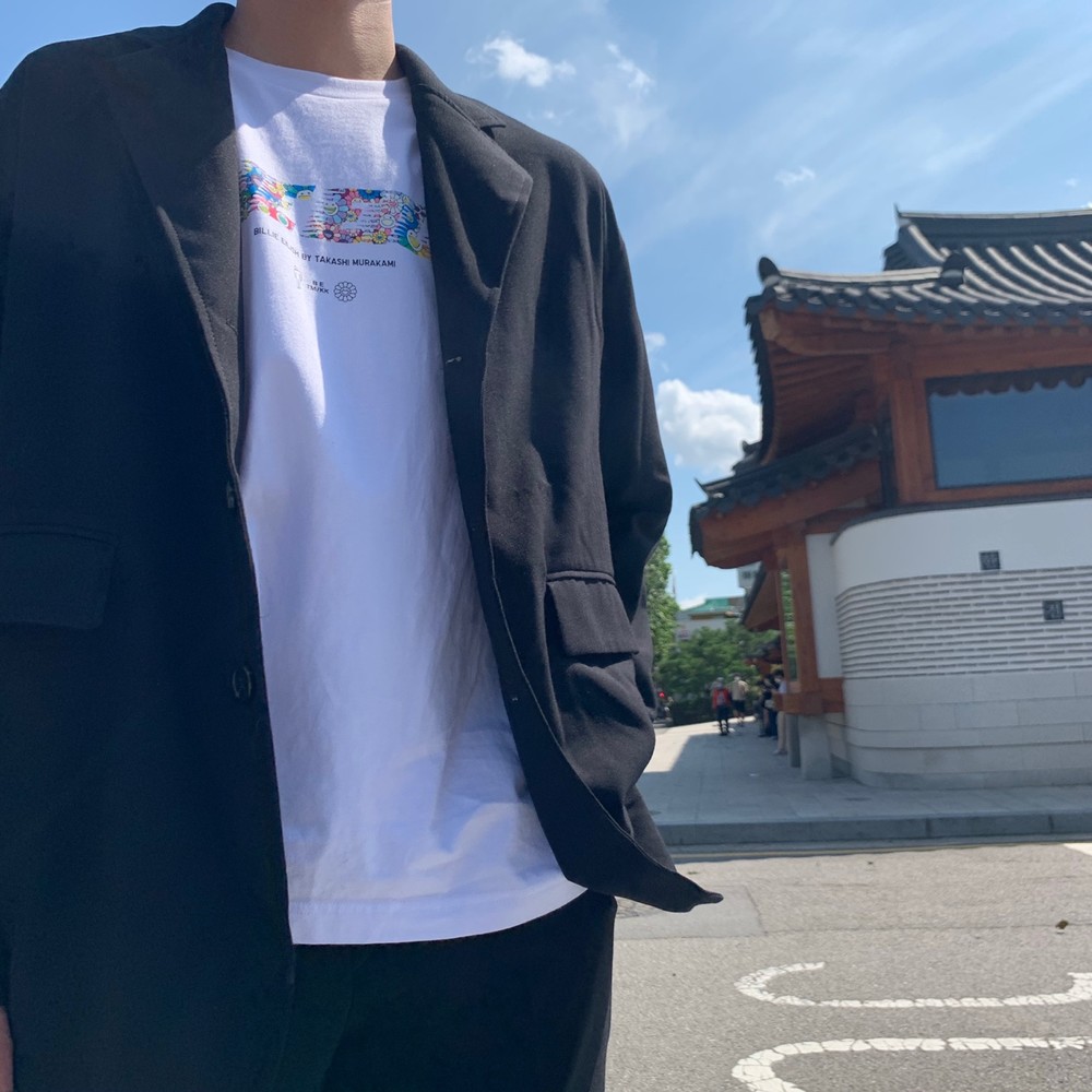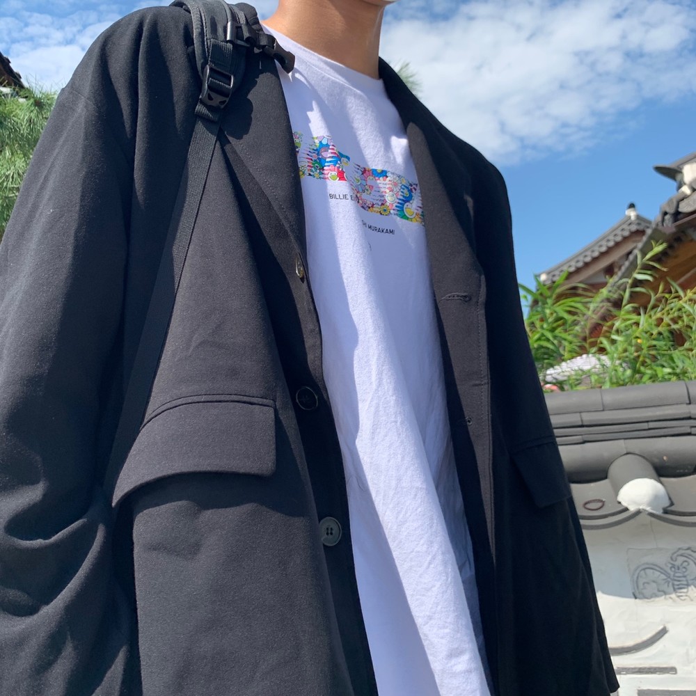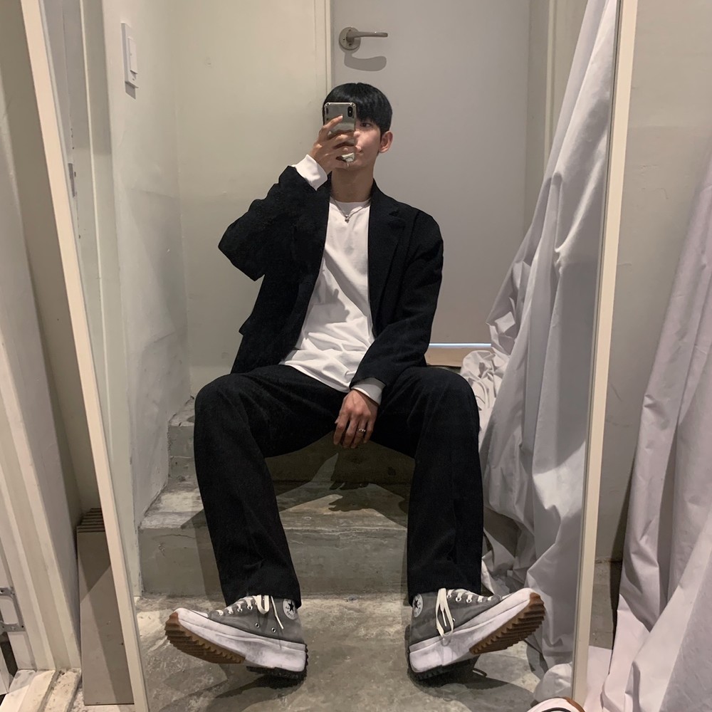 검정색상의 루즈한 대디핏 느낌이라 누구나 소화하기 쉬운 셋업이고 자켓이나 팬츠 따로 다른 아이템과 매치해도
